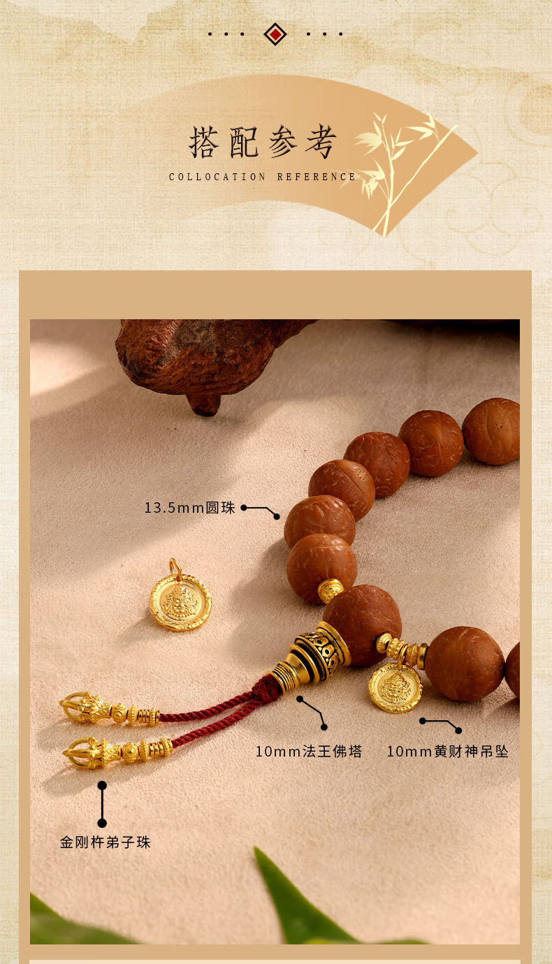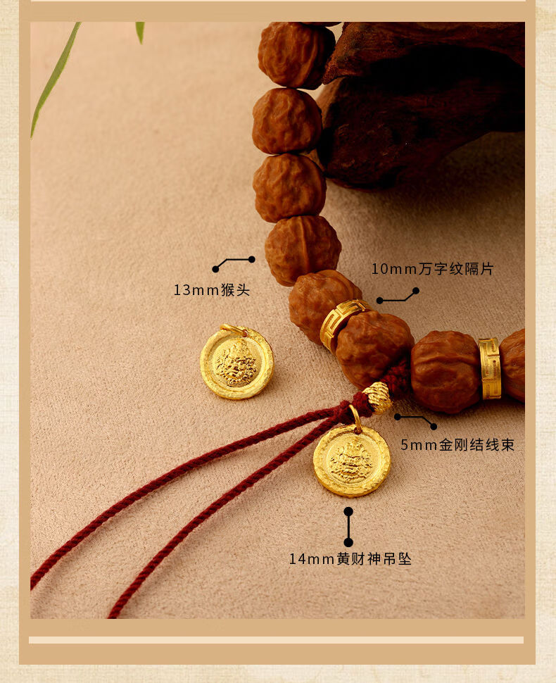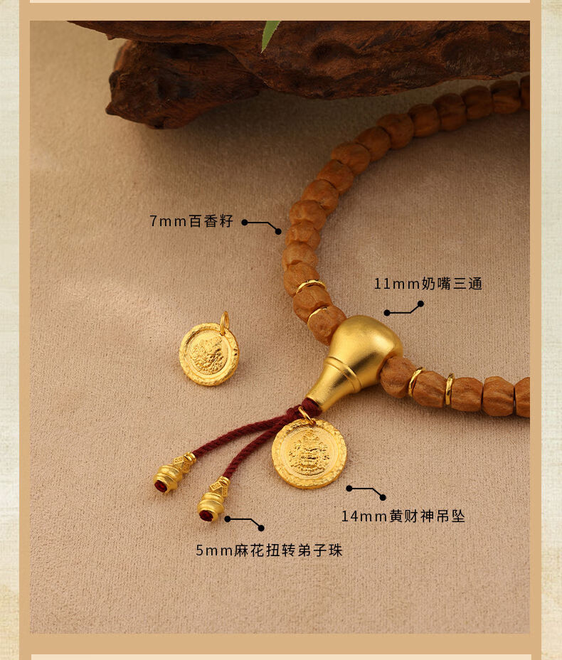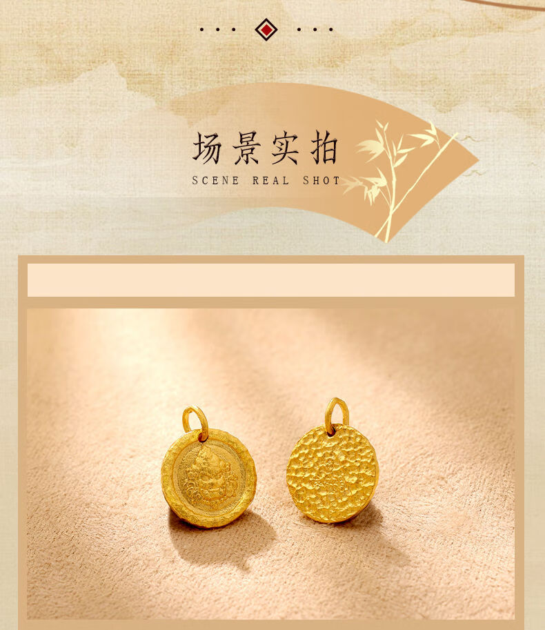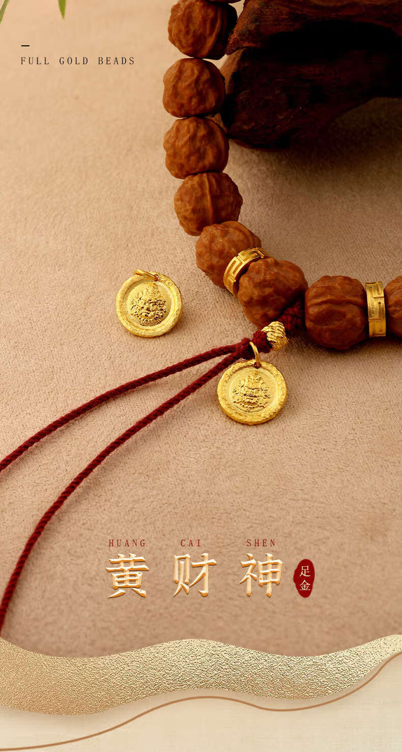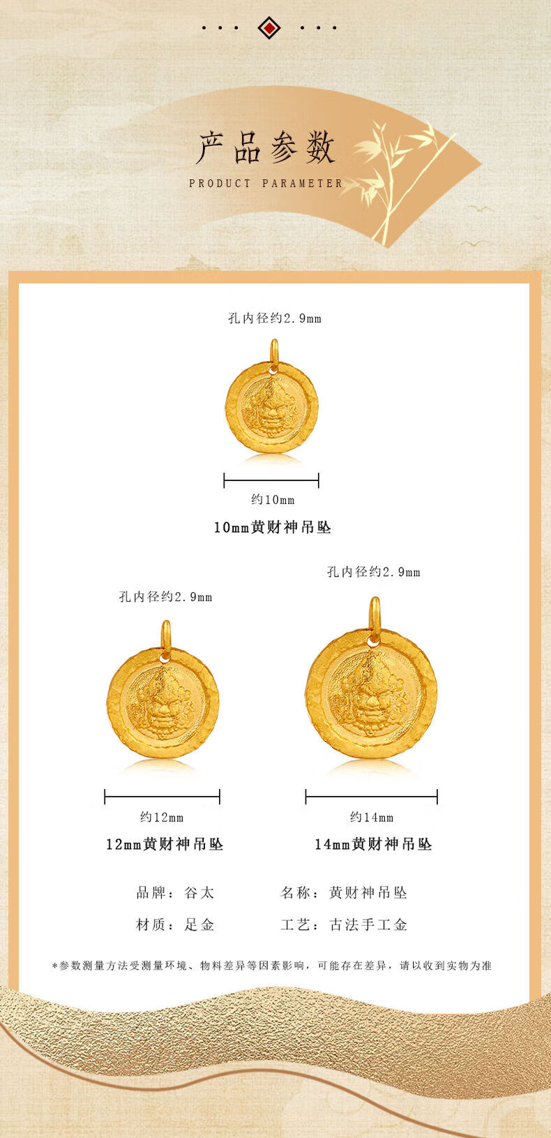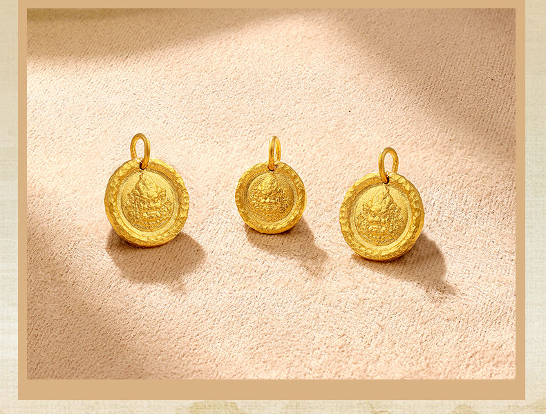 Shien Gu Tai Pure Gold 999 Yellow God of Wealth Pendant Gold Necklace Women's New Pure Gold Pendant Necklace Solid Round Gift 10mm Pure Gold Yellow God of Wealth Pendant About 1.42g