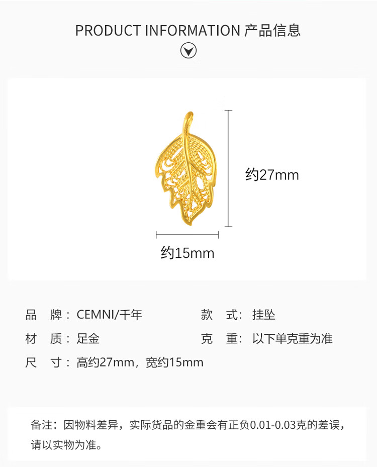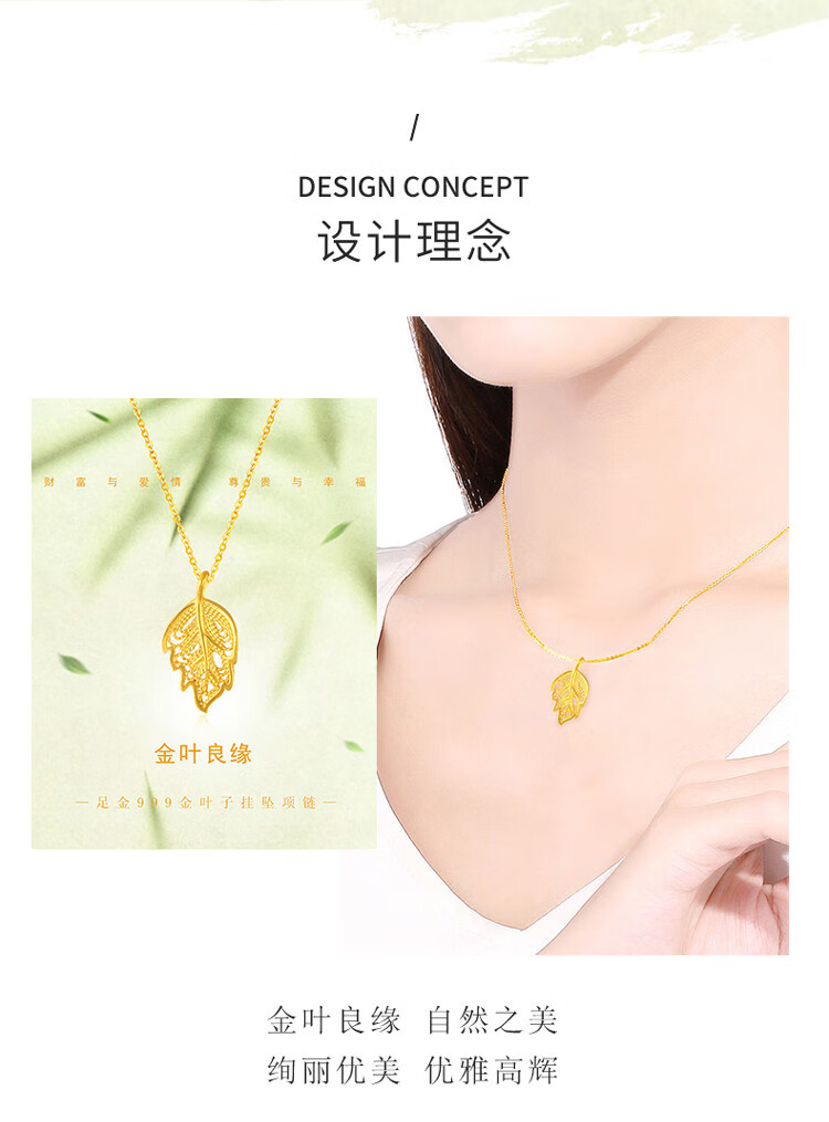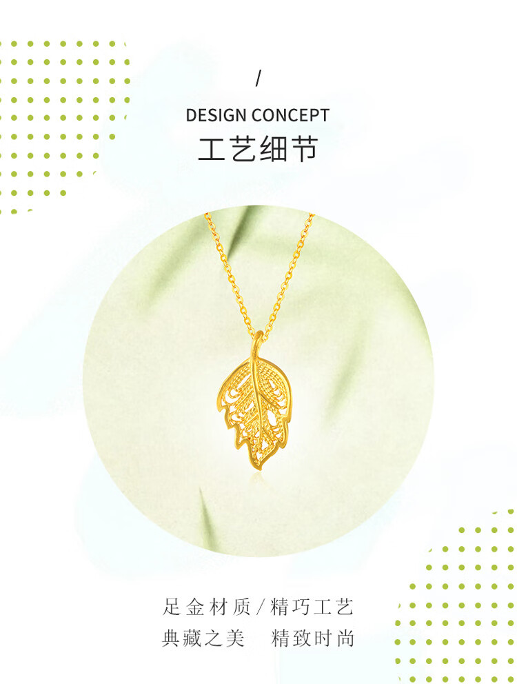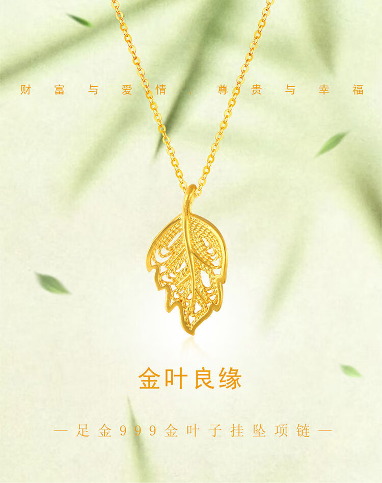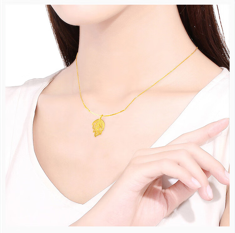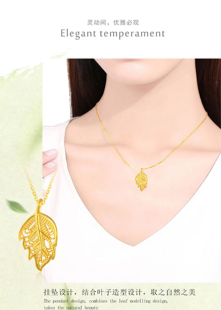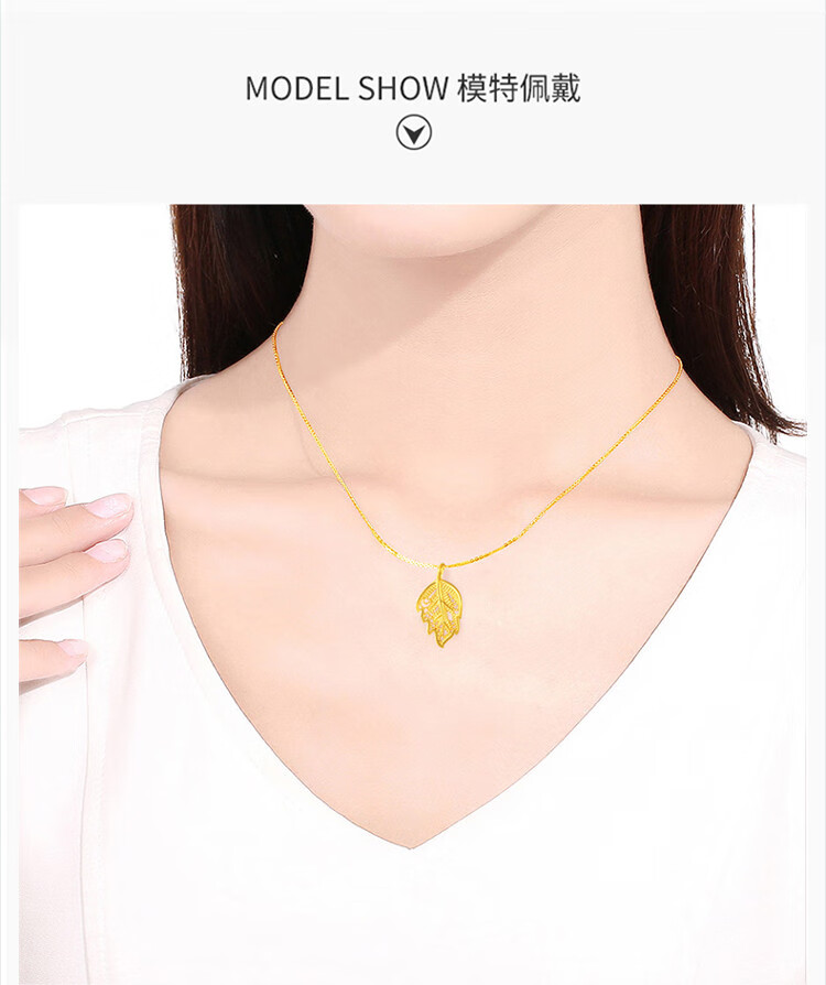 Shi En/Jewelry Gold Pendant Women's Pure Gold 999 Gold Leaf Necklace Gold Branches and Jade Leaves 2025 New Style Free Silver Chain Pure Gold 999 Gold Leaf Gold