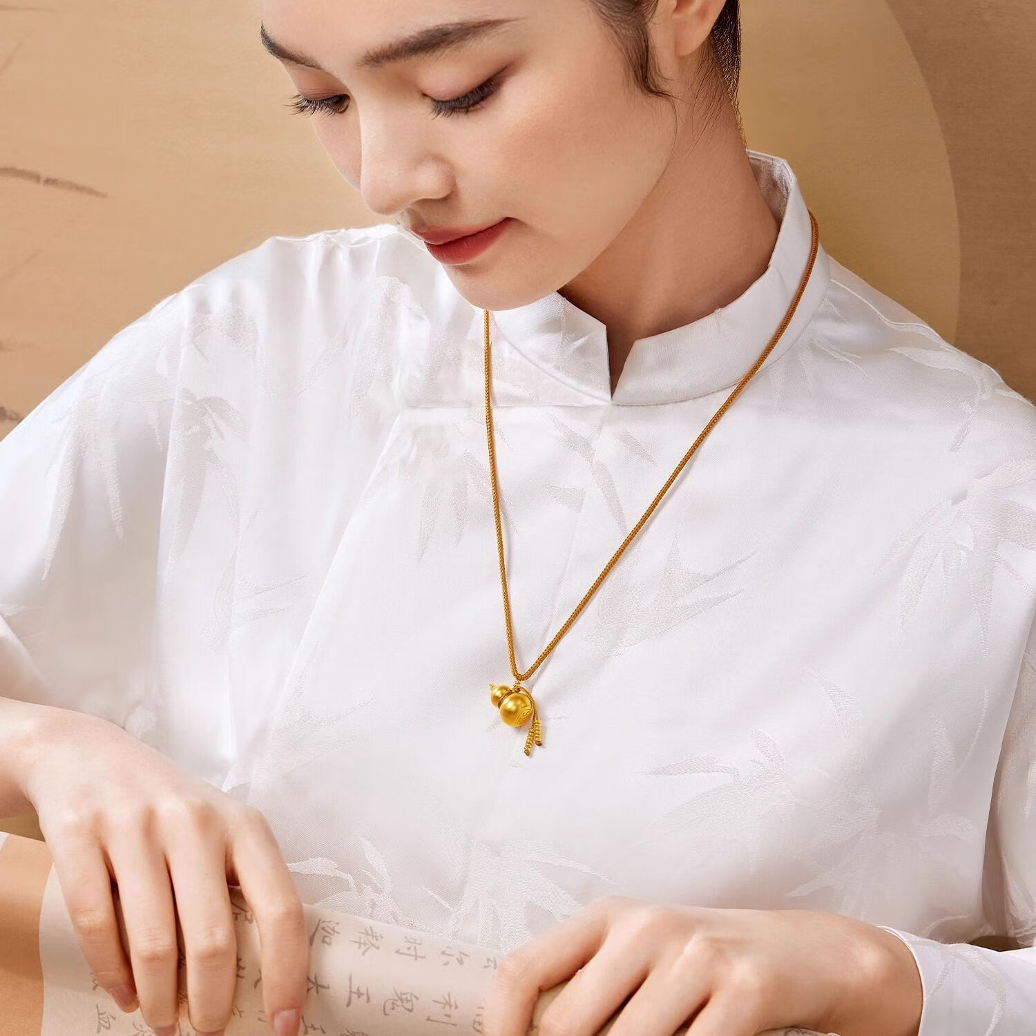 The ancient method of knowing kindness, blessing, family fortune, prosperity, wealth and fortune, gold pendant for women, gold braided rope gourd, national trend, oriental style, braided rope with beads (more grams, less tonic) 6.59g