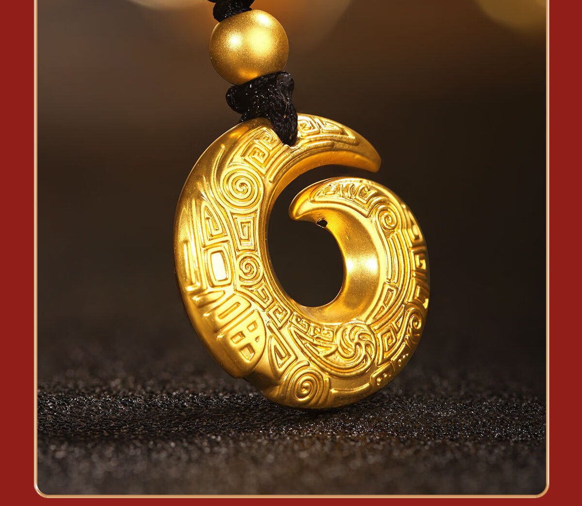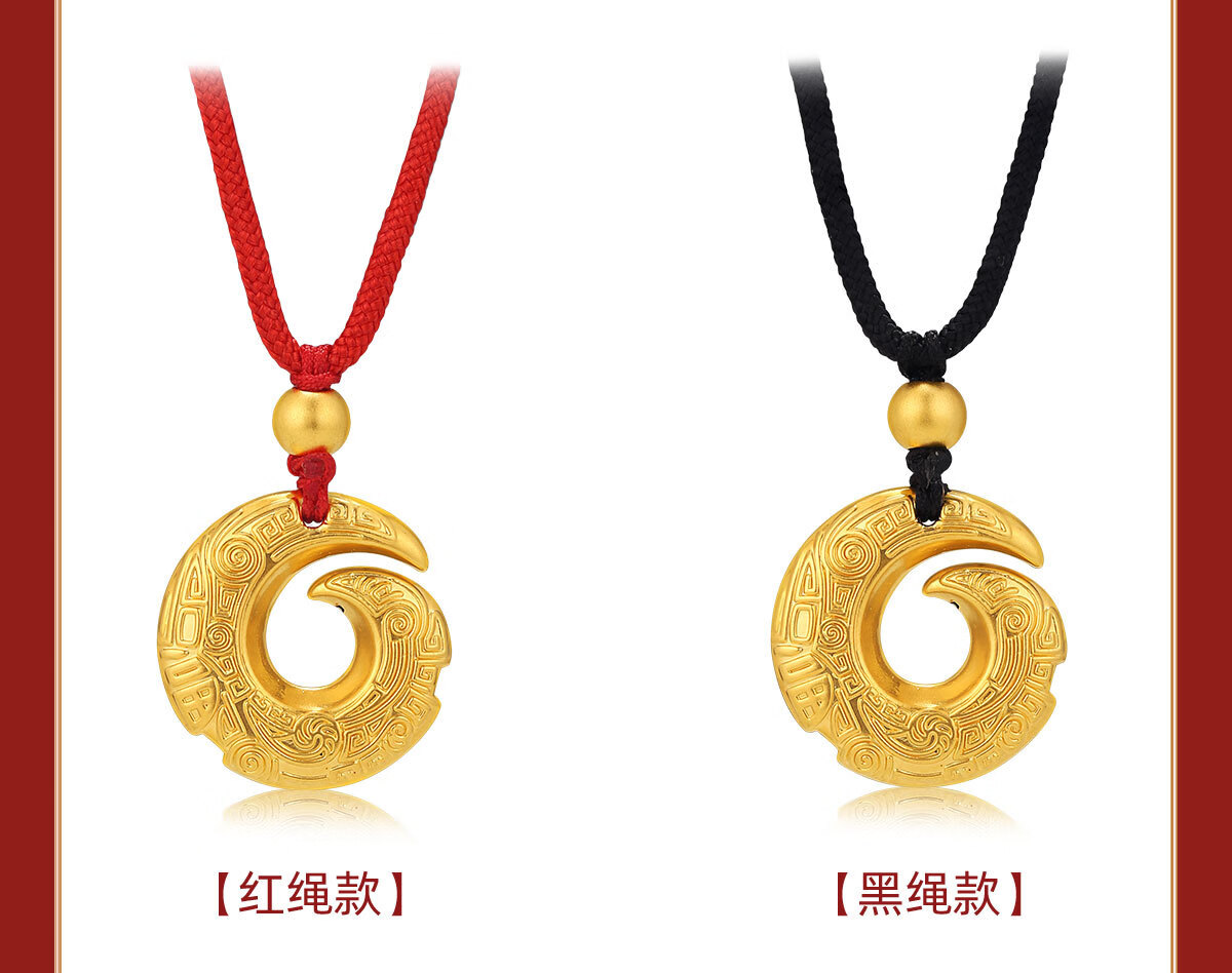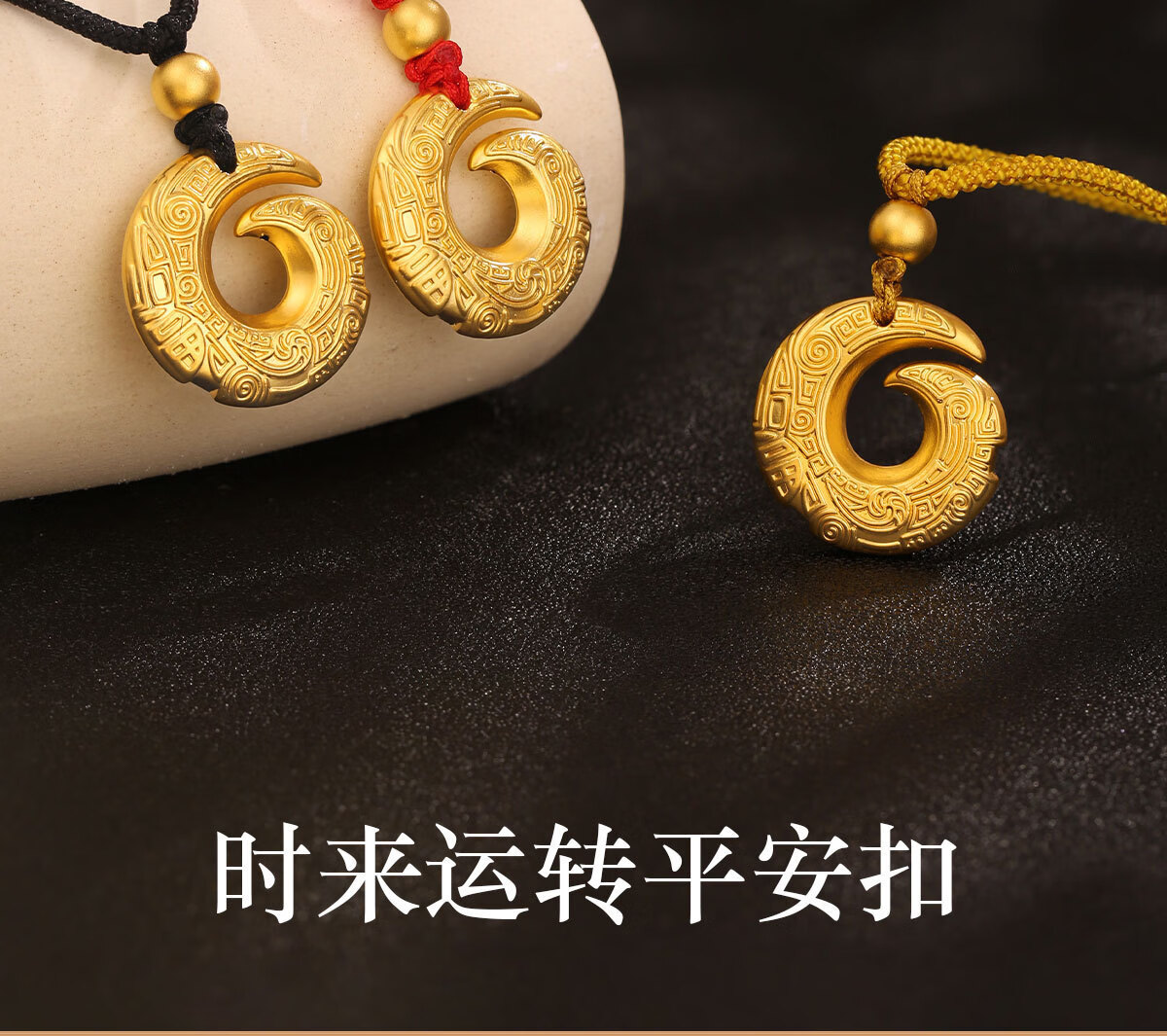 Shien's golden fortune-turning safety buckle pendant for men and women pure gold transfer beads pure gold pendant couple necklace birthday gift black rope fortune-turning safety buckle about 1.2-1.
