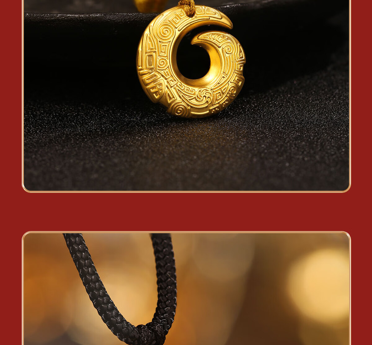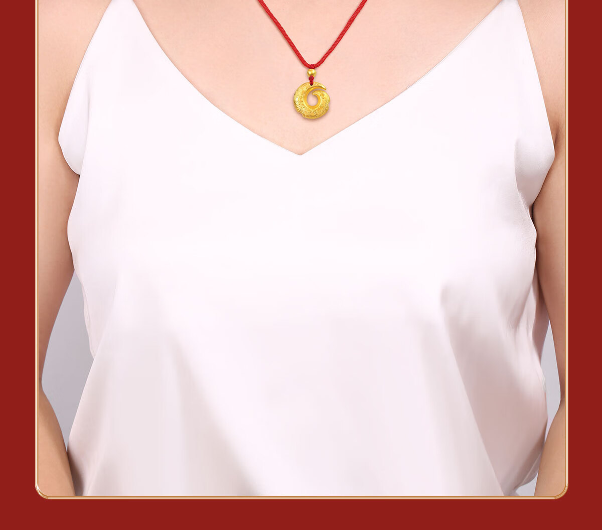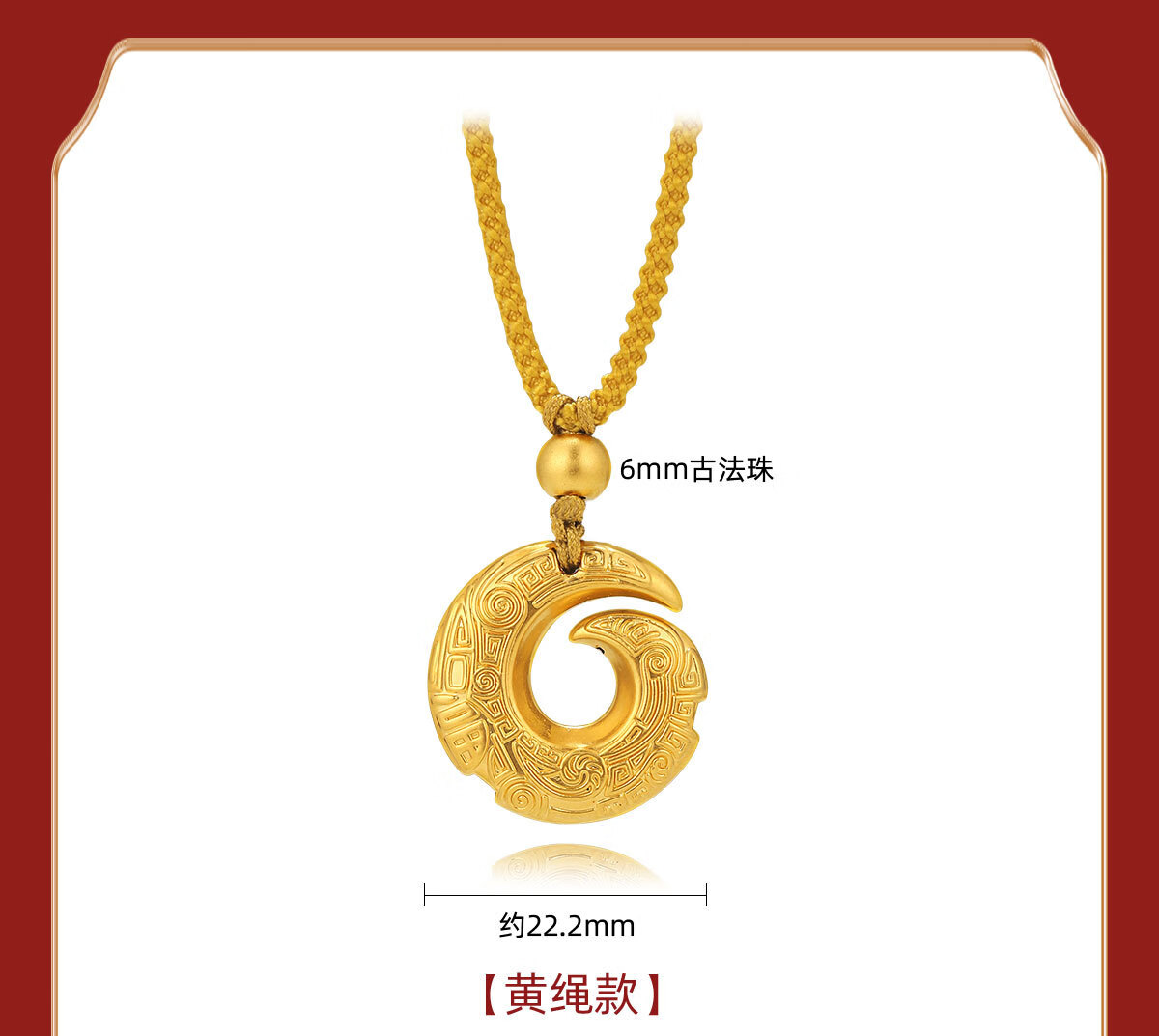Shien's golden fortune-turning safety buckle pendant for men and women pure gold transfer beads pure gold pendant couple necklace birthday gift black rope fortune-turning safety buckle about 1.2-1.