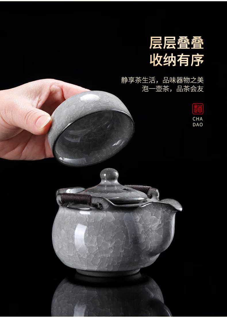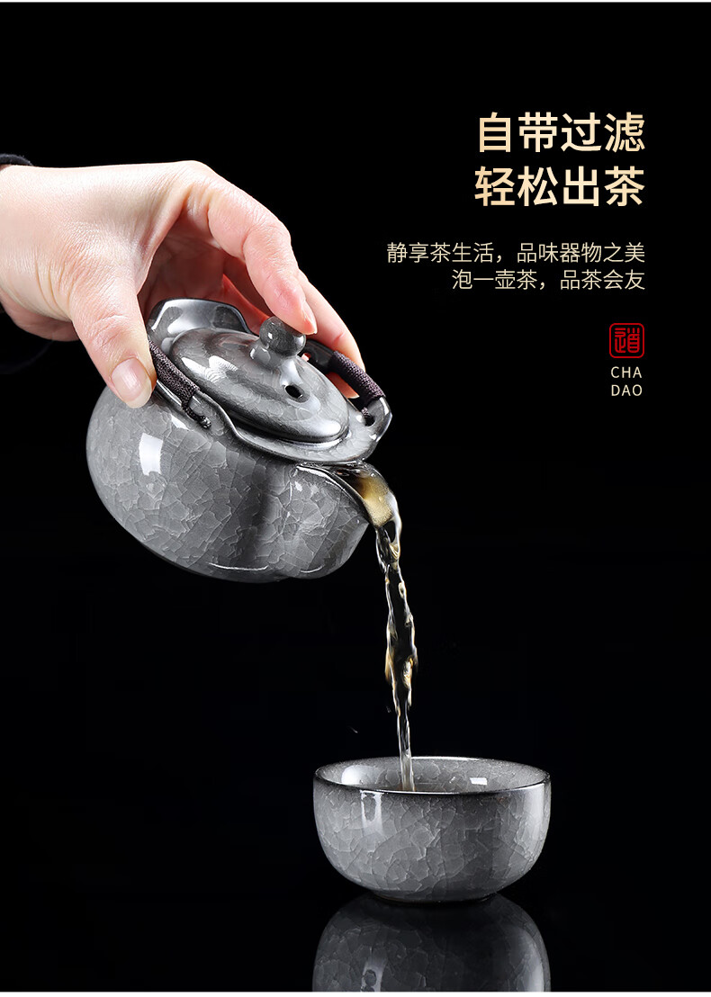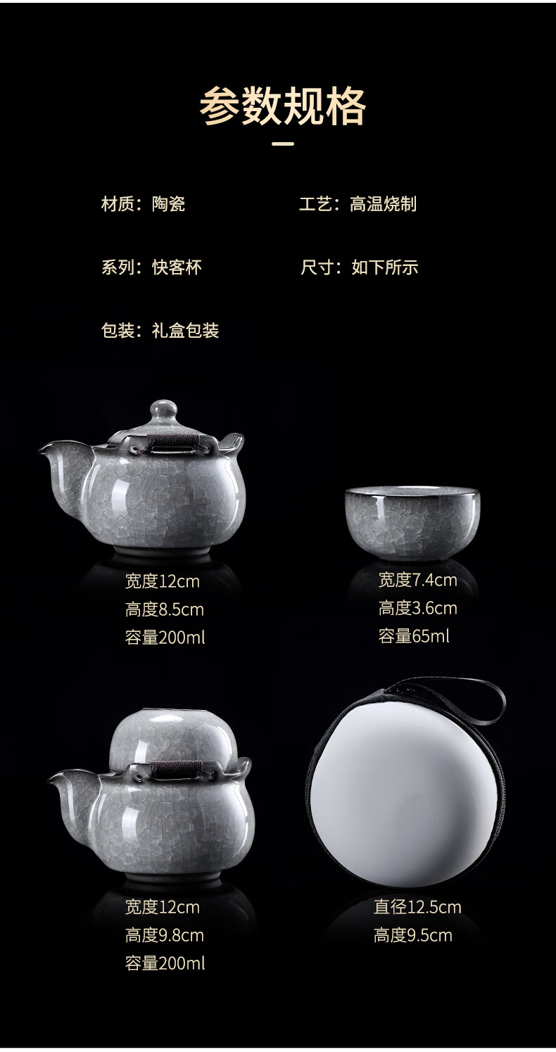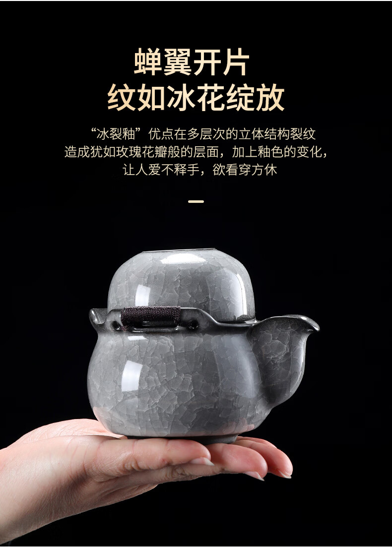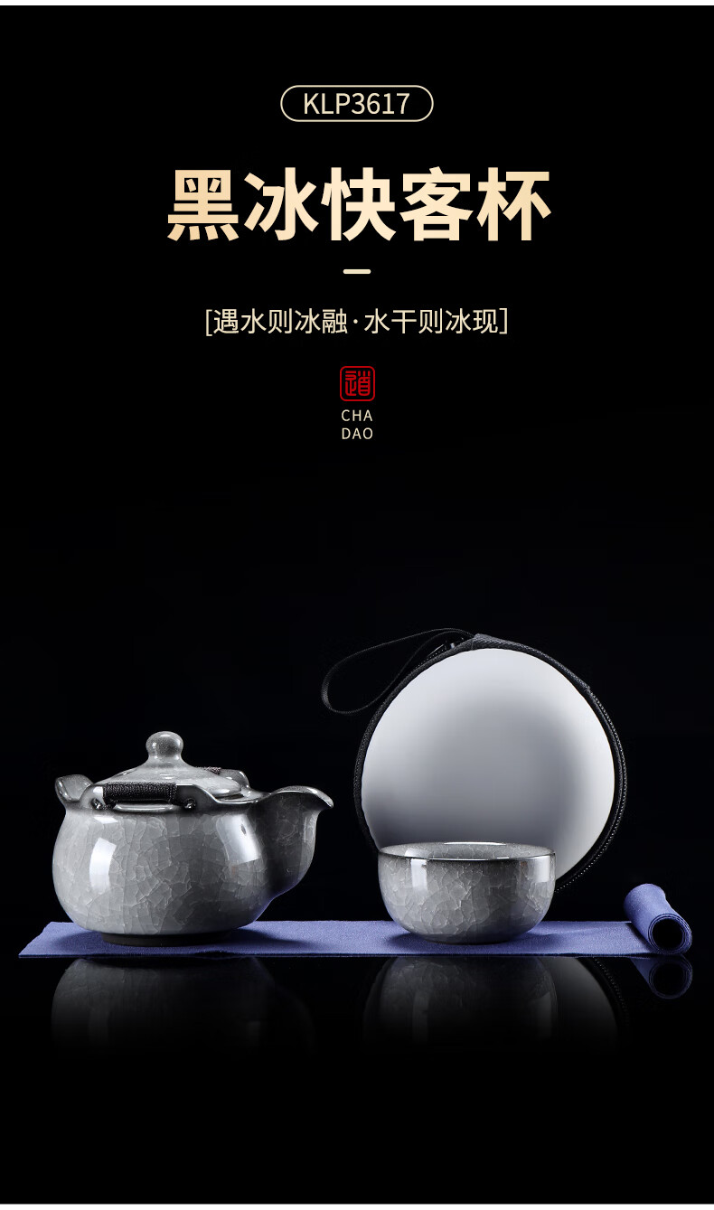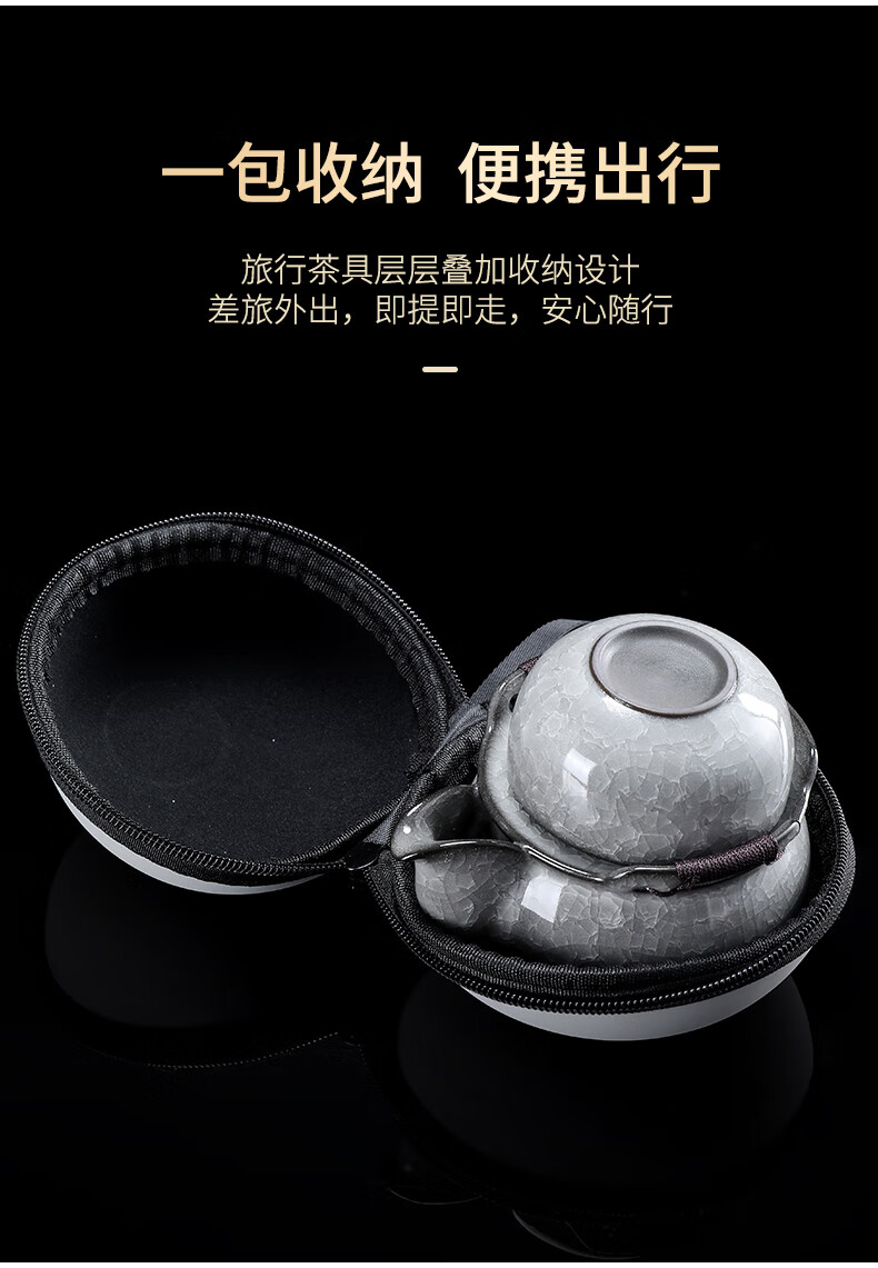 Leipin Black Ice Glaze Travel Tea Set Outdoor Portable Ceramic Quick Cup Ice Crack Glaze One Pot Two Cups Kung Fu Tea Set Ice Crack Glaze Quick Cup One Pot One Cup
