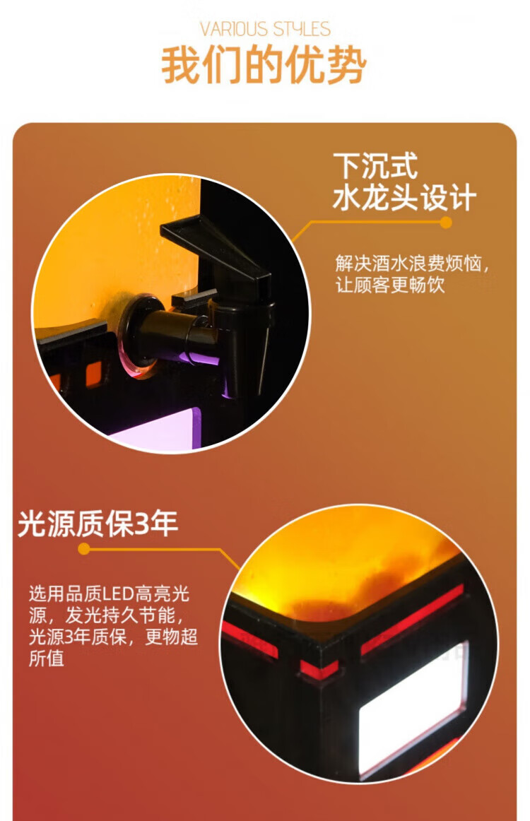 Shijin German quality beer barrel wine bar magician wine barrel beer barrel with tap barrel buffet Internet celebrity beer barrel 2L square wine white light