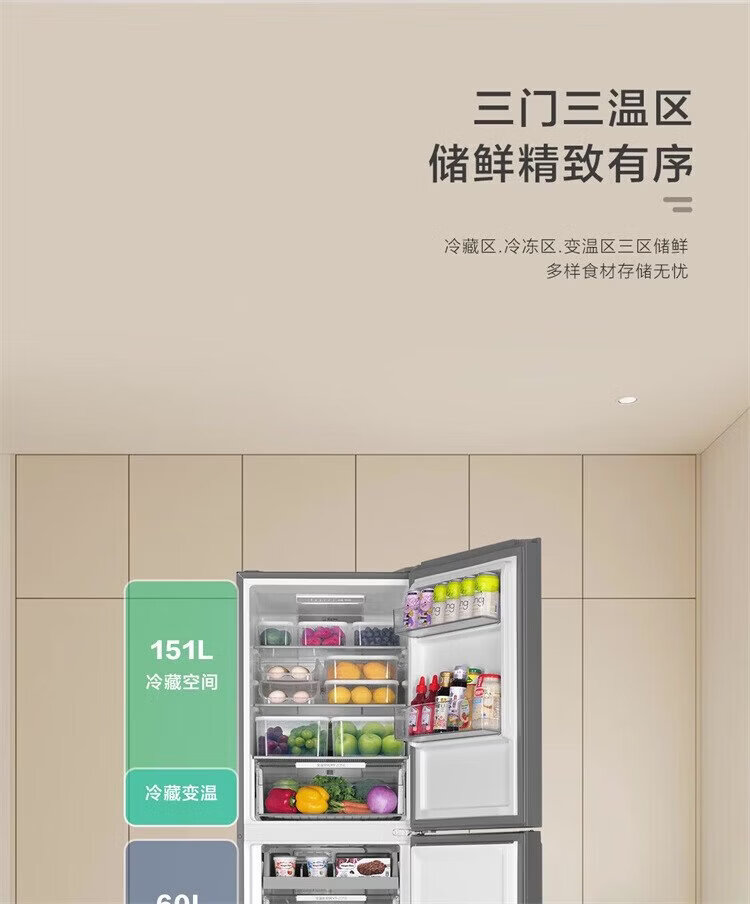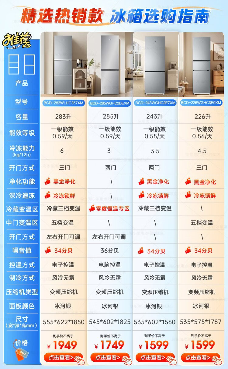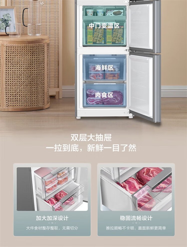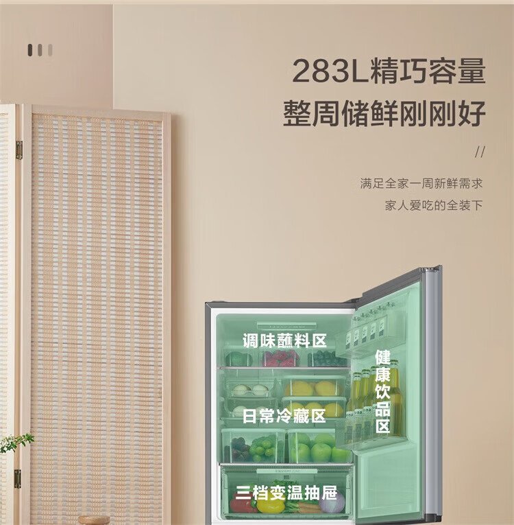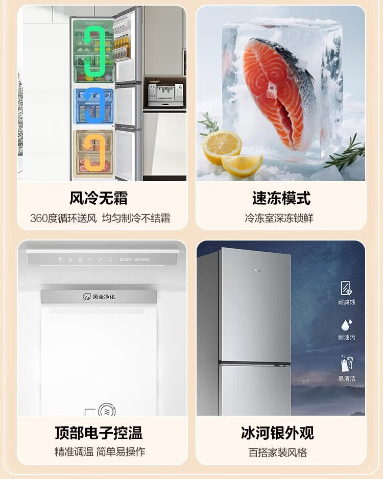 Haier's flagship hot-selling refrigerator 283 liters three-door air-cooled frost-free first-class energy efficiency double frequency conversion small household dormitory rental energy-saving small refrigerator 283 liters three-door three-temperature + dual frequency conversion first-class + black gold purification and antibacterial