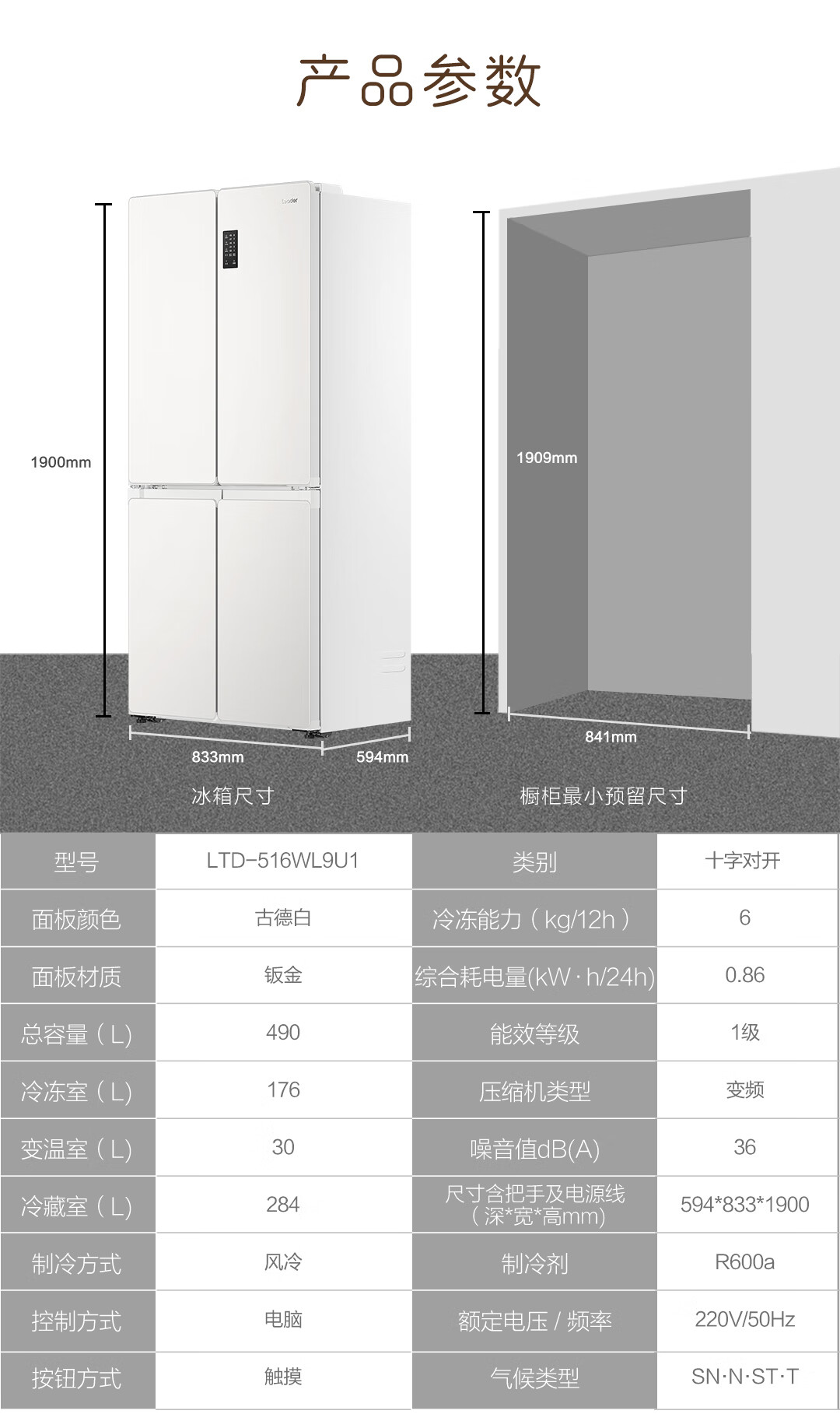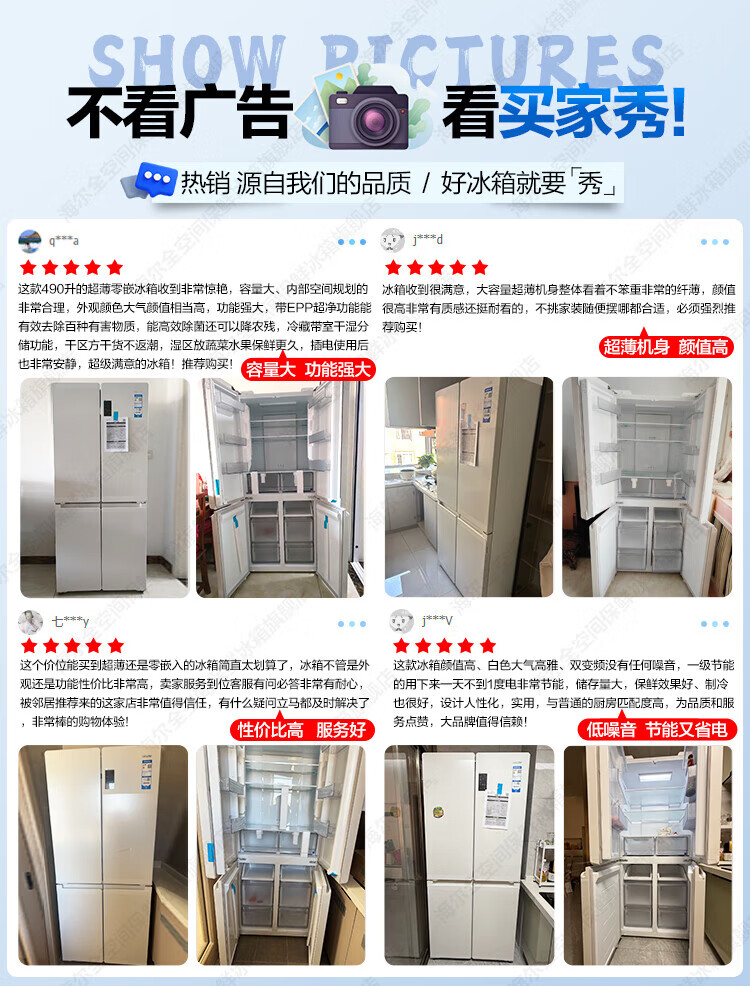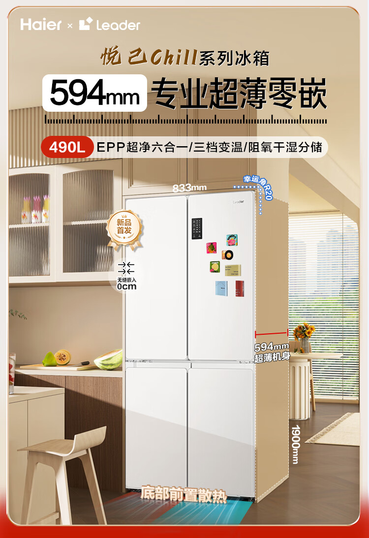 Haier Refrigerator produces Tongshuai 516 ultra-thin zero-embedded refrigerator 490 liters four-door double-door cross-door first-class energy-efficiency dual-frequency leader refrigerator trade-in 594mm ultra-thin zero-embedded + EPP ultra-clean system + oxygen-blocking dry and wet storage