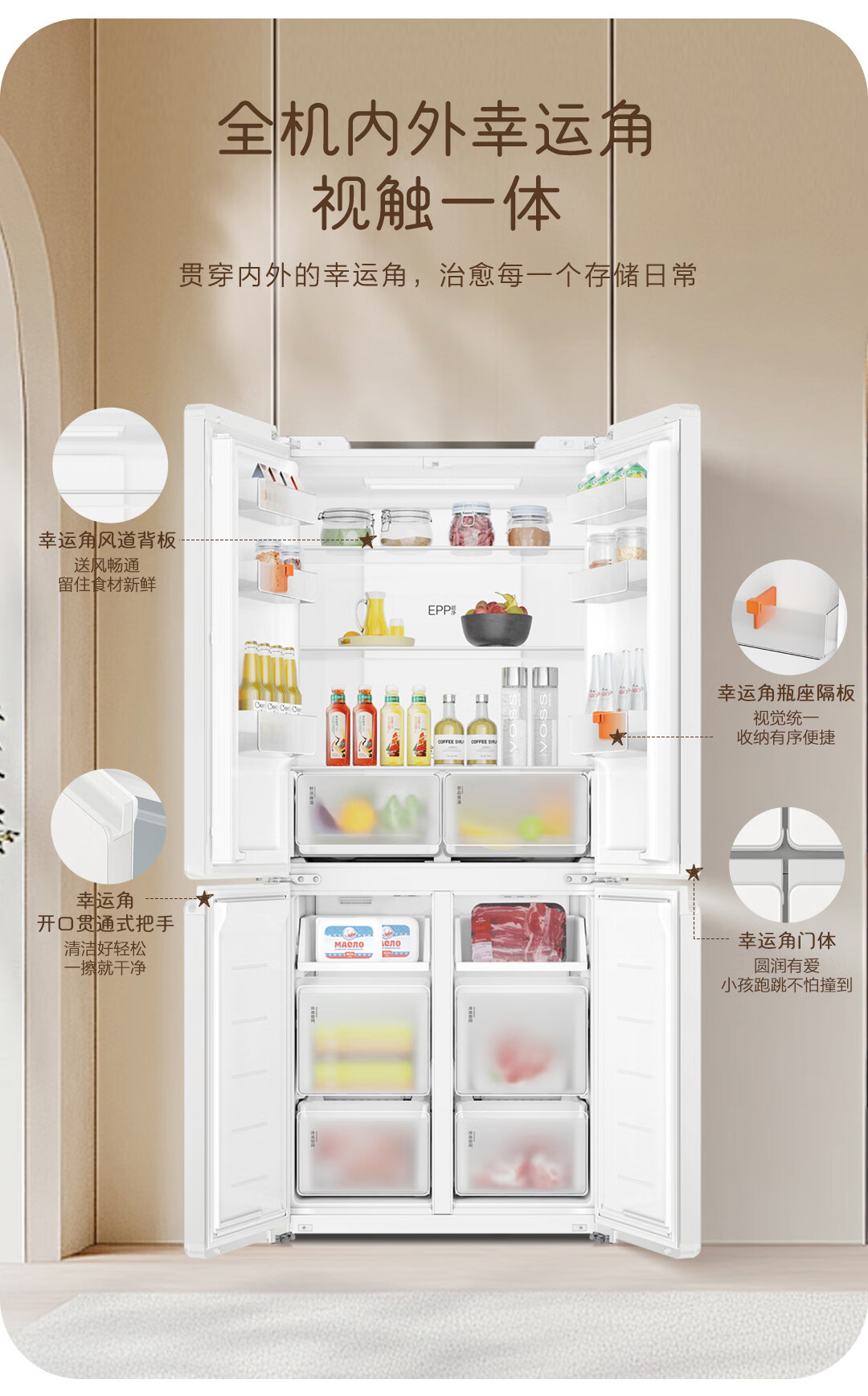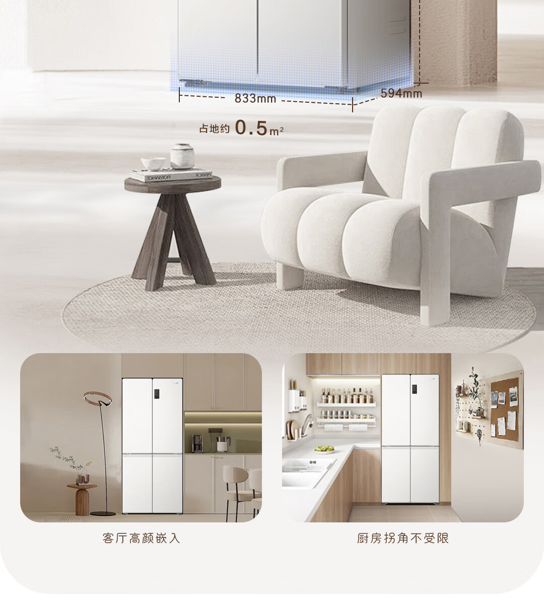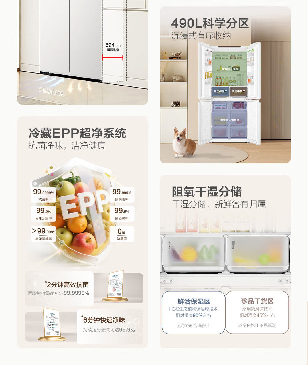 Haier Refrigerator produces Tongshuai 516 ultra-thin zero-embedded refrigerator 490 liters four-door double-door cross-door first-class energy-efficiency dual-frequency leader refrigerator trade-in 594mm ultra-thin zero-embedded + EPP ultra-clean system + oxygen-blocking dry and wet storage