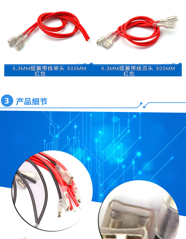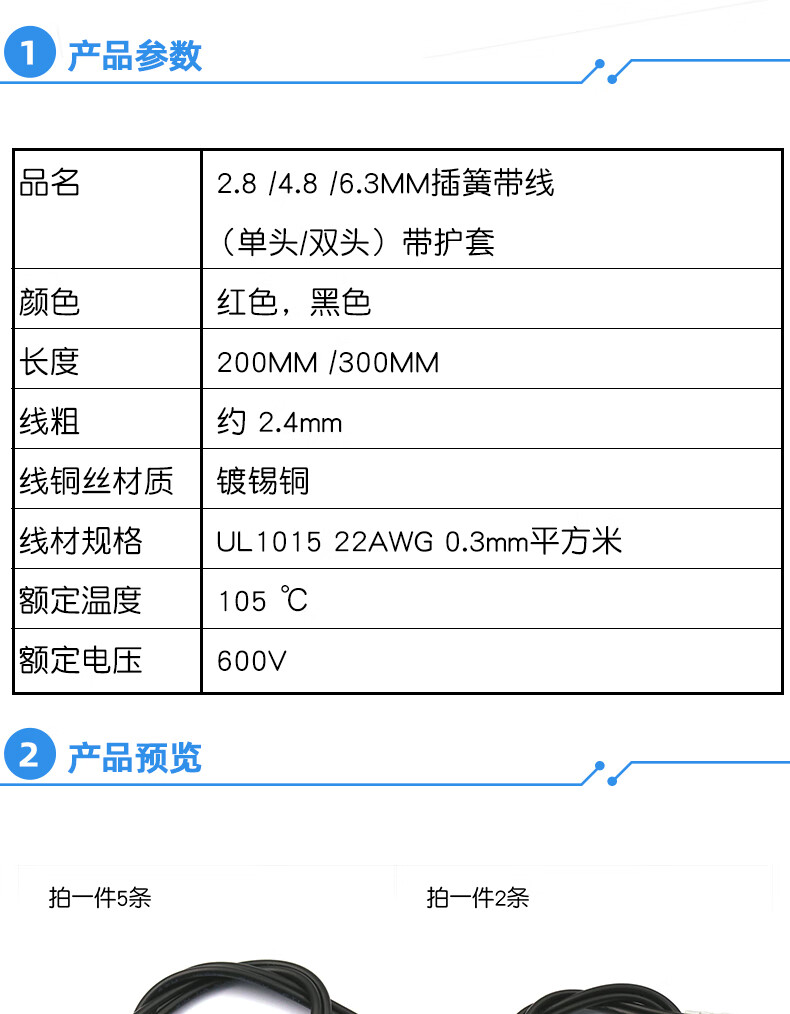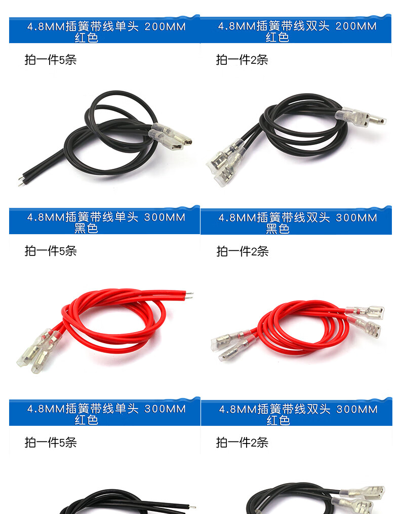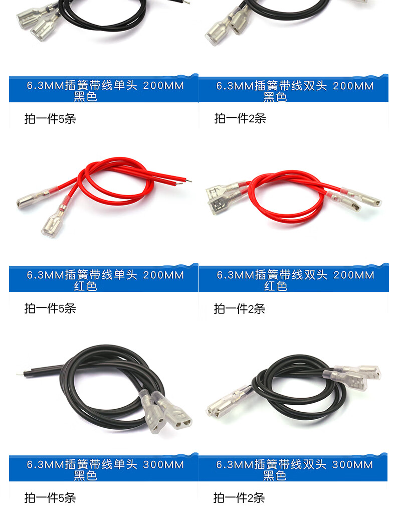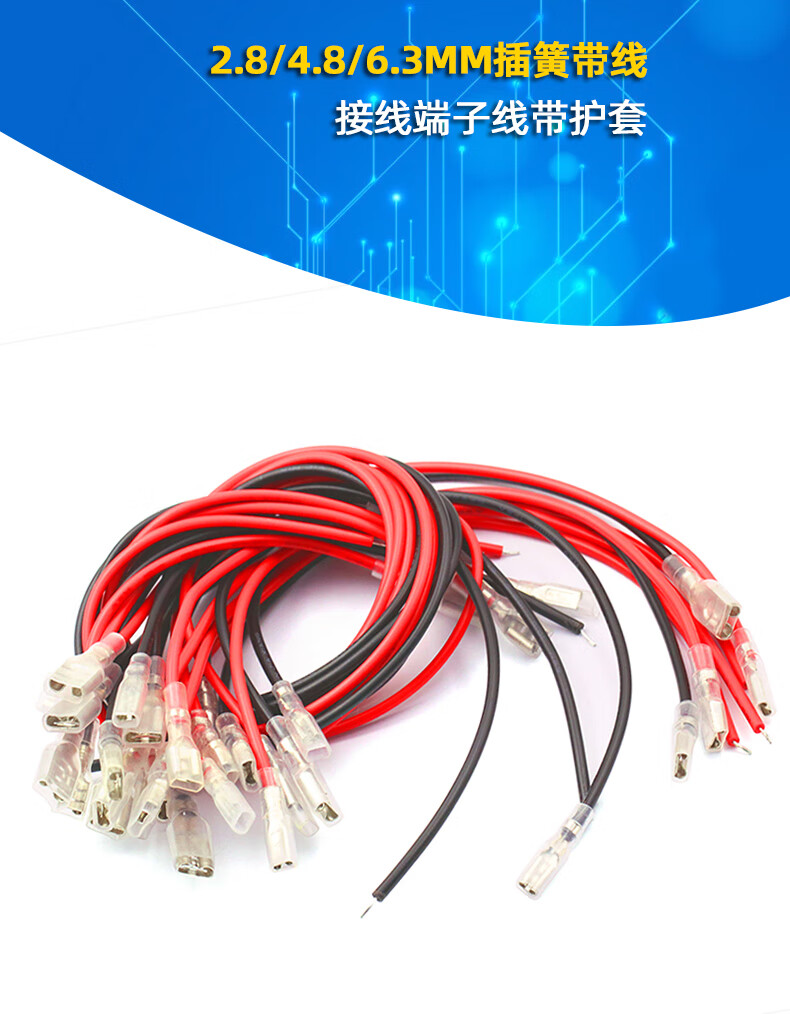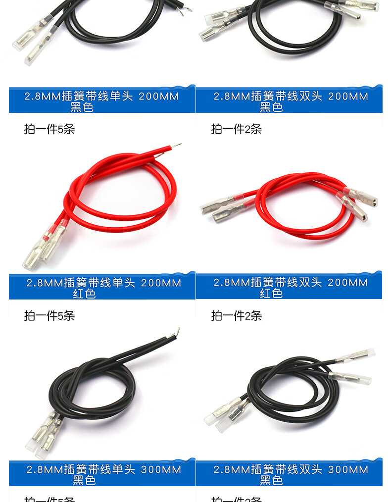 Dafurui 2.8MM/4.8MM/6.3MM spring with wire terminal block cable with sheath single head double head wire harness connection line 2.8MM spring with wire single head 200MM black (5 pieces)