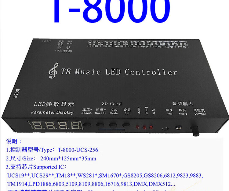 Suitable for full-color fantasy DMX512 light strip controller bar KTV private room four-port eight-port console programmable H807sa eight-port 512 can be offline