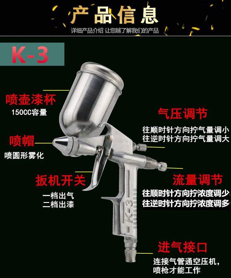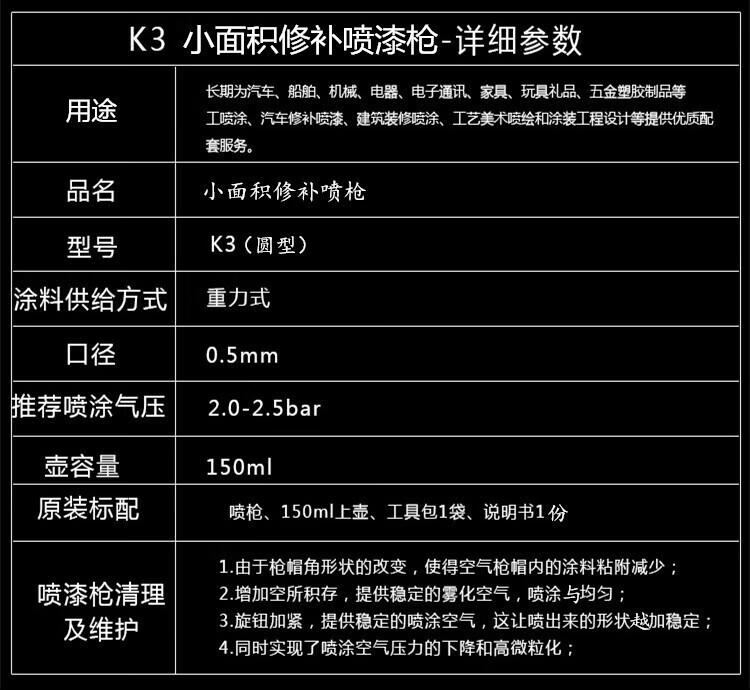 Haofanjie k3 spray paint special repair small spray gun small diameter atomized spray gun paint color repair gun spray gun pen small paint spray gun 0.5 caliber 150ml