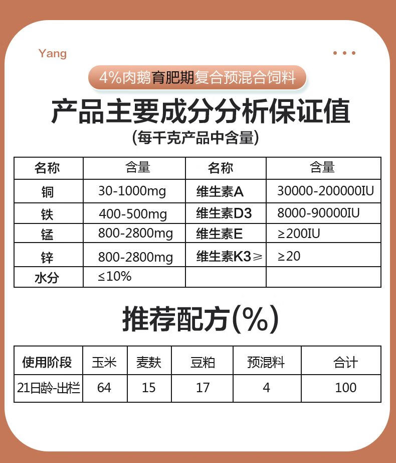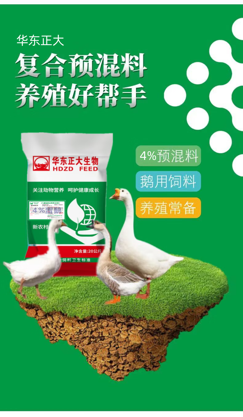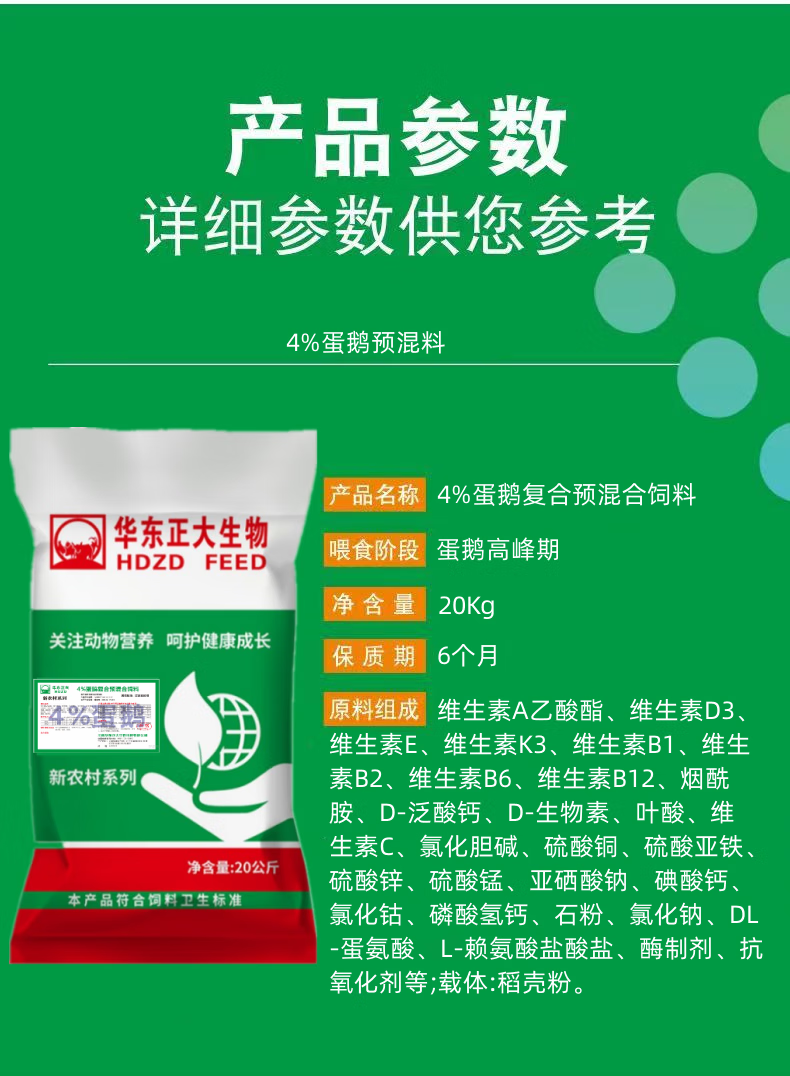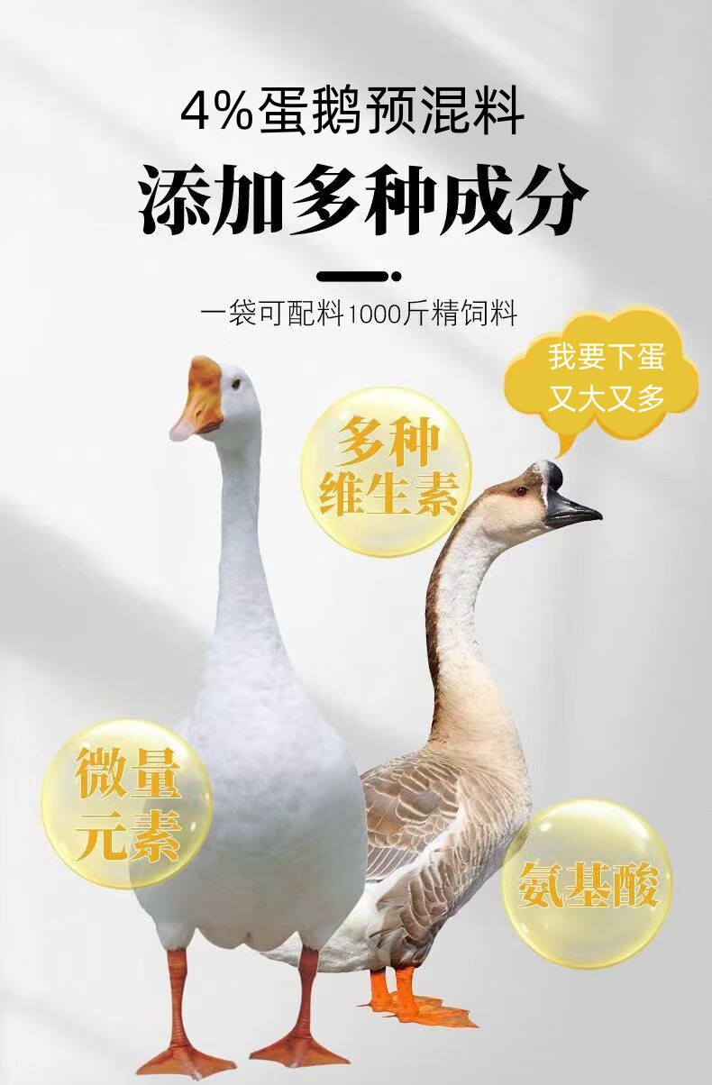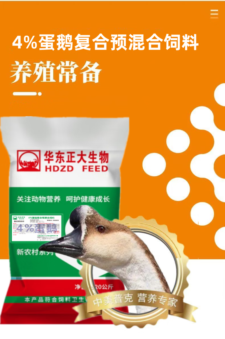 East China Zhengda 4% goose premix can be used to convert eggs and produce more eggs, quickly fatten and gain weight, enlarge the skeleton and promote growth. 1 bag of egg geese is 135 yuan.