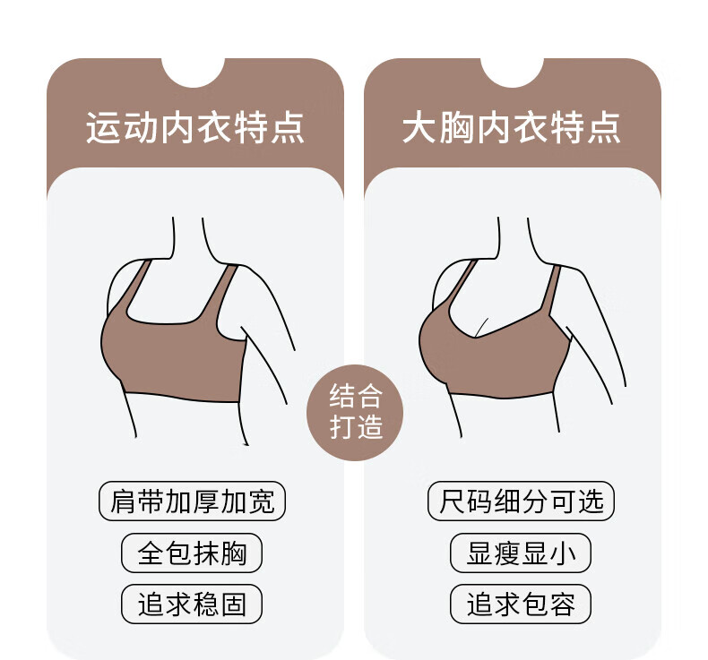 Qianami Seamless Sports Bra for Women with Large Breasts, Small Breast Reduction Bra, Pilates Shockproof Thin Bra, Milk Coffee Color 80C D