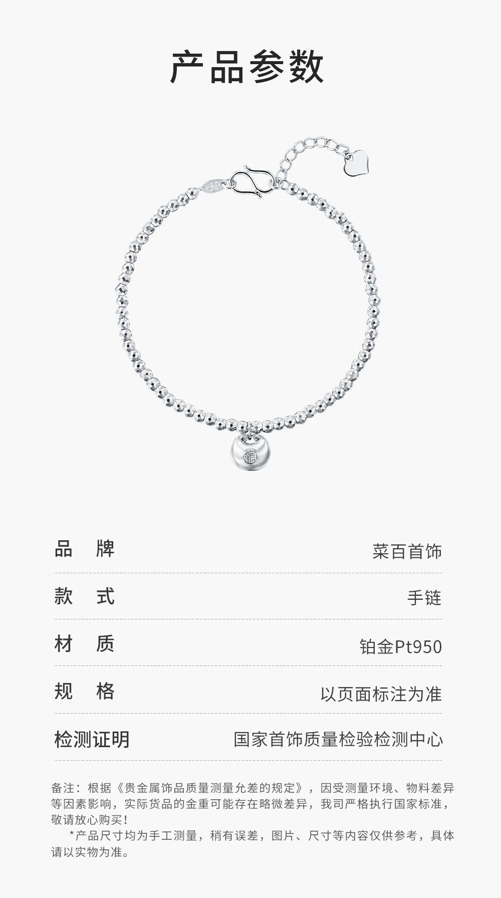 Caibai Jewelry Platinum Bracelet Pt950 National Trendy Bundi Bead Little Fat Fu Fashion Ball Bead Bracelet Priced BJ Platinum Bracelet About 6.42g About 16cm