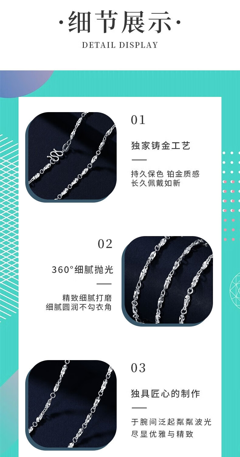 Duozun pt950 platinum necklace women's star fruit necklace platinum necklace platinum clavicle chain versatile plain chain for girlfriend 50 cm 5.04 g thick about 1.5mm