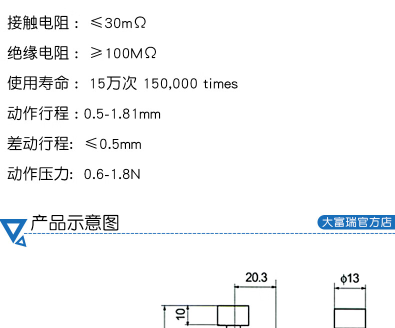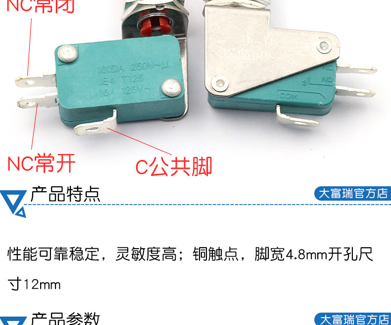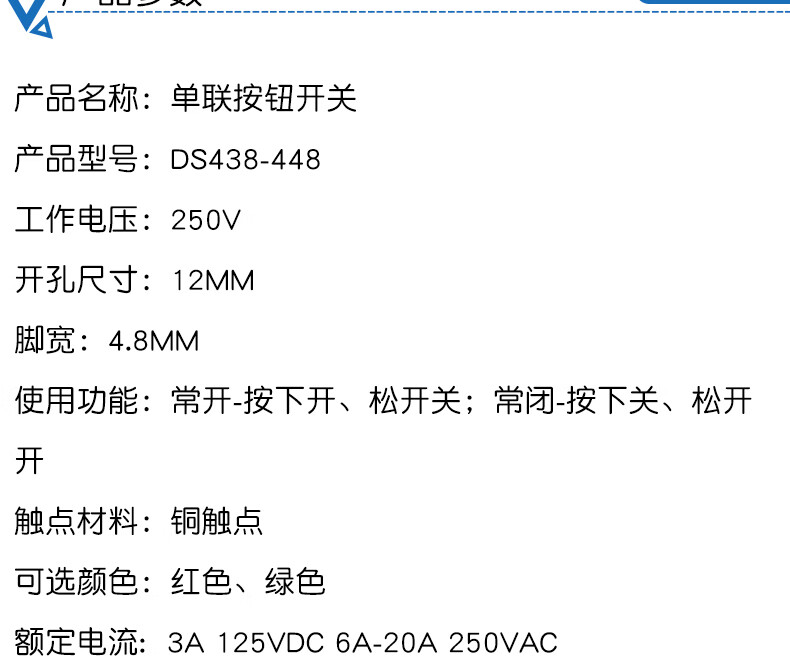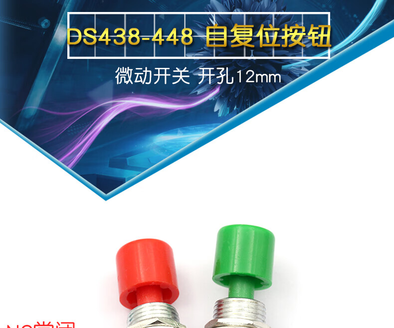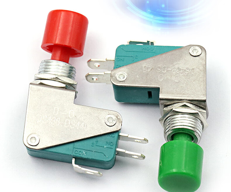 Dafuri DS438-448 self-resetting small inching button micro switch, opening 12mm, copper contact green and red cap, copper contact, foot width 6.3mm, single red cap (1 piece)