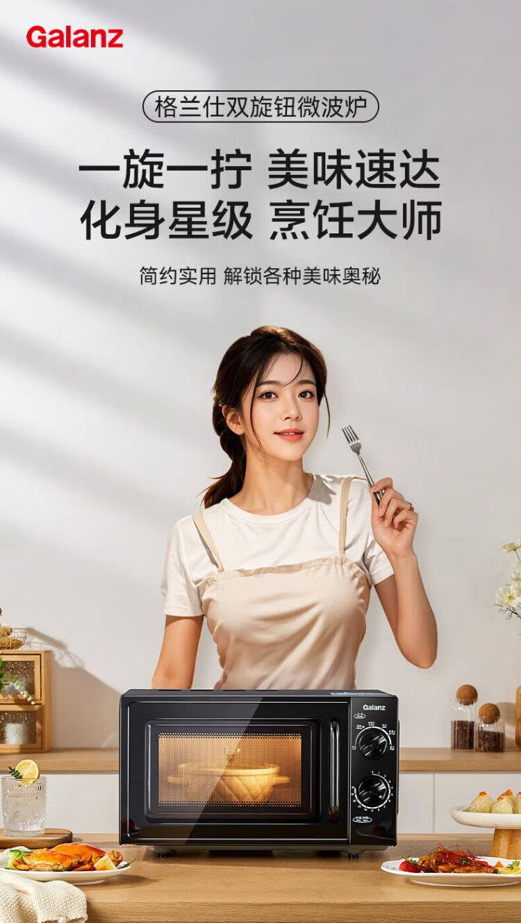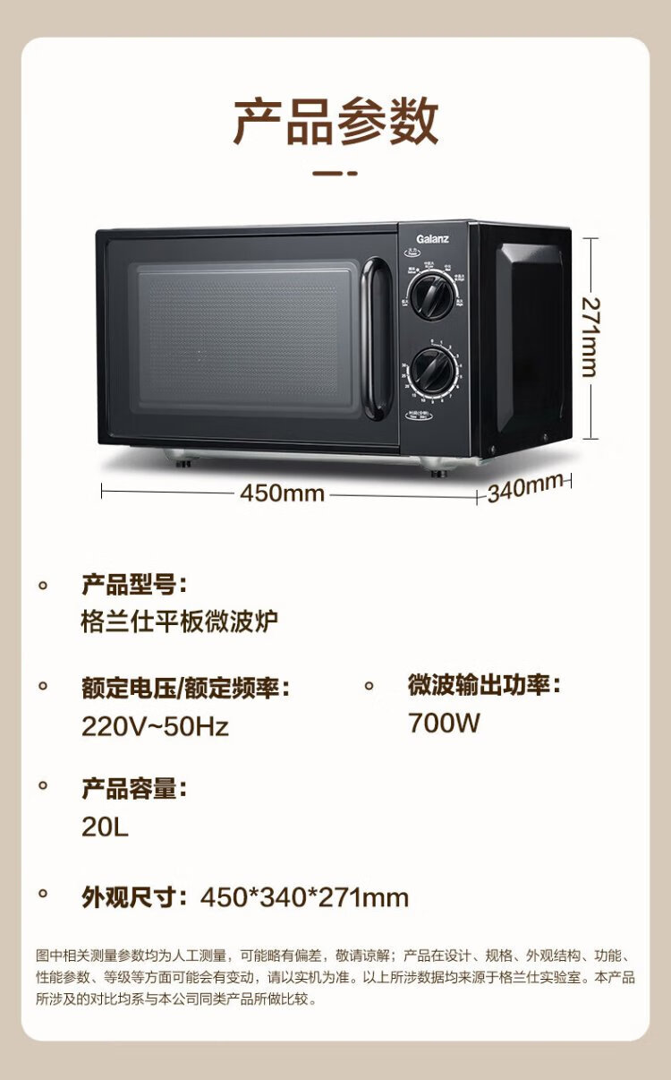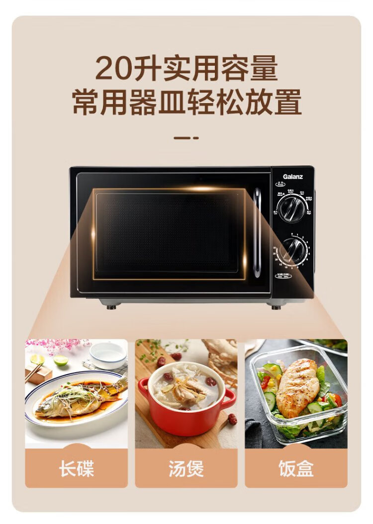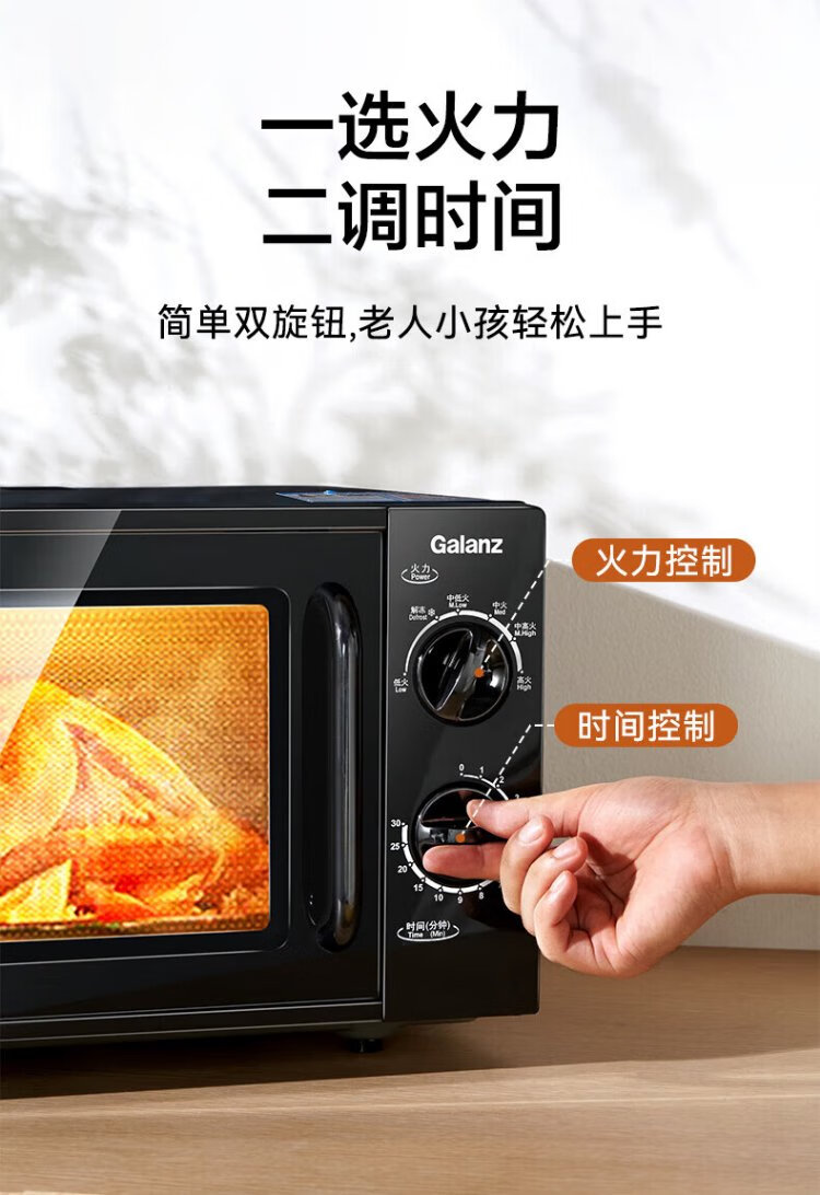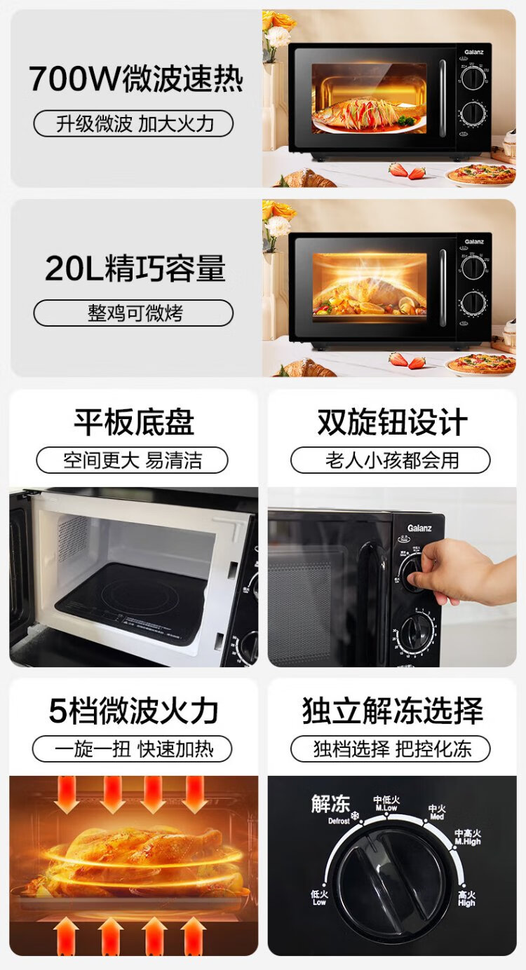 Galanz national subsidy household microwave oven 20 liters mechanical large flat plate easy to clean and even heating intelligent small mini quick heat sterilization knob simple and convenient operation B1 upgraded large flat plate black
