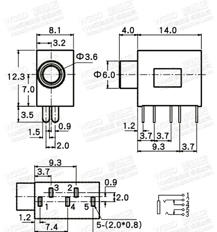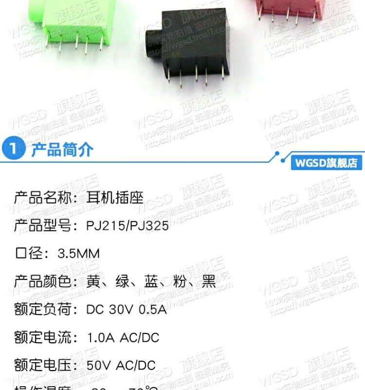 Dafurui headphone holder PJ215 PJ325 3.5MM caliber headphone socket five-color optional headphone holder (5 pcs) black (5 pcs)