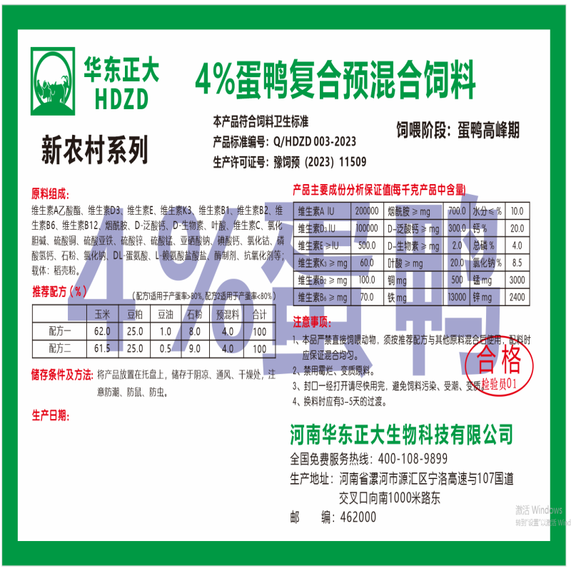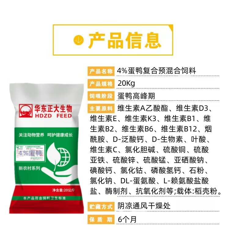 East China Zhengda 4% meat duck premix is converted into good egg production, rapid fattening and weight gain, promotes growth and enlarges the skeleton. 10 bags of laying ducks get 1 bag for 1350 yuan.