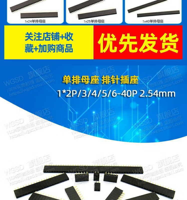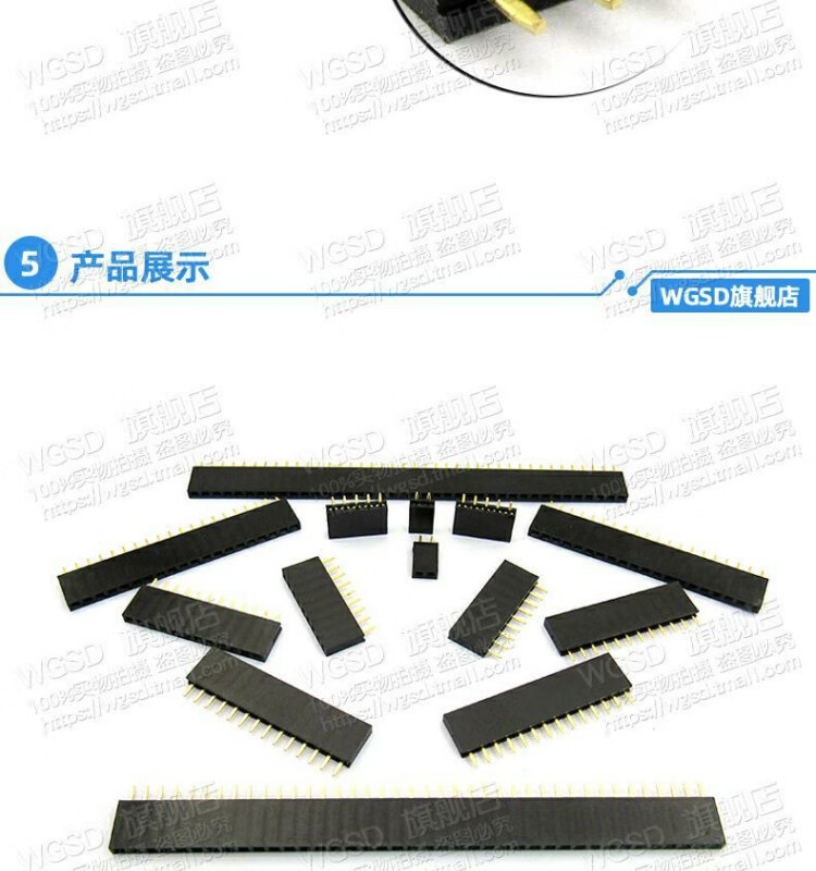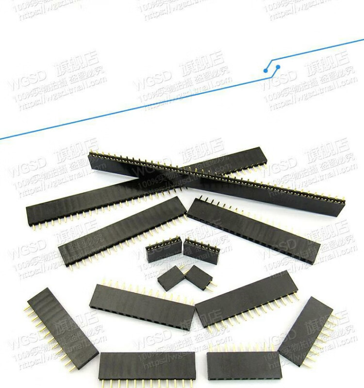 Dafuri female header single row female header pin socket 2.54mm 1*2P/3/4/5/6/10-40P 2x20P 2.54MM straight plug double row female black (5 pcs)