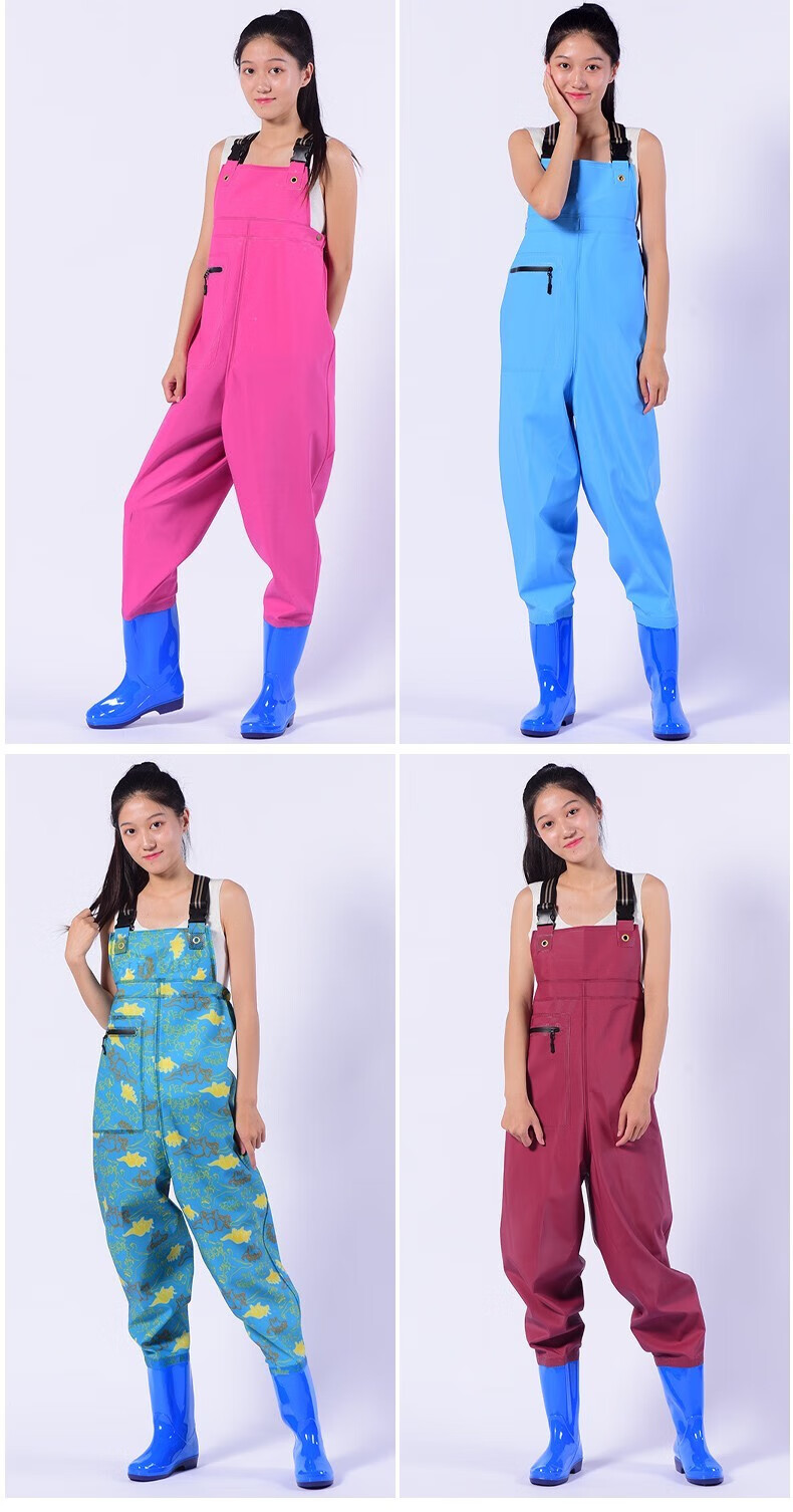 Women's waders, half body one-piece, fishing beach rain boots, big children's waterproof rain pants, children's sea wading clothes, women's sky blue suspender waterproof pants 37