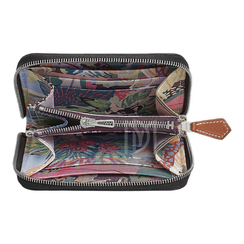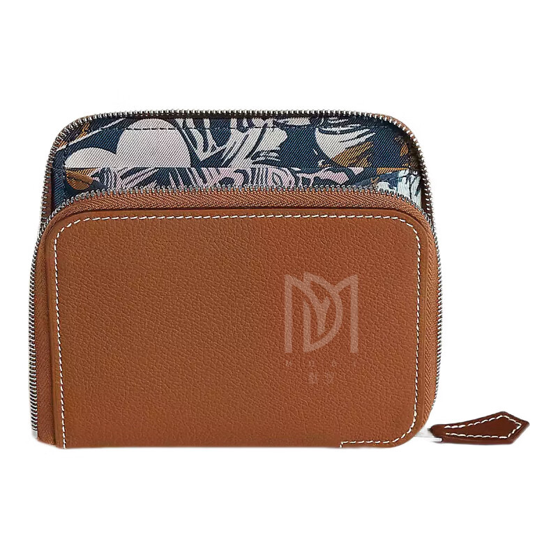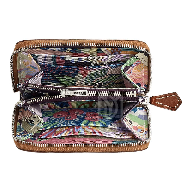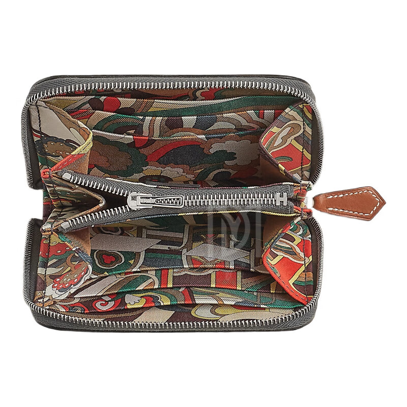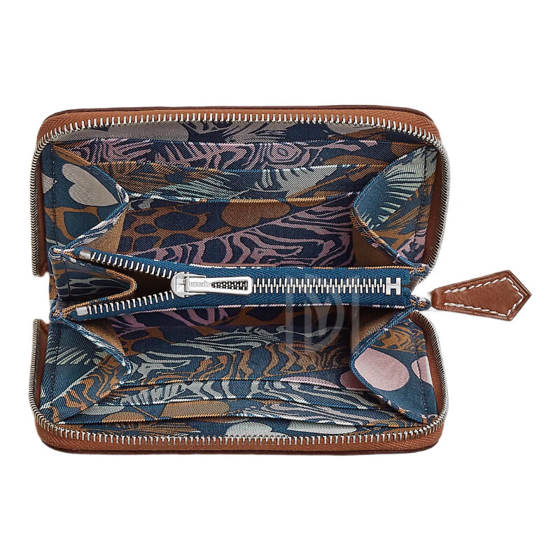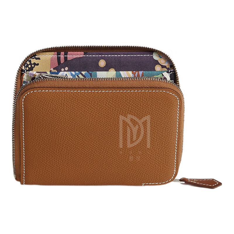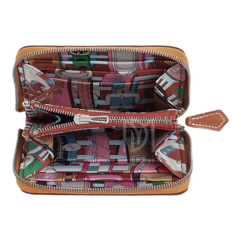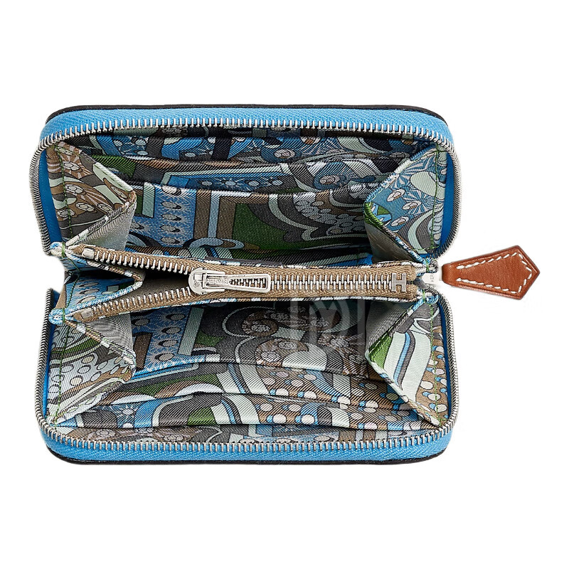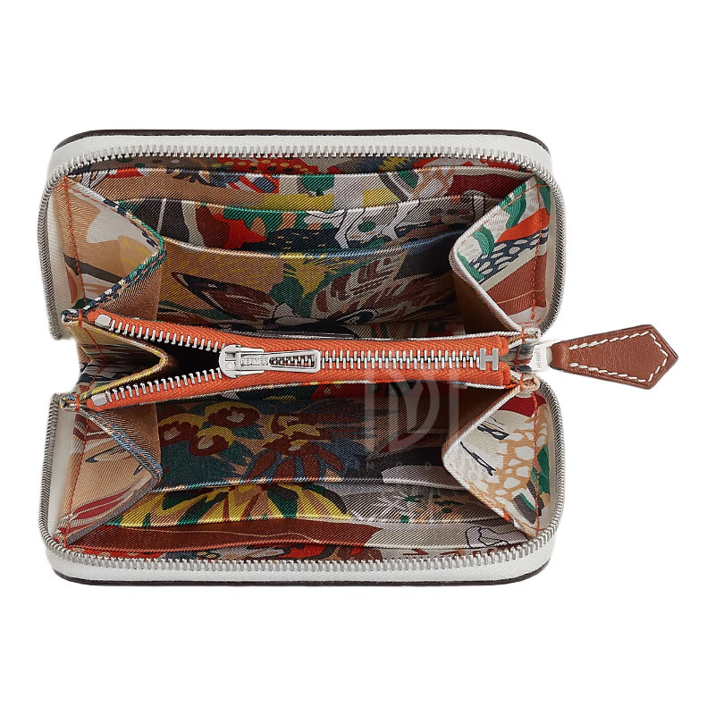 Hermes (HERMES) 2025 new women's new wallet silk twill printed calfskin short coin card holder style 13