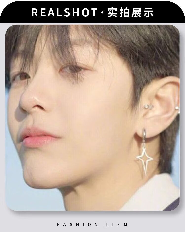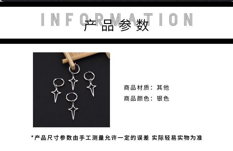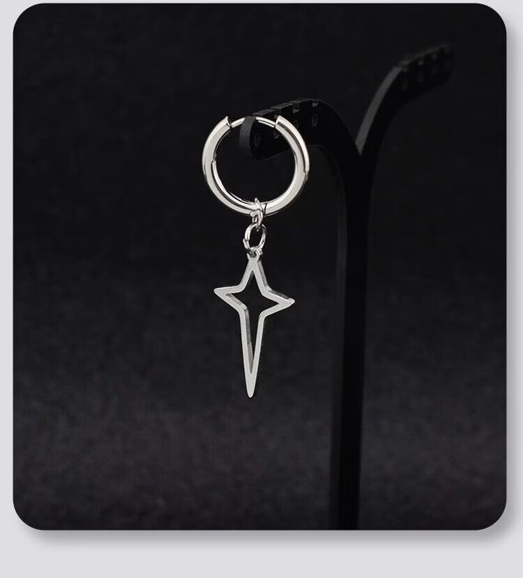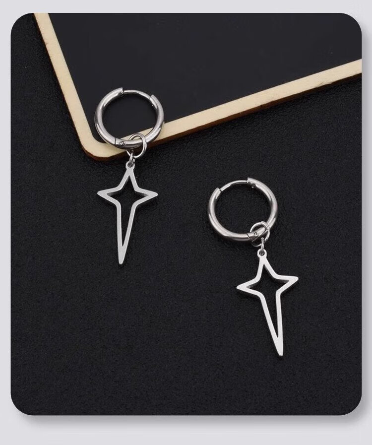 Shixi Star Ear Clip Titanium Steel No Piercing Earrings Cross Men's Earrings Trendy Simple Style Earrings for Men and Women Non-fading No Ear Pierced Cross Star Ear Clips Size Approximately 2.0*12 Spring Ear Clips Gift Box