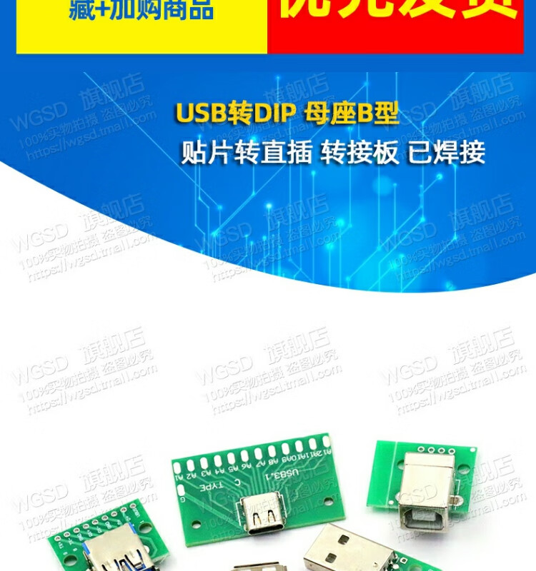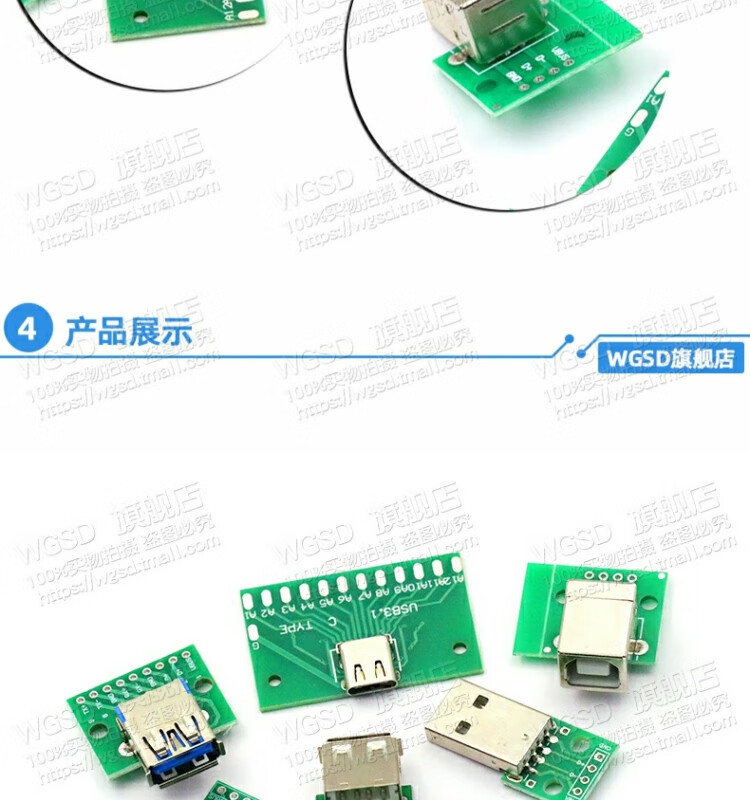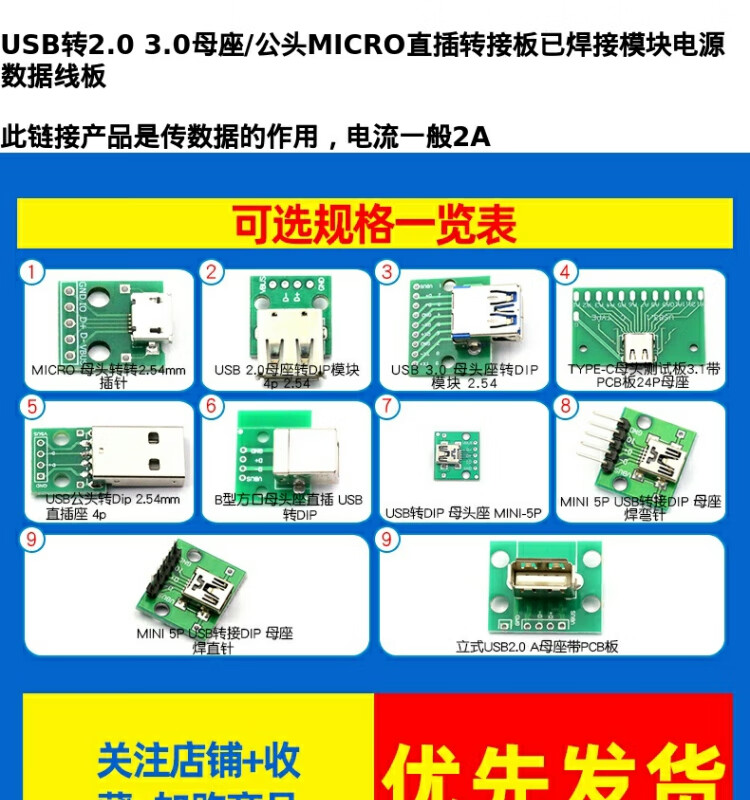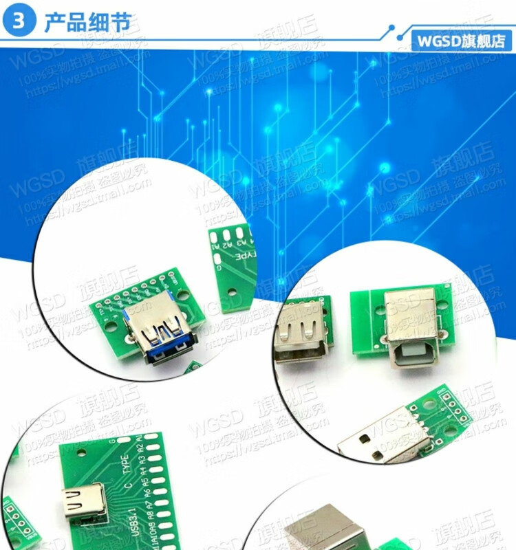 Dafuri USB to 2.0 3.0 female base male MICRO adapter board typec welded module circuit small board line power supply TYPE-C female base mini adapter board
