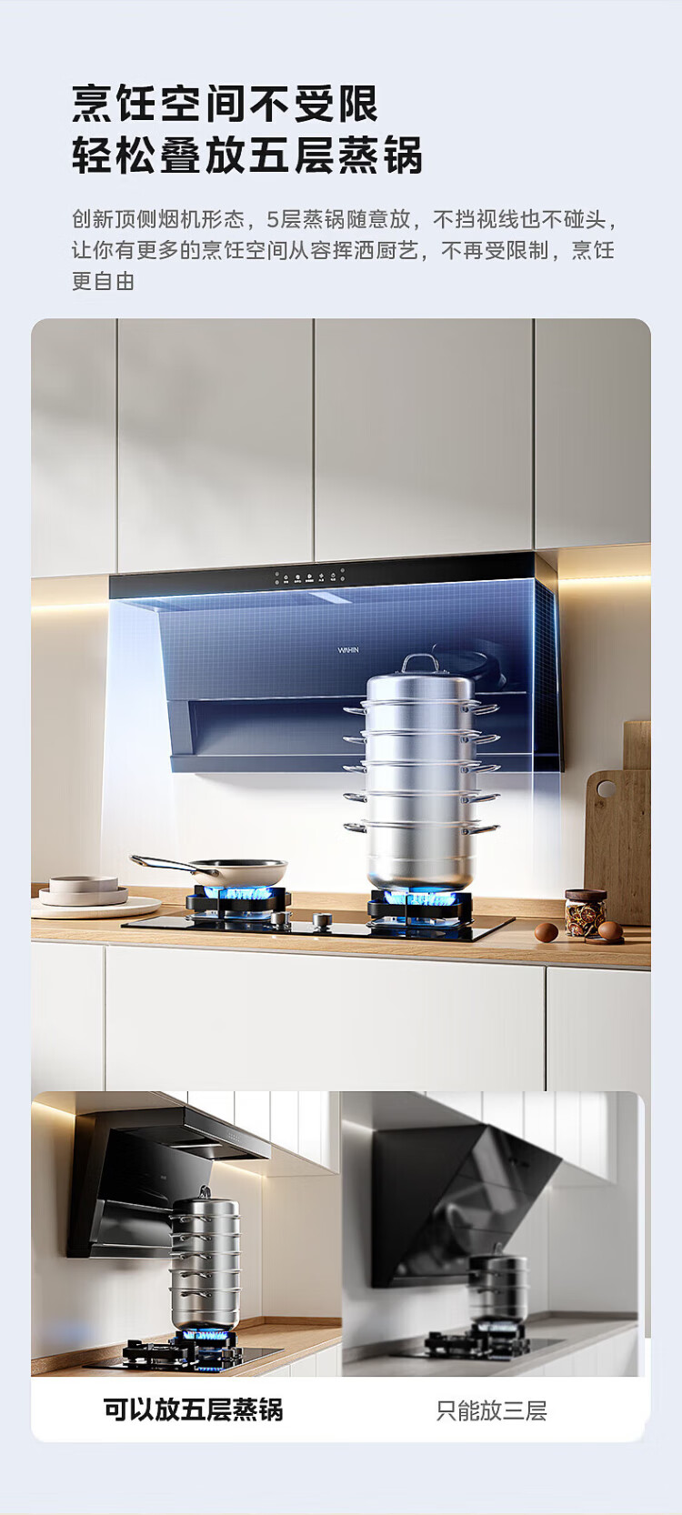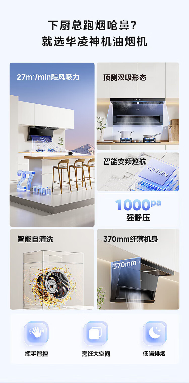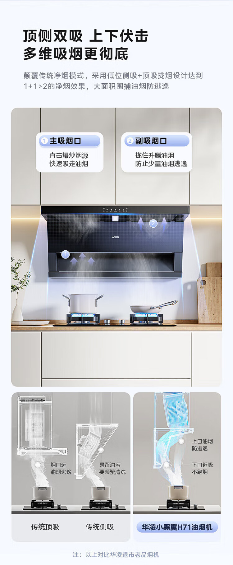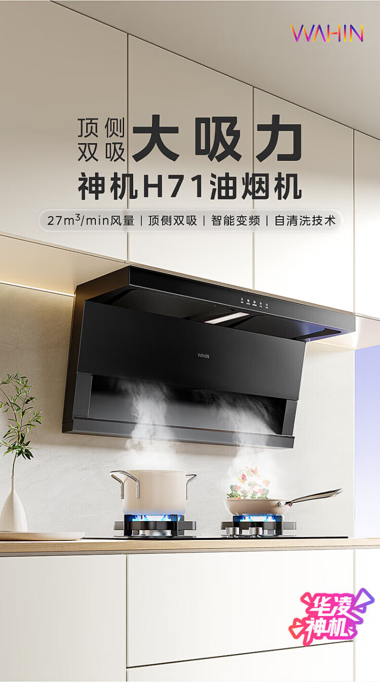 Hualingmei's magic machine top side double smoking machine 27m variable frequency large suction 7-shaped waving hand self-cleaning flat-mounted smoking machine H71 Shenji H71 27 air volume top side double smoking machine