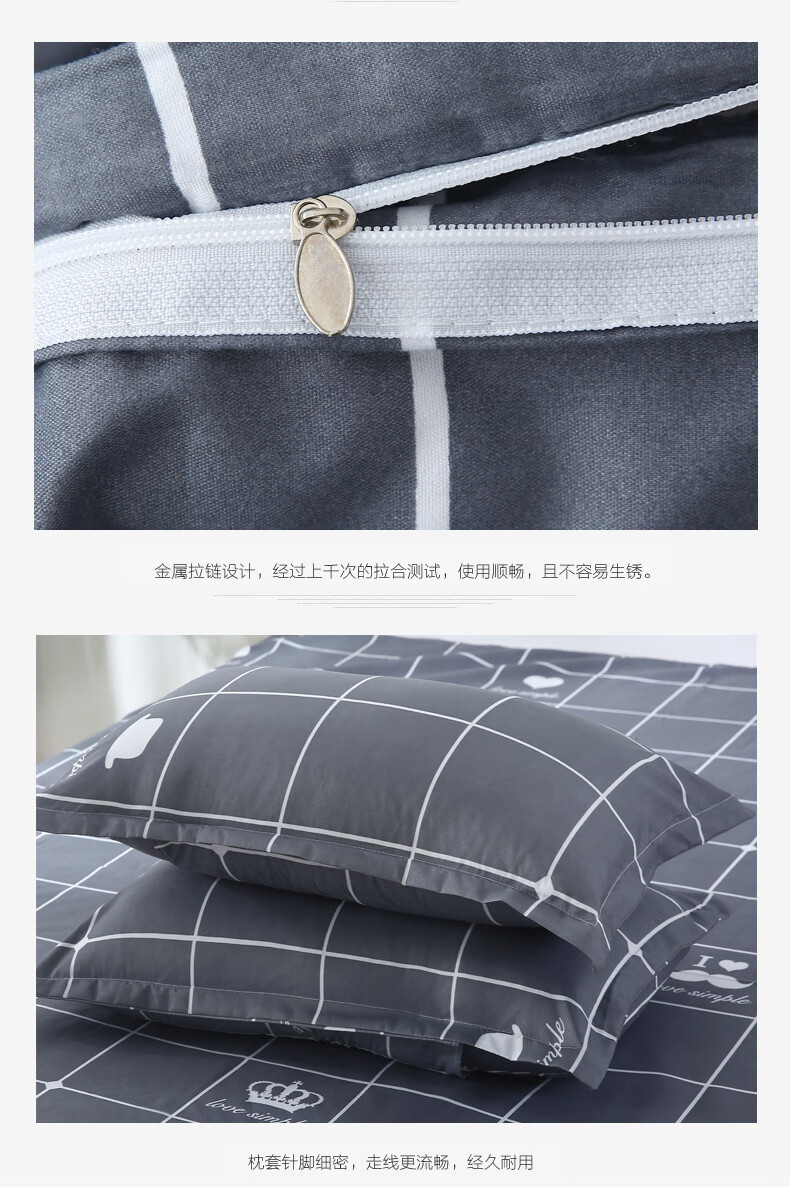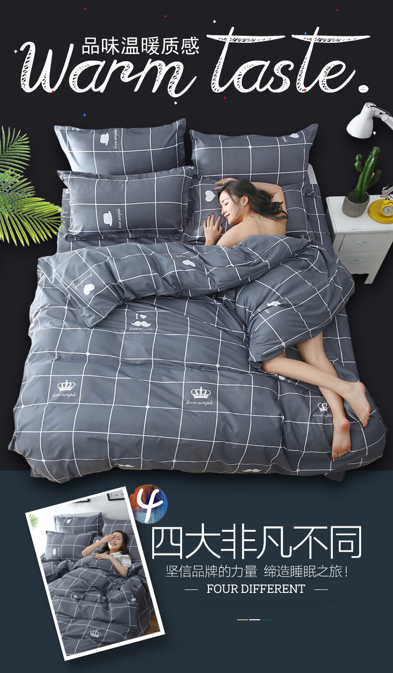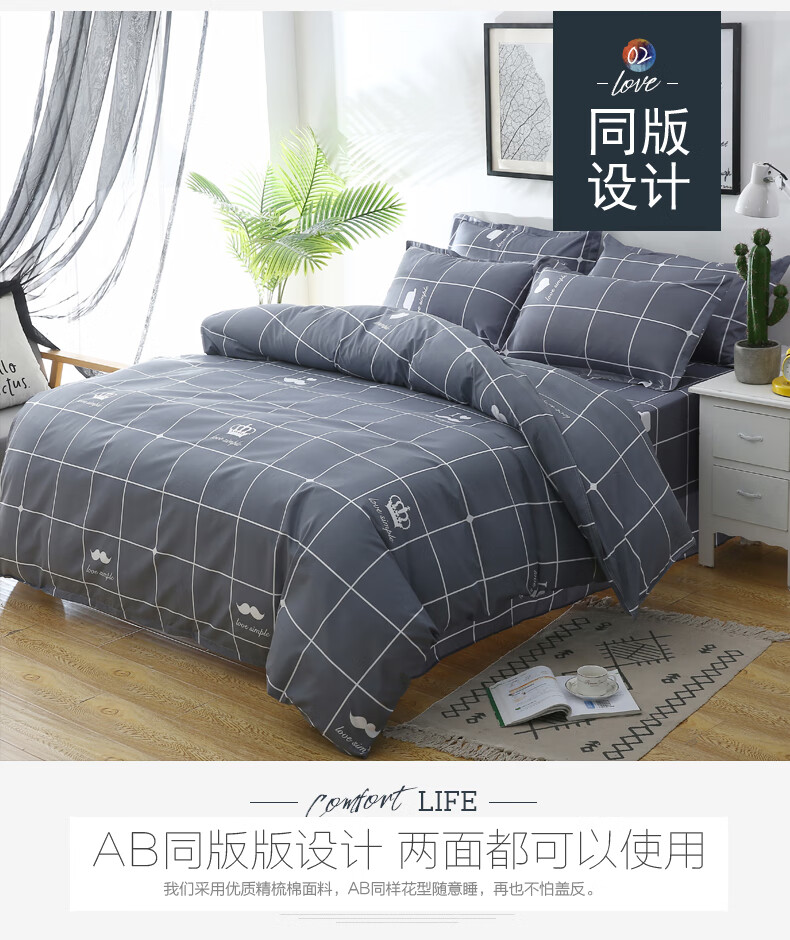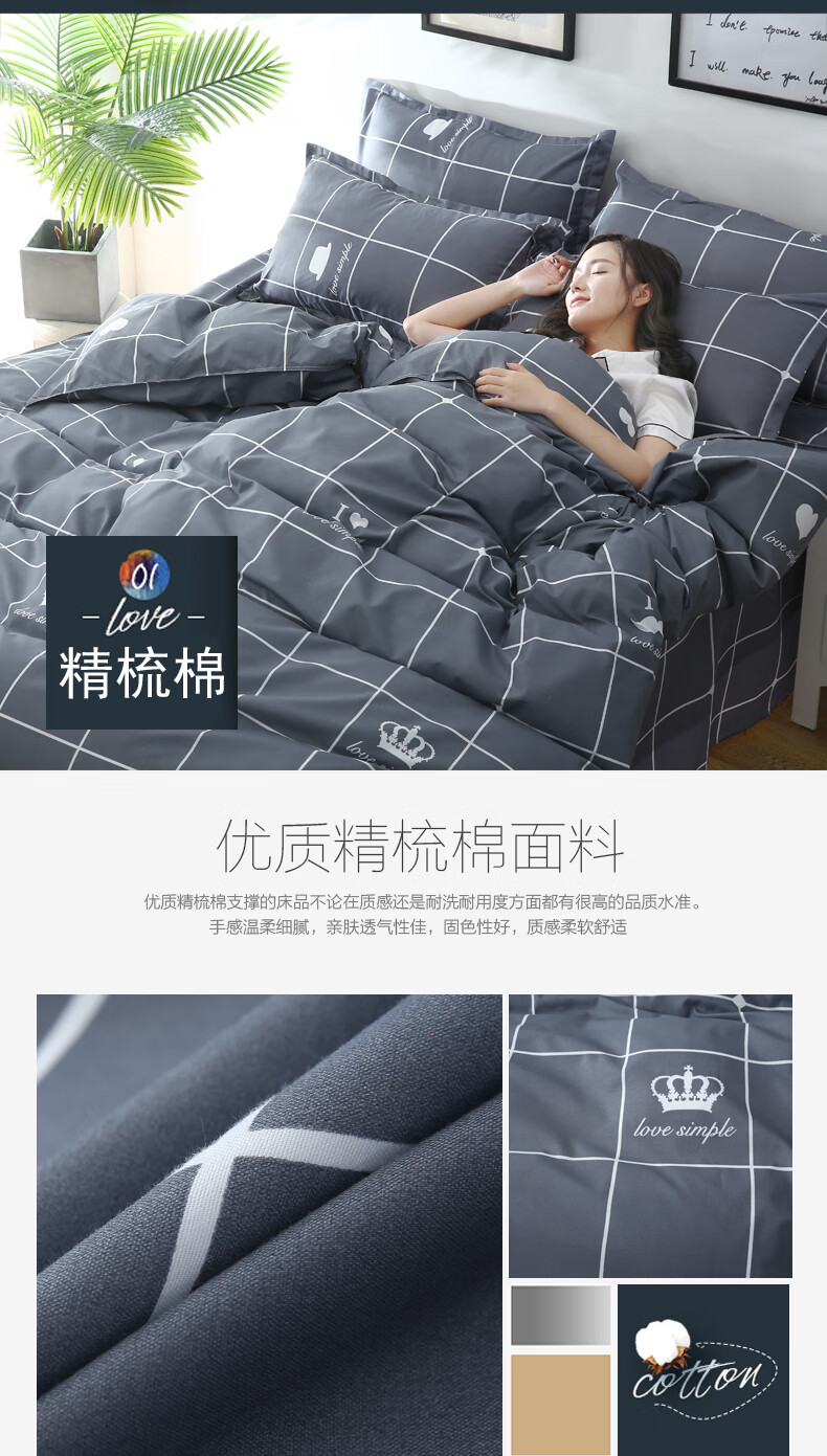 Quilt core + four-piece set + pillow core bedding set student dormitory single and double bedding complete set dark gray (YZ skin-friendly fabric) single bed changeable three-piece set - quilt cover 150*200cm