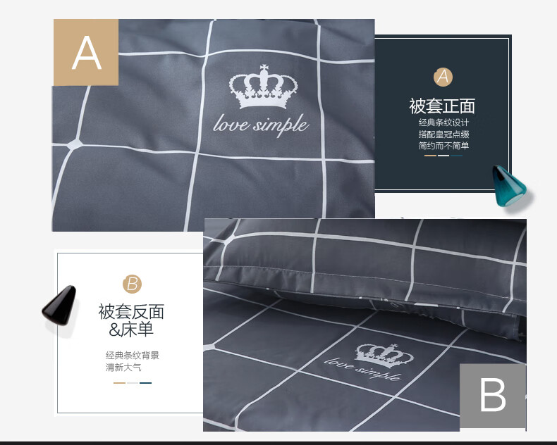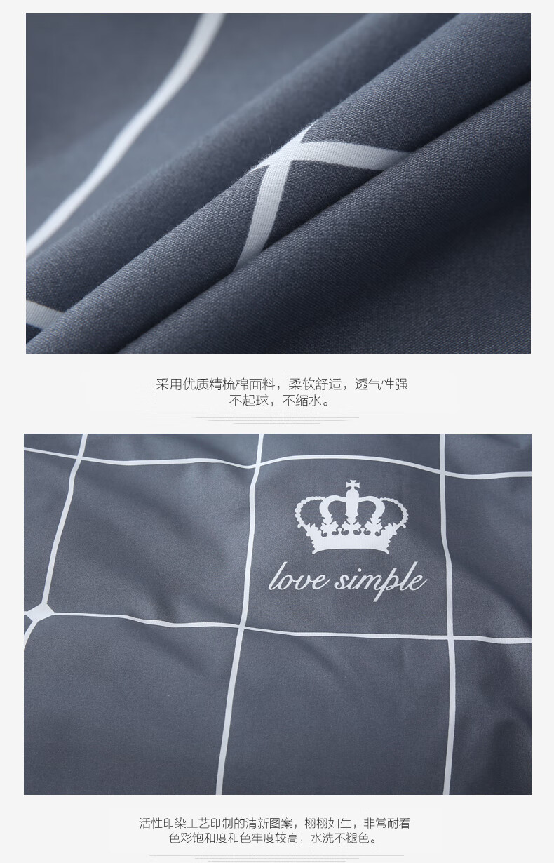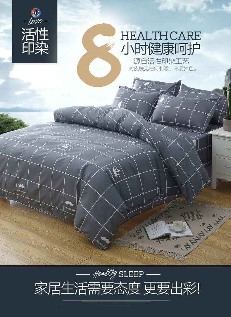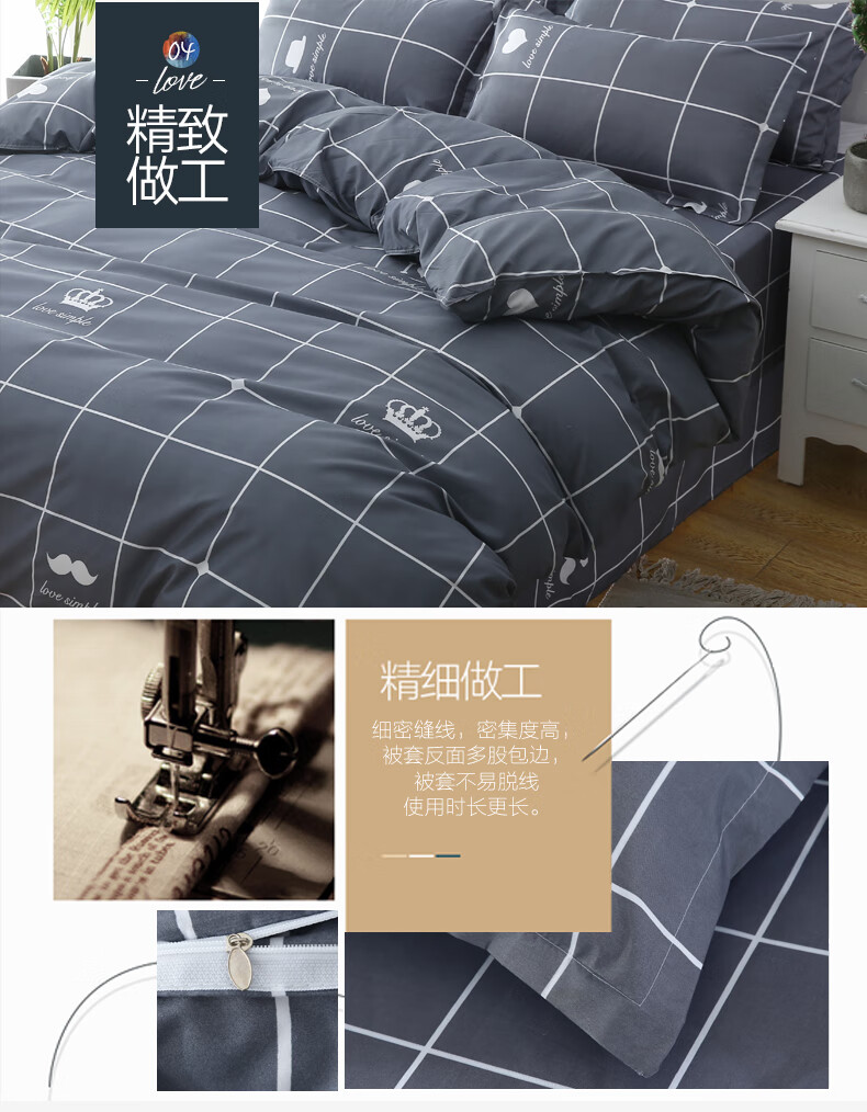 Quilt core + four-piece set + pillow core bedding set student dormitory single and double bedding complete set dark gray (YZ skin-friendly fabric) single bed changeable three-piece set - quilt cover 150*200cm