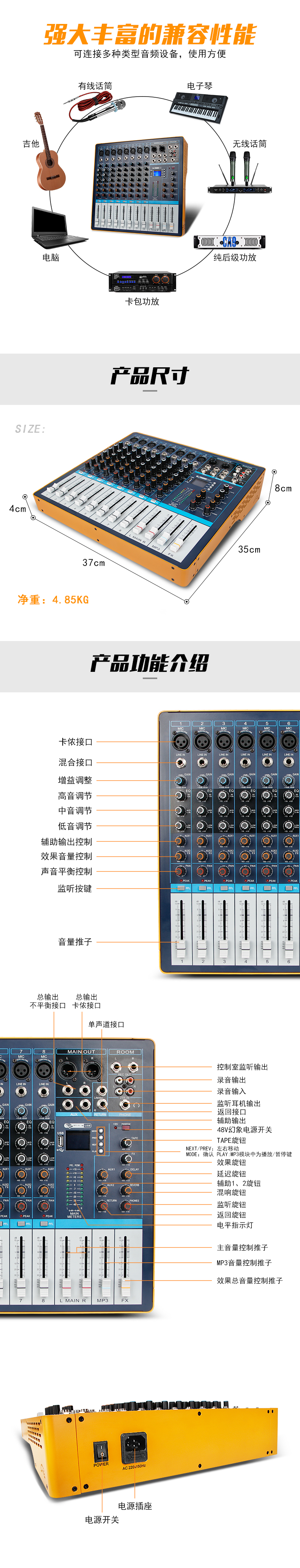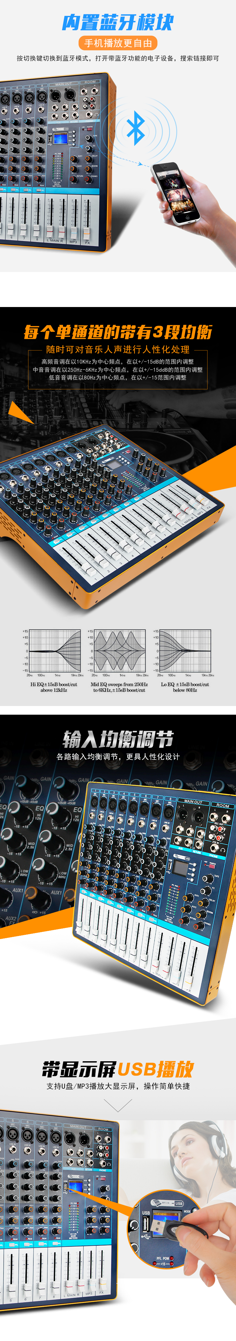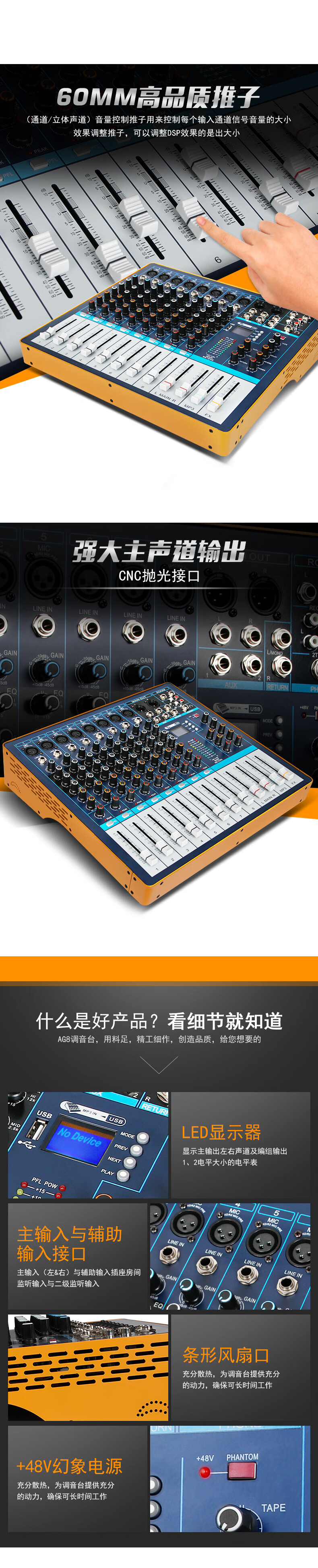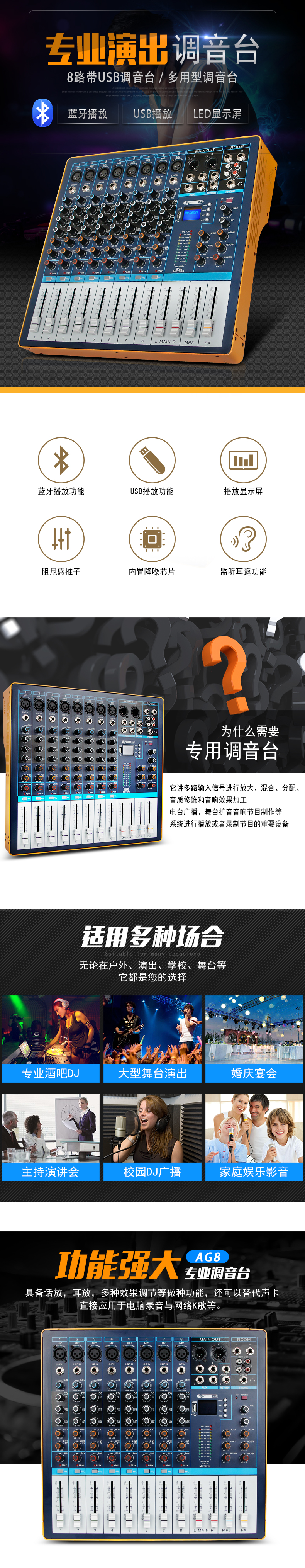 Depusheng AG8 professional 8-way mixer stage wedding conference U disk Bluetooth MP3 playback multi-function with effect reverberation equalization eight-way mixer