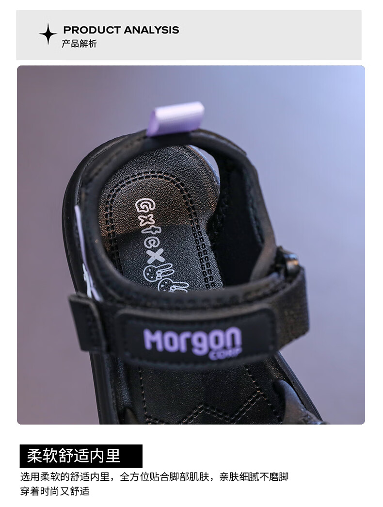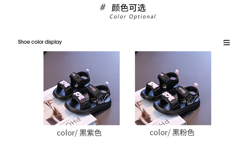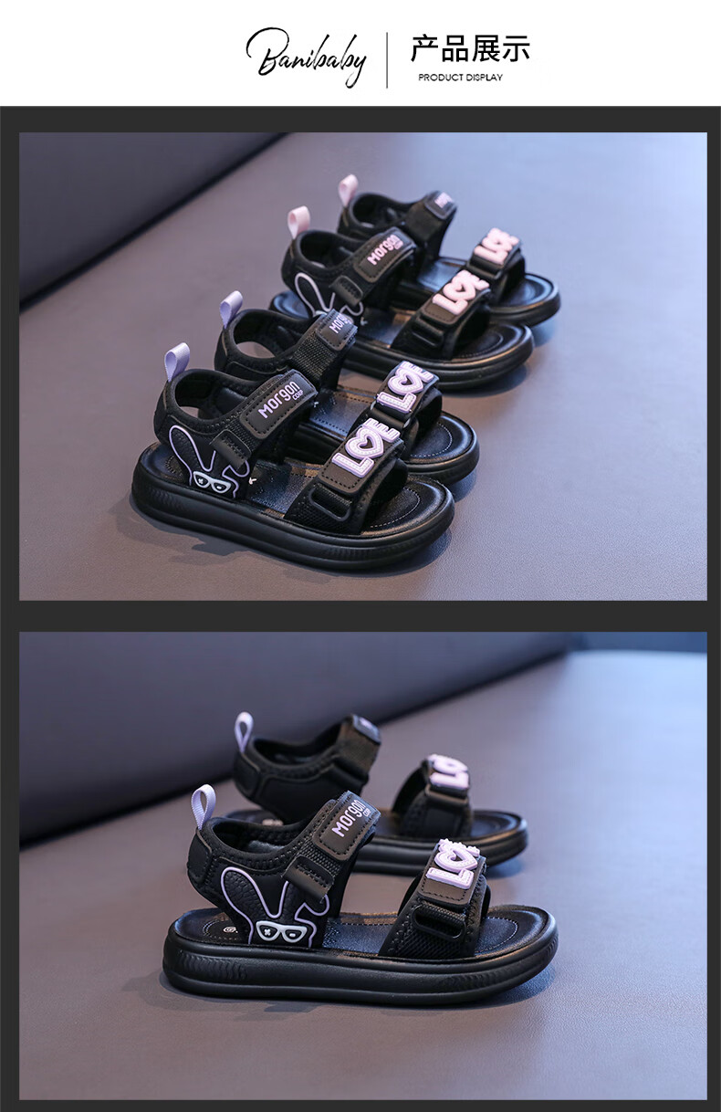 Girls new summer lightweight Velcro comfortable open toe non-slip soft sole sports sandals breathable medium and large children's shoes purple YY-8-21 28 inner length 17.1cm