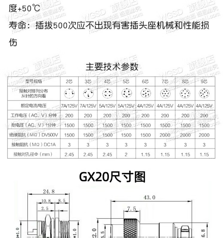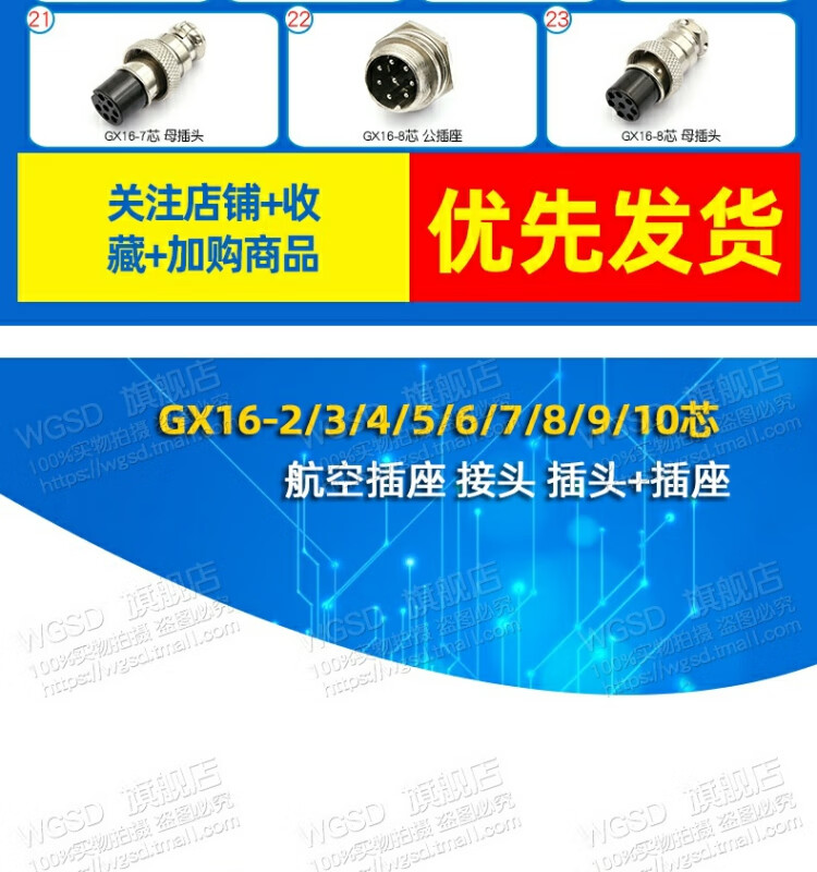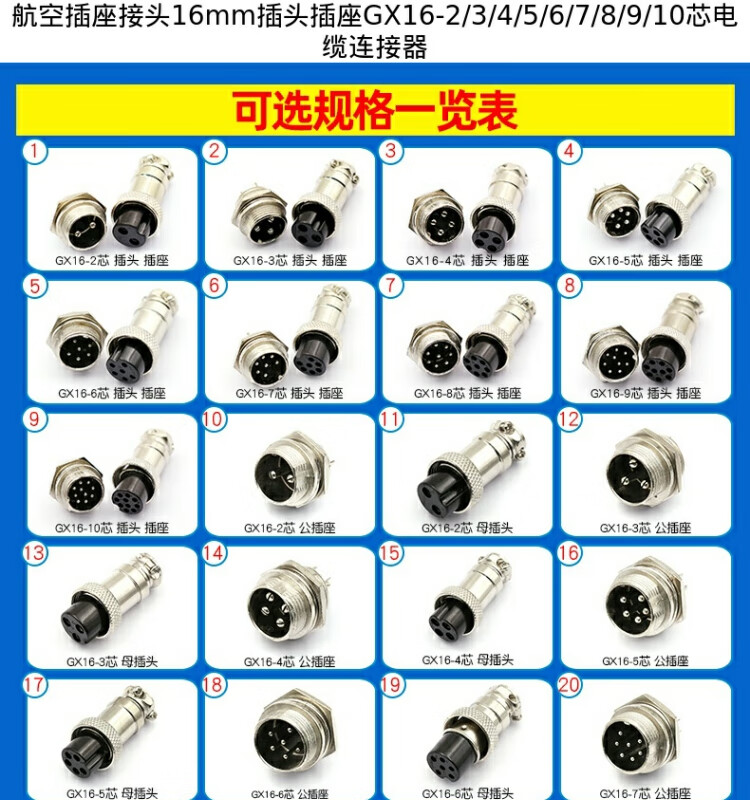 Dafuri aviation plug and socket connector GX12 16 20-2/3/4/5/6/8/10/12 core cable connector aviation plug GX16-10 core female plug (1 piece)