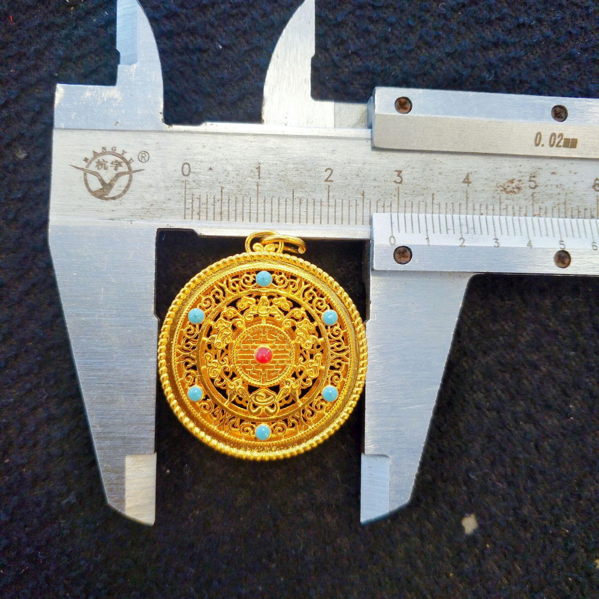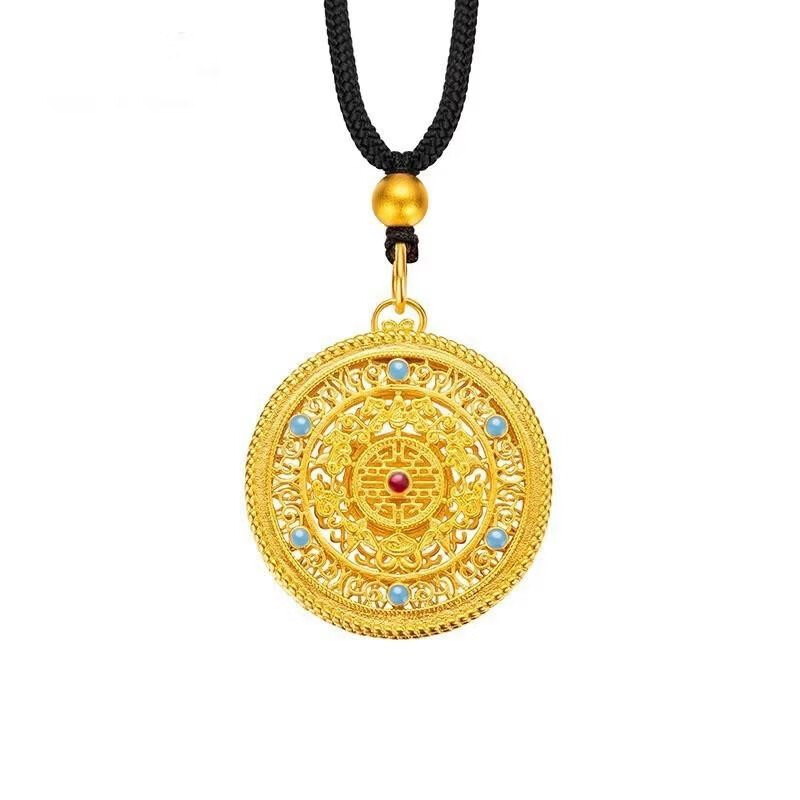 KZD999 Bengal red gold jewelry Wufu disc pendant women's pendant long-lasting color copper gold-plated male Wufu disc boutique large size 29m Laofengxiang quality S Laofengxiang quality