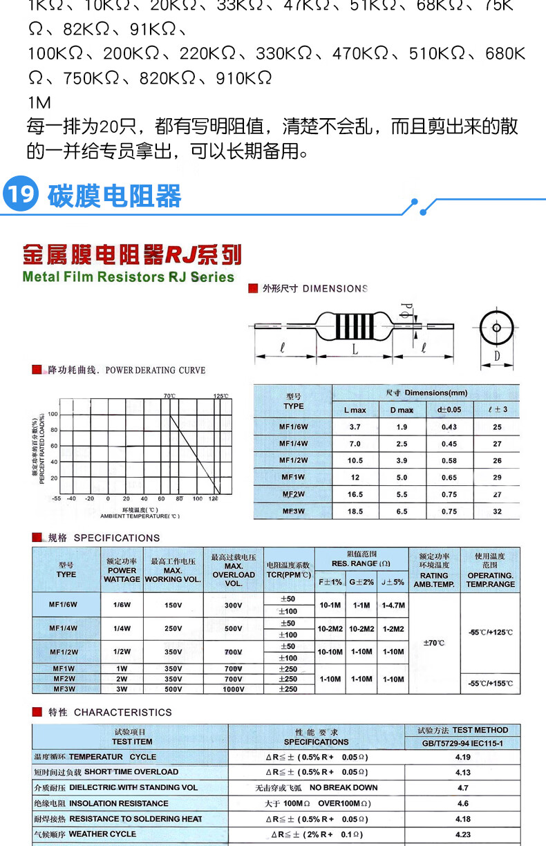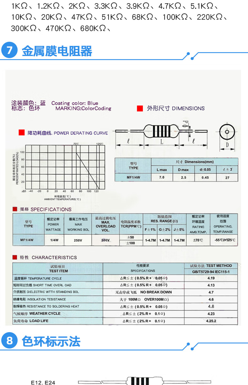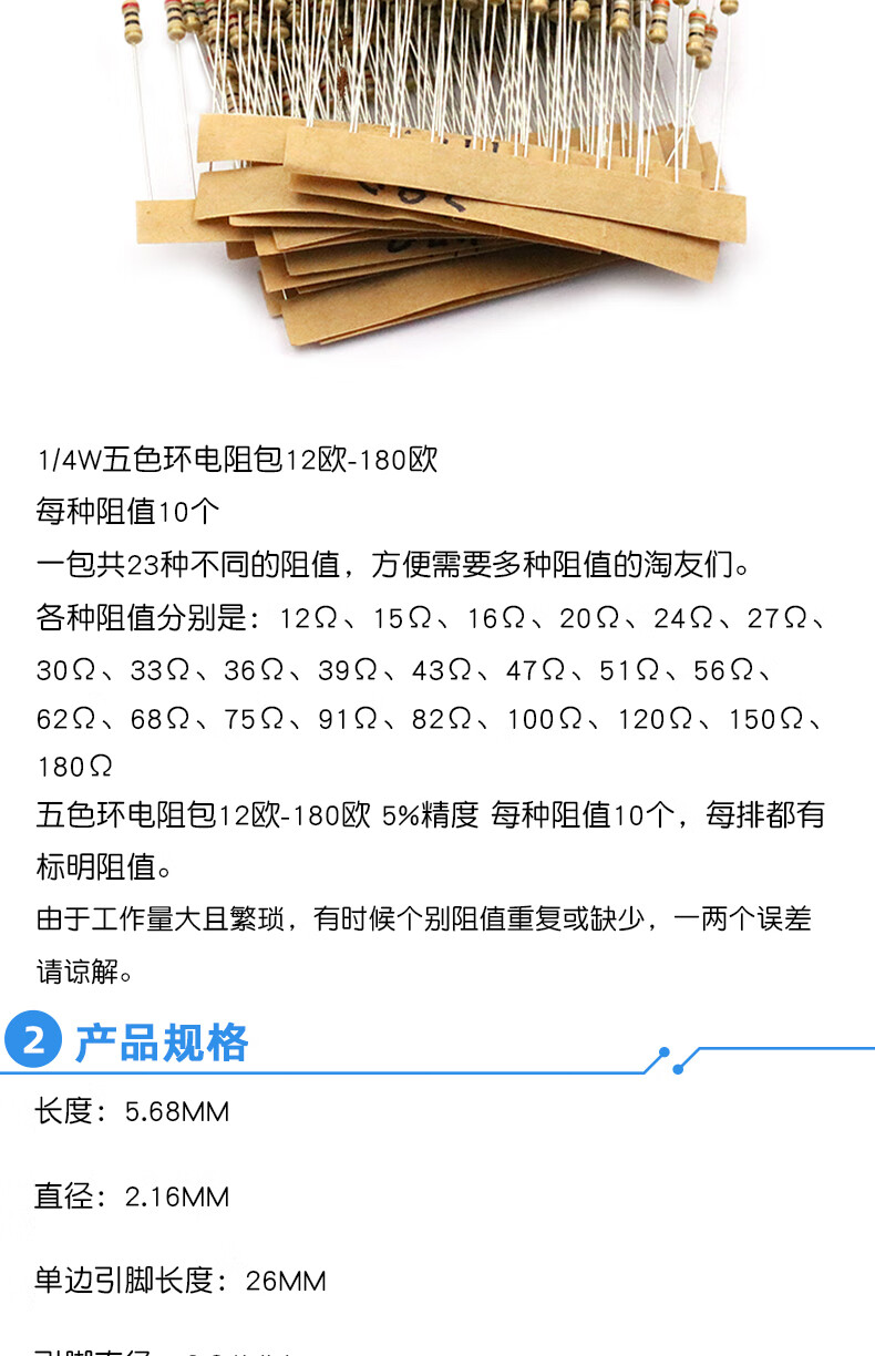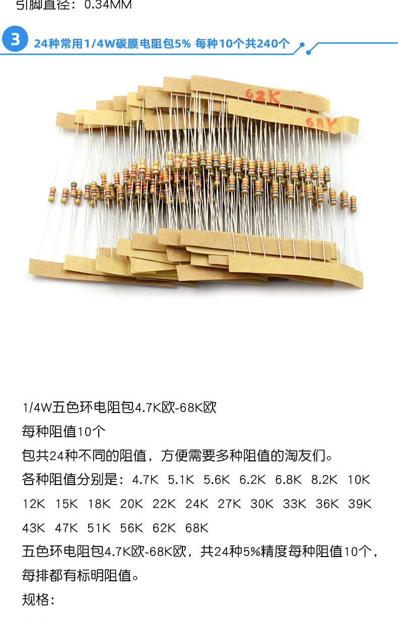 Dafuri 1/4W metal film resistor packaged with carbon film 41 mixed 30/37/43 types of electronic components commonly used 1% color ring 25 types of commonly used 1/4W resistors packaged 1% each 20 pcs, a total of 500 pcs