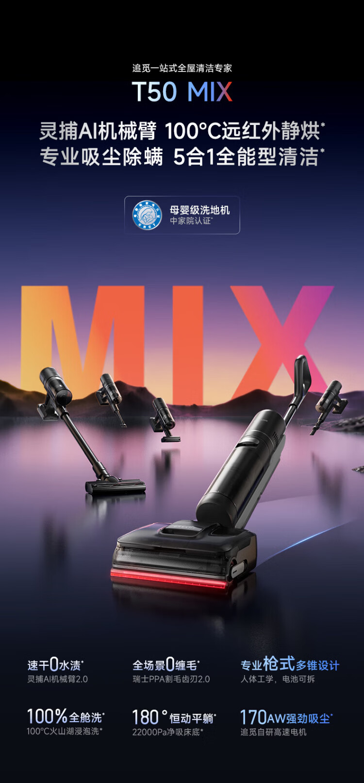 Chai Mi Spring Festival Gala same model T50Mix floor scrubber all-in-one wireless vacuum cleaner mite removal instrument washing, mopping, suction and removal all-in-one automatic cleaning state-subsidized electric mop floor wiper