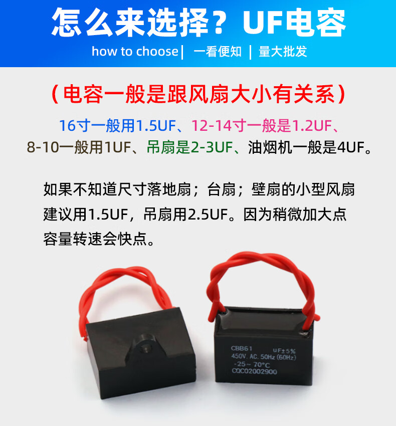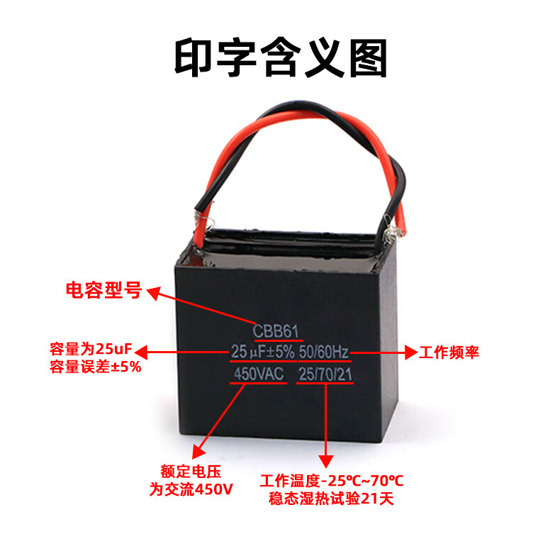 Dafuri CBB61 electric fan starting capacitor range hood table fan motor universal 1.2 1.5UF 2UF ceiling fan 450v 0.8UF (450V or 500V) CBB61 (1 piece)