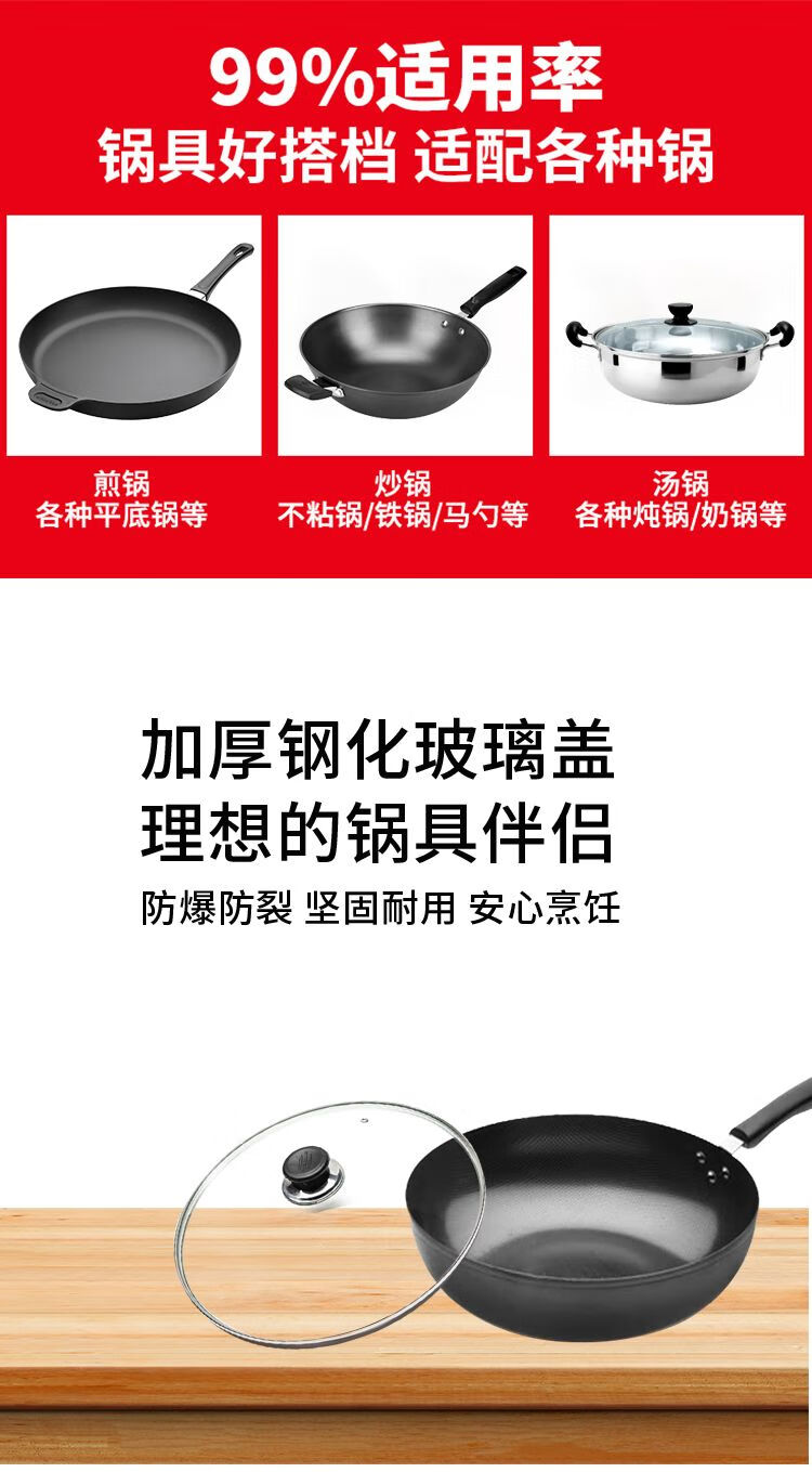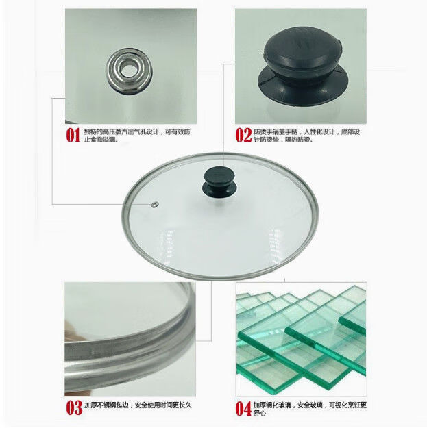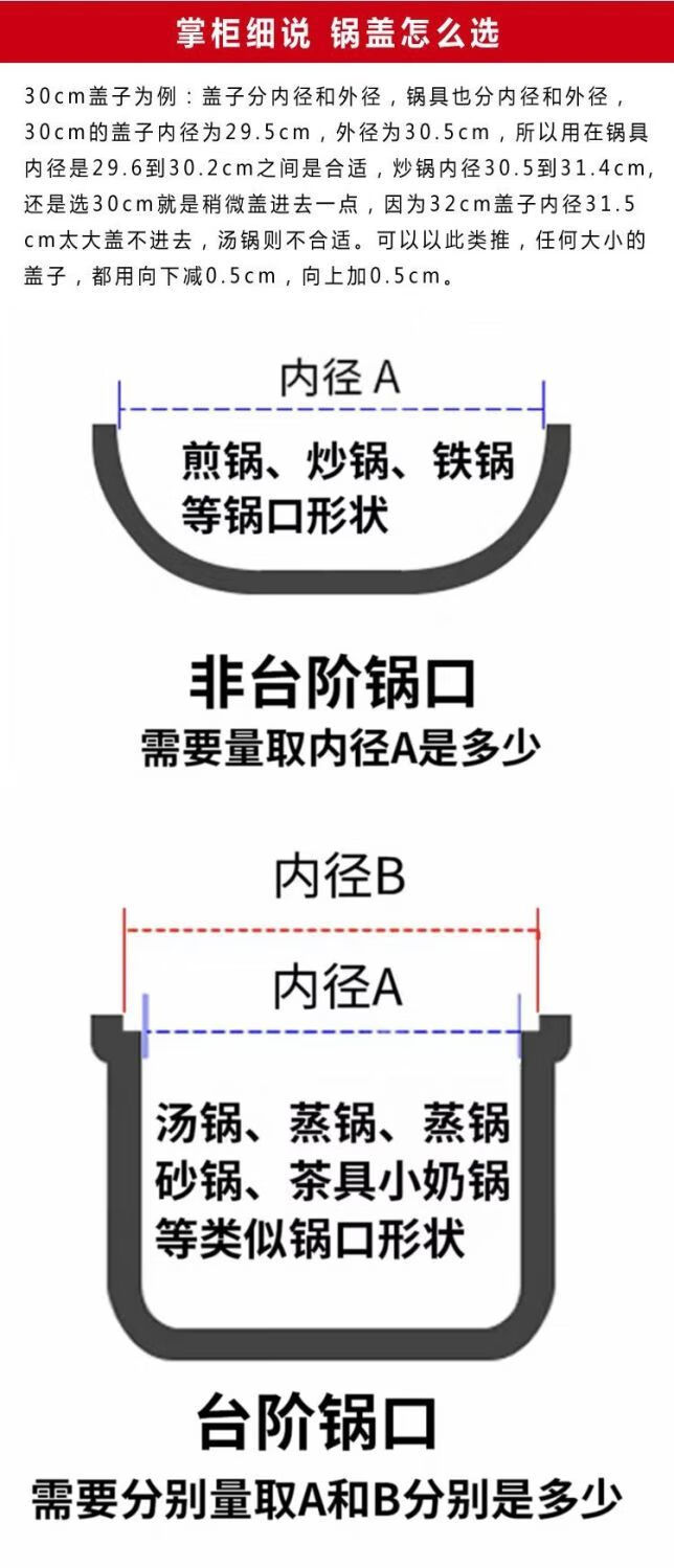 Bodenju tempered glass lid Supor universal pan lid universal wok lid non-stick lid 12-44cm plastic cover button 16CM inner diameter 15.6 outer diameter 16.6
