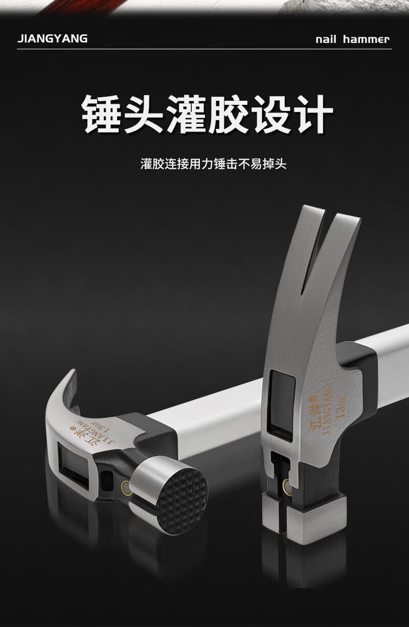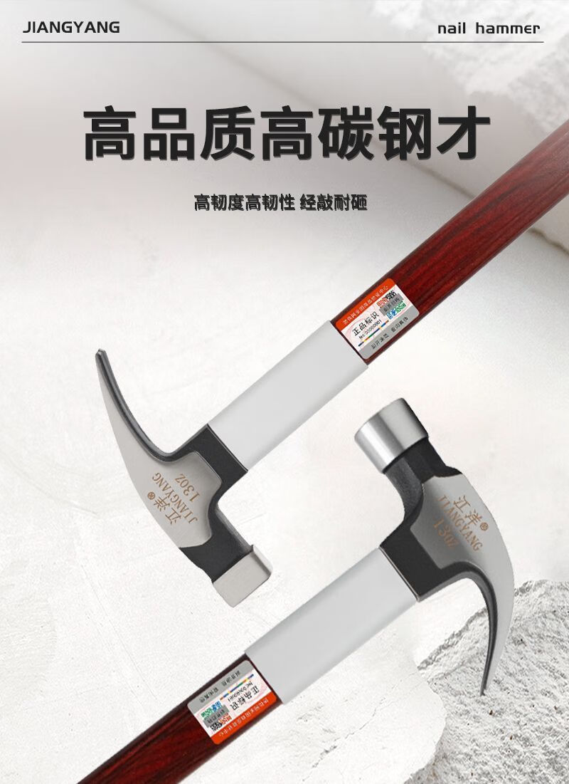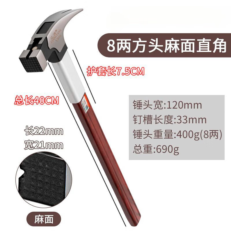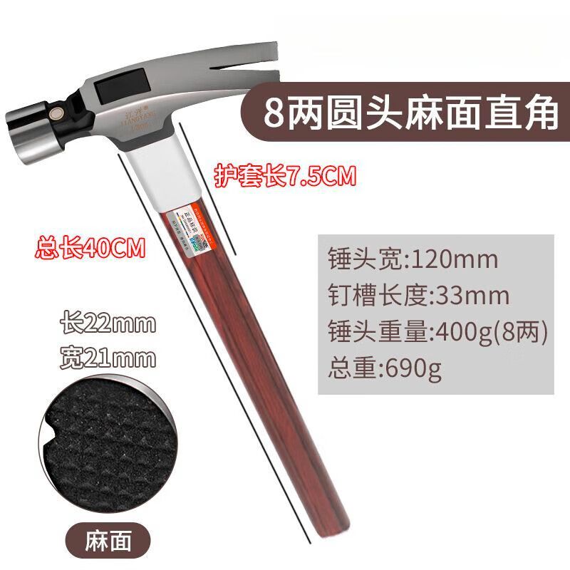Vinoa high-carbon steel industrial-grade claw hammer with aluminum sleeve to protect woodworking special claw hammer six-two hammers eight-two hammers 55 steel B55 high-carbon steel claw hammer 8-two hammer head round head