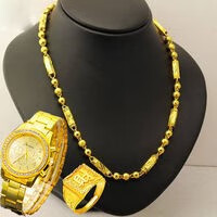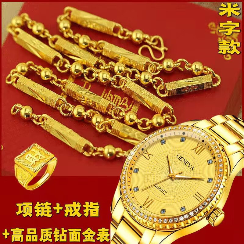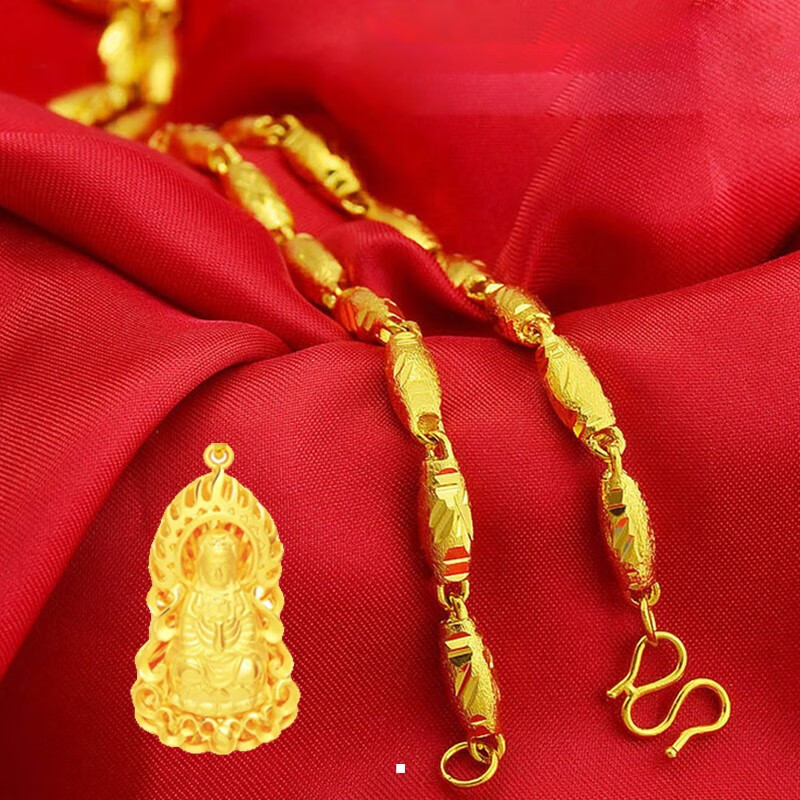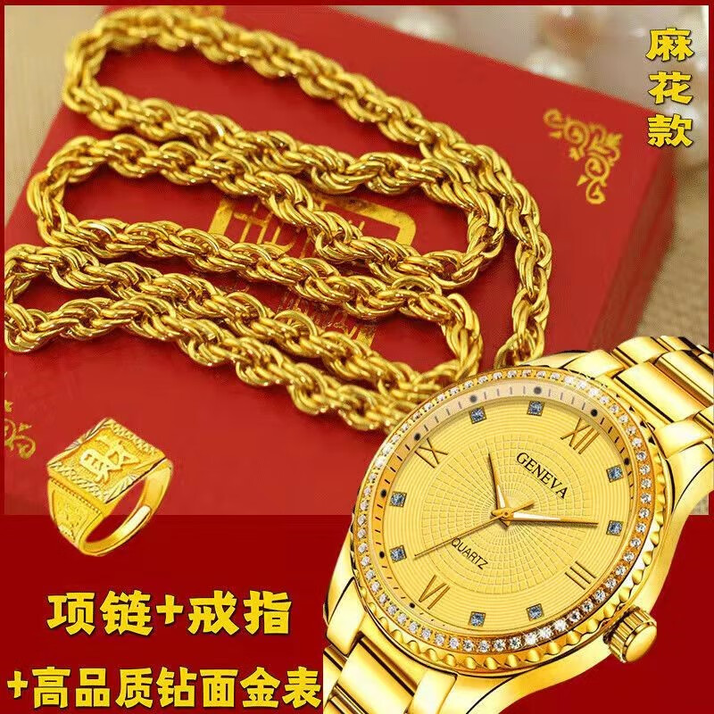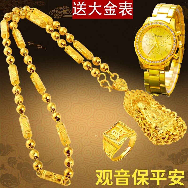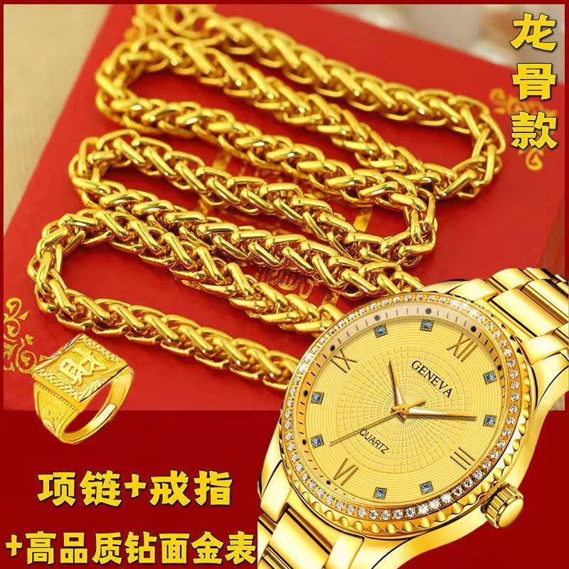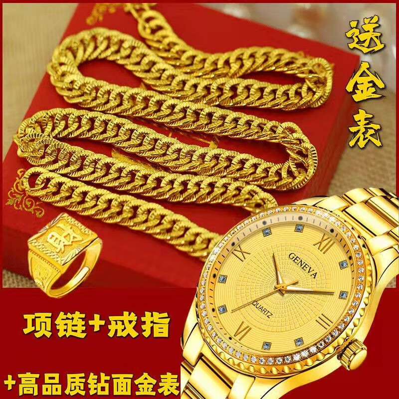 KZD999 Vietnamese sand gold necklace men's large gold chain does not fade simulated gold-plated thick Internet celebrity wedding male god necklace + pendant + ring Lao Fengxiang quality
