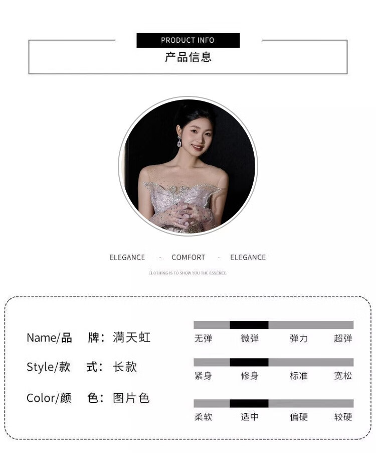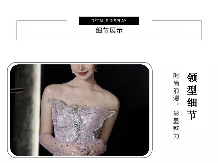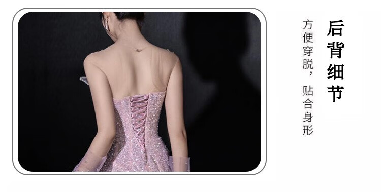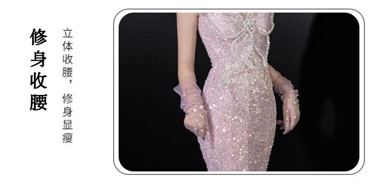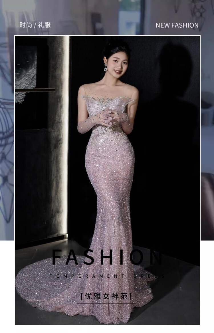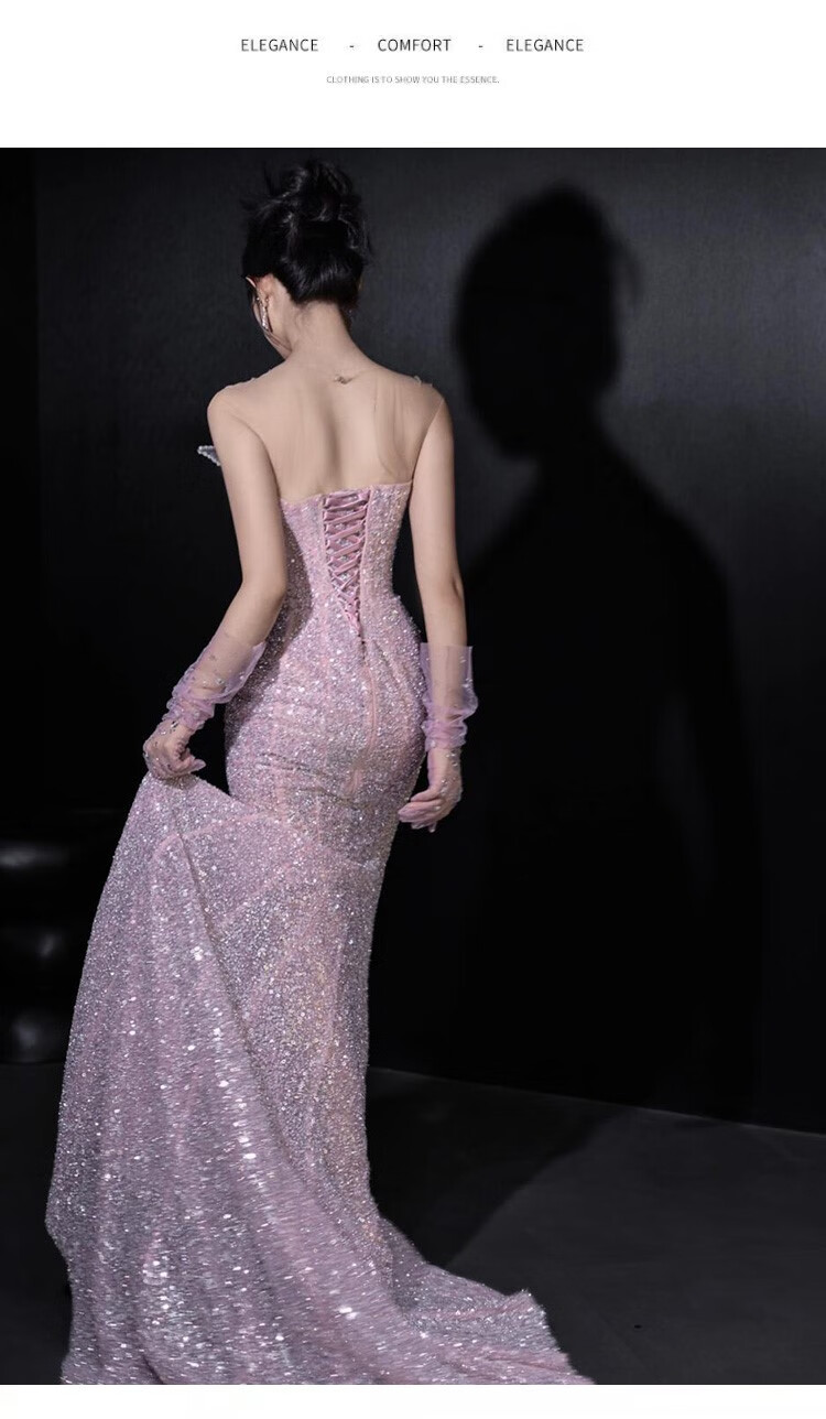 COMMAX Heavy Industry Sequined Evening Gown Temperament Socialite Light Luxury Host Pink Tube Top Fishtail Engagement Toast Dress Pink L