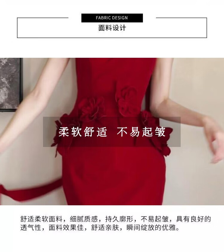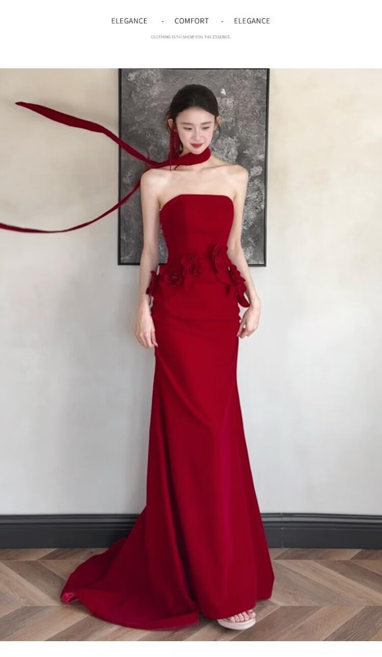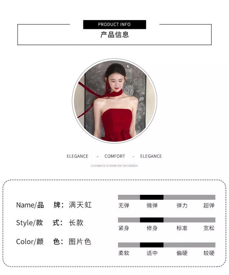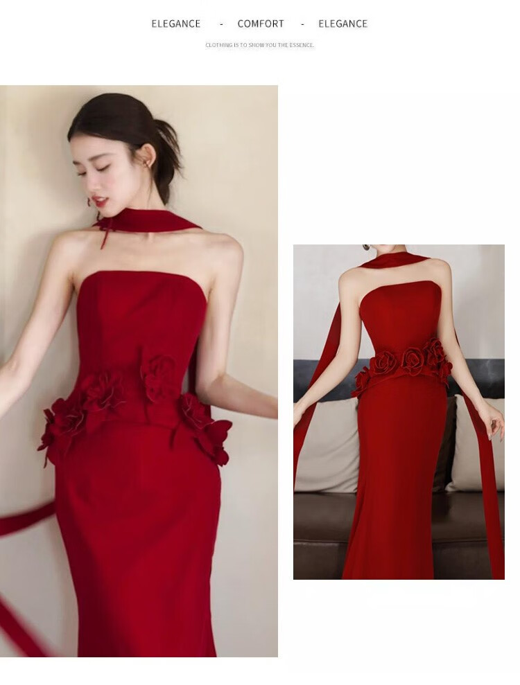 COMEX Burgundy Chinese Style Toast Dress Tube Top Light Luxurious Fishtail Temperament Bride Engagement Wedding Return Dress Burgundy L