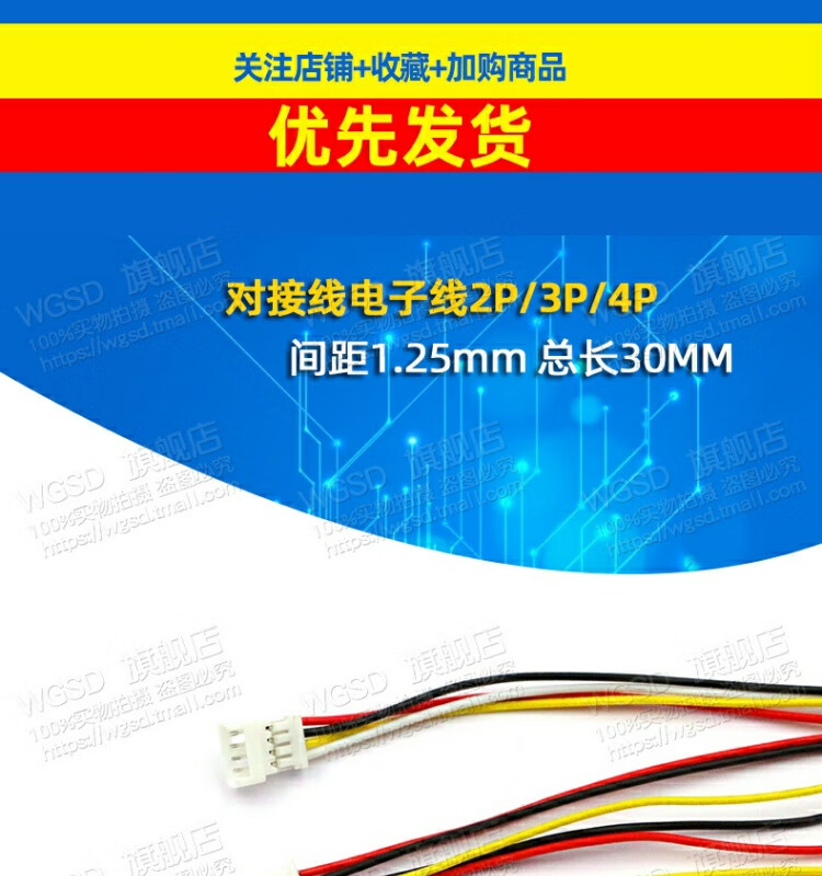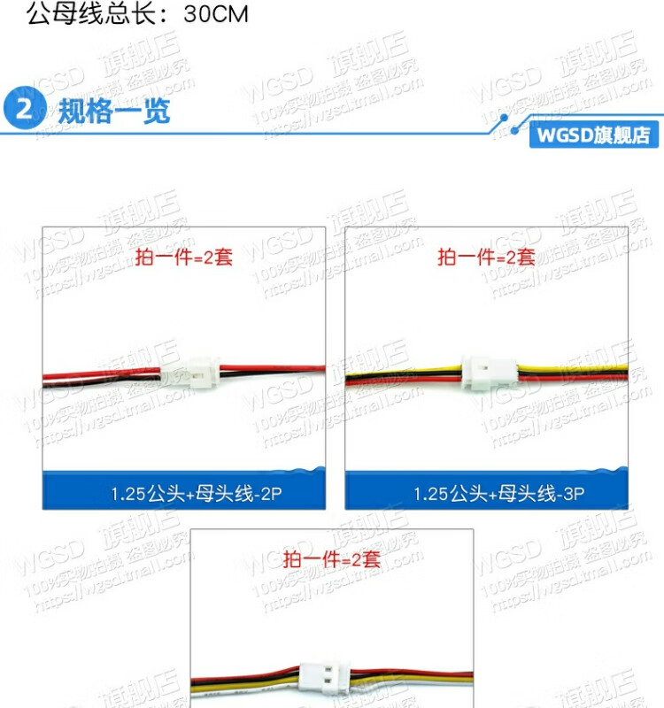Dafurui air-to-plug electronic cable 2P/3P/4P male-female plug-in spacing 1.25mm total length 30MM wire 1.25 male + female wire-4P (2 sets)