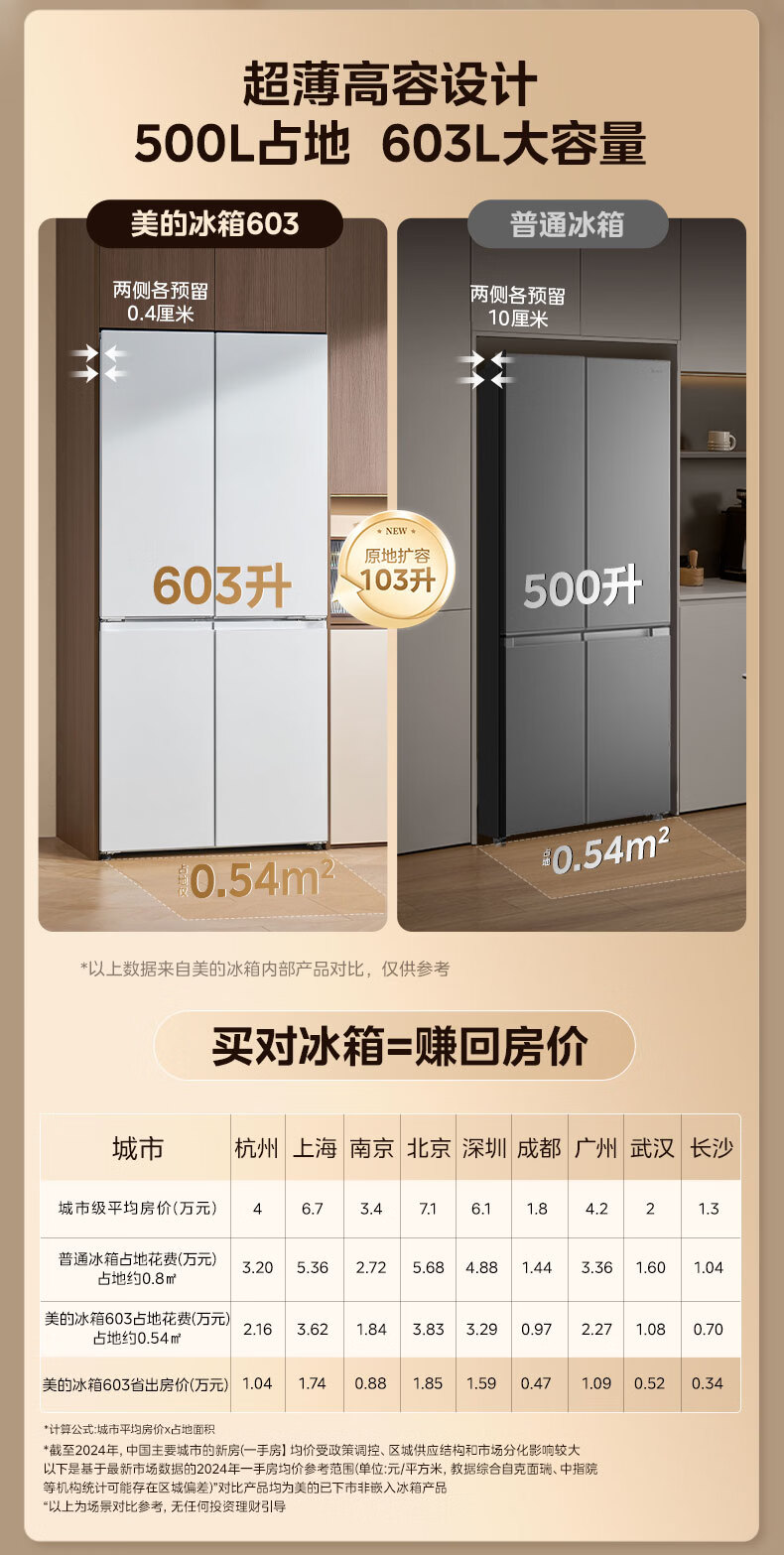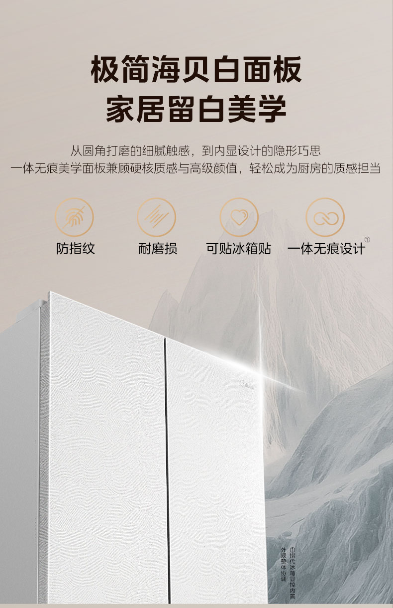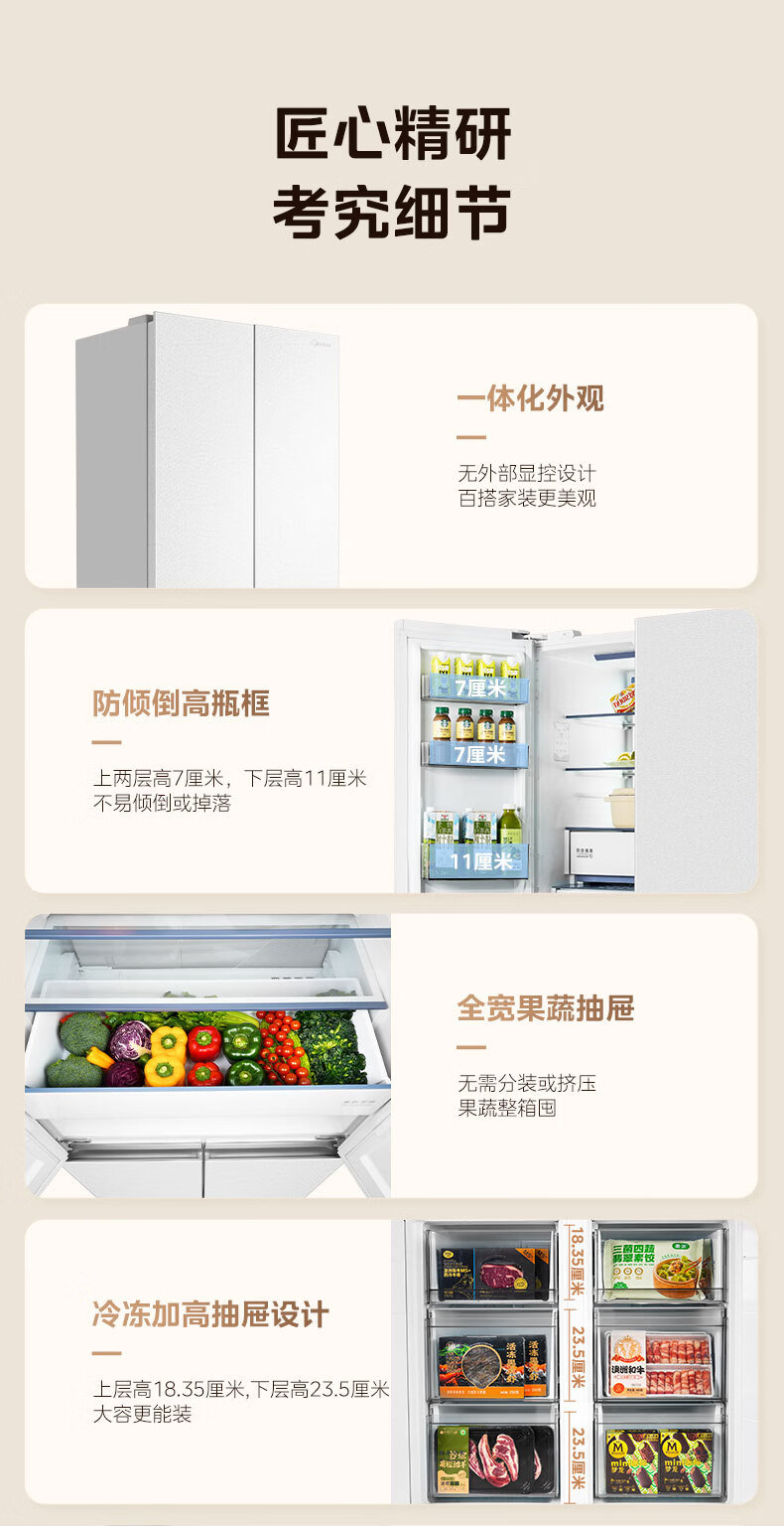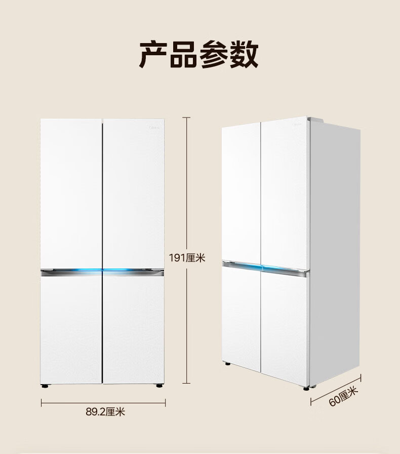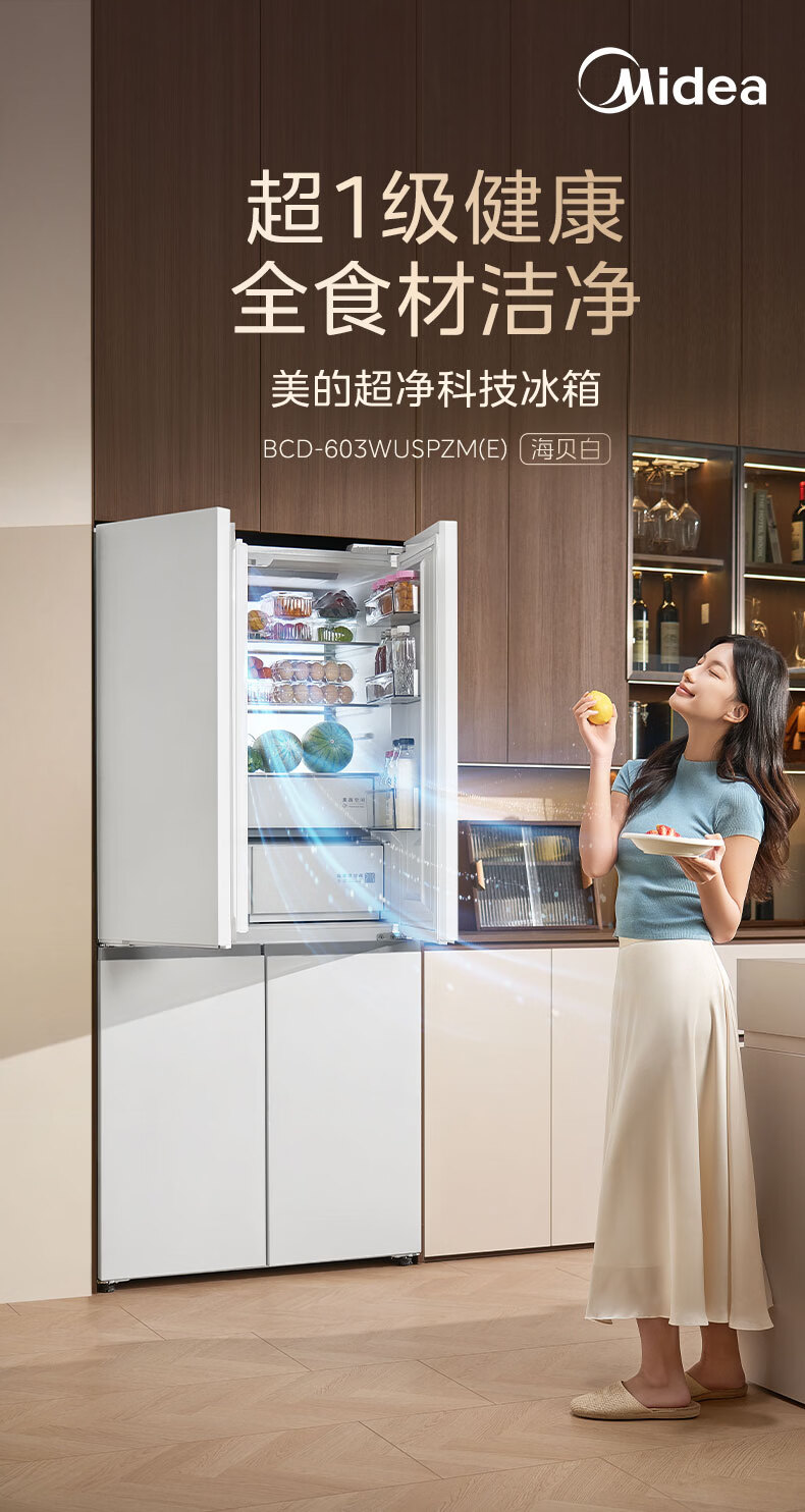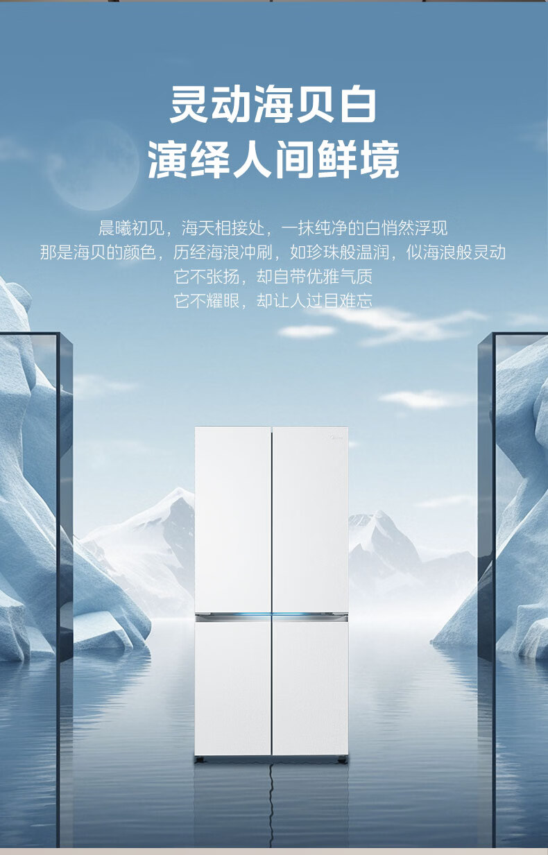 美的(Midea)熊墩墩603L十字门冰箱超薄零嵌入式双系统超大容量一级能效以旧换新白色国家补贴 白色