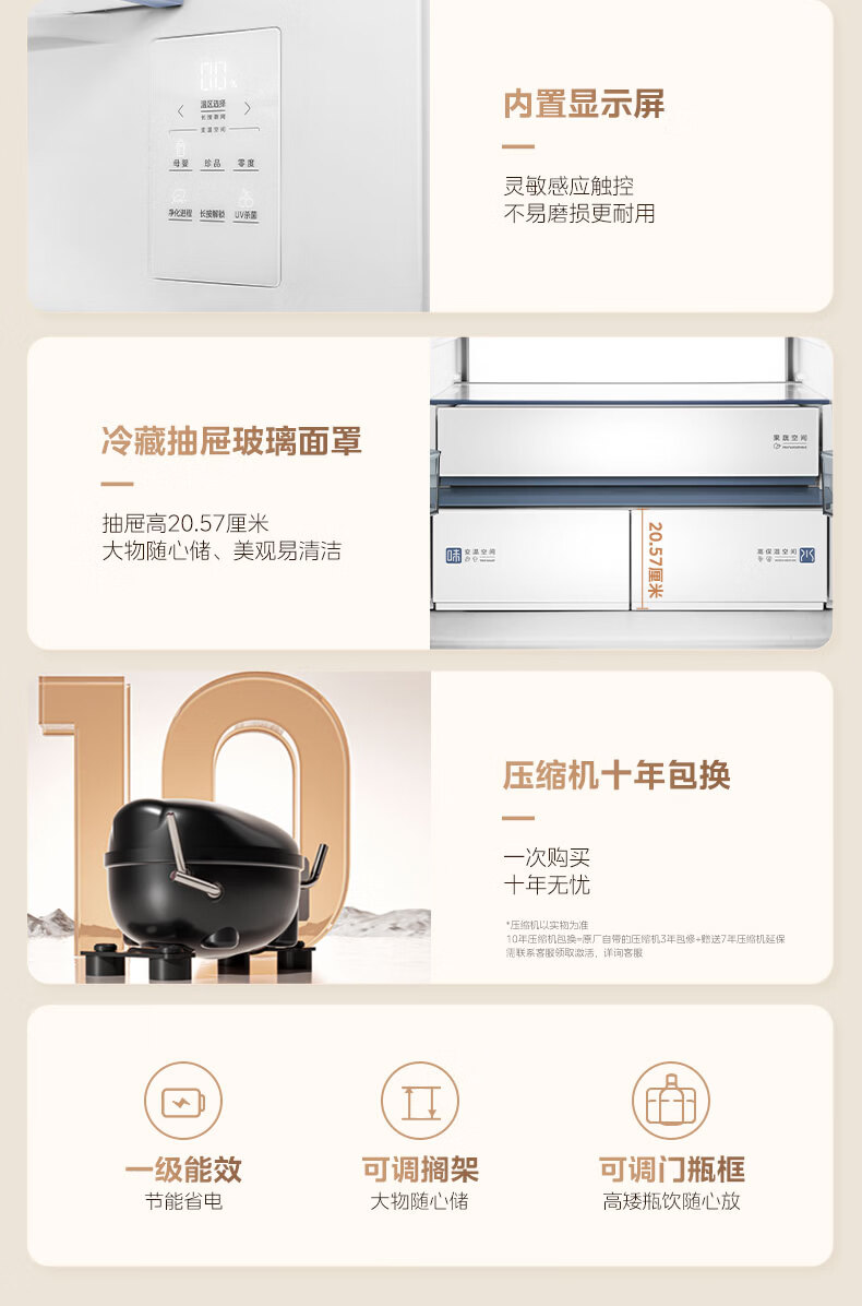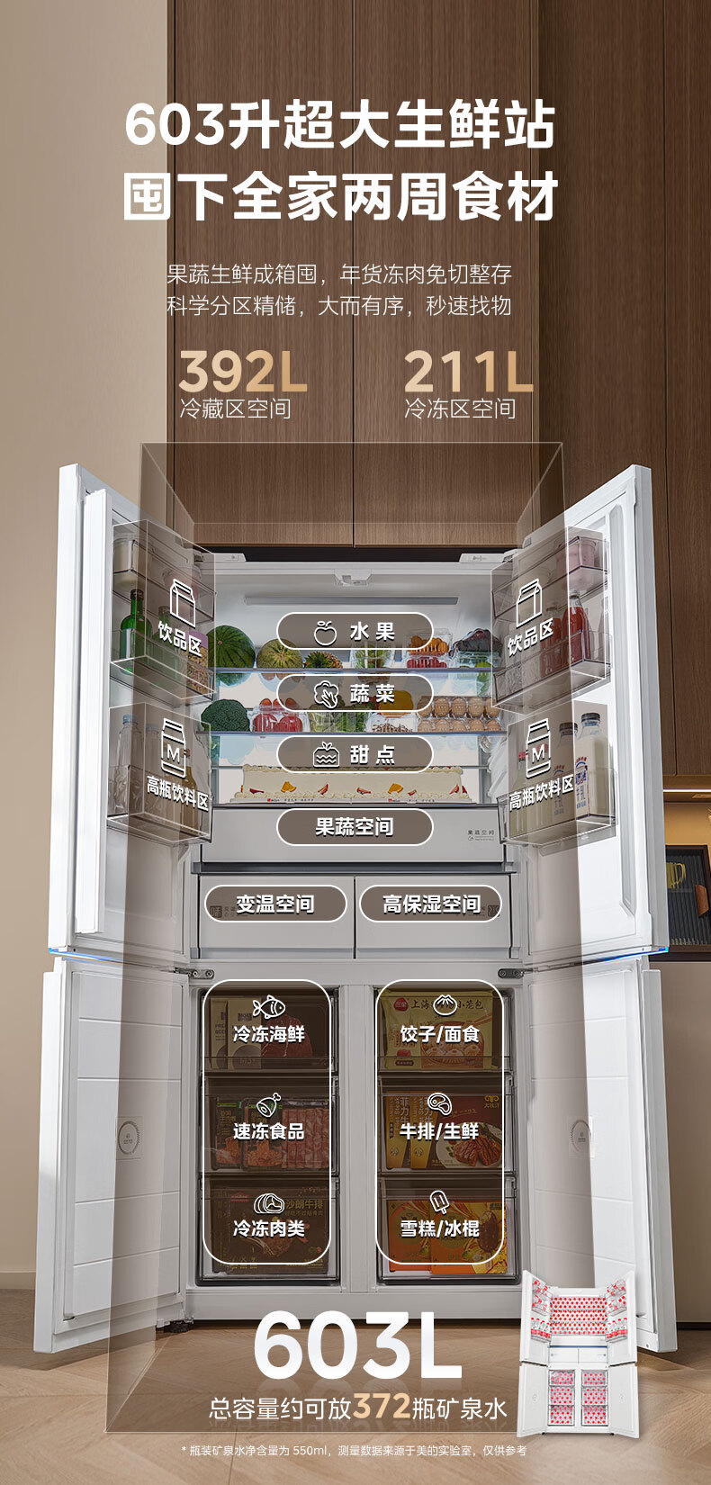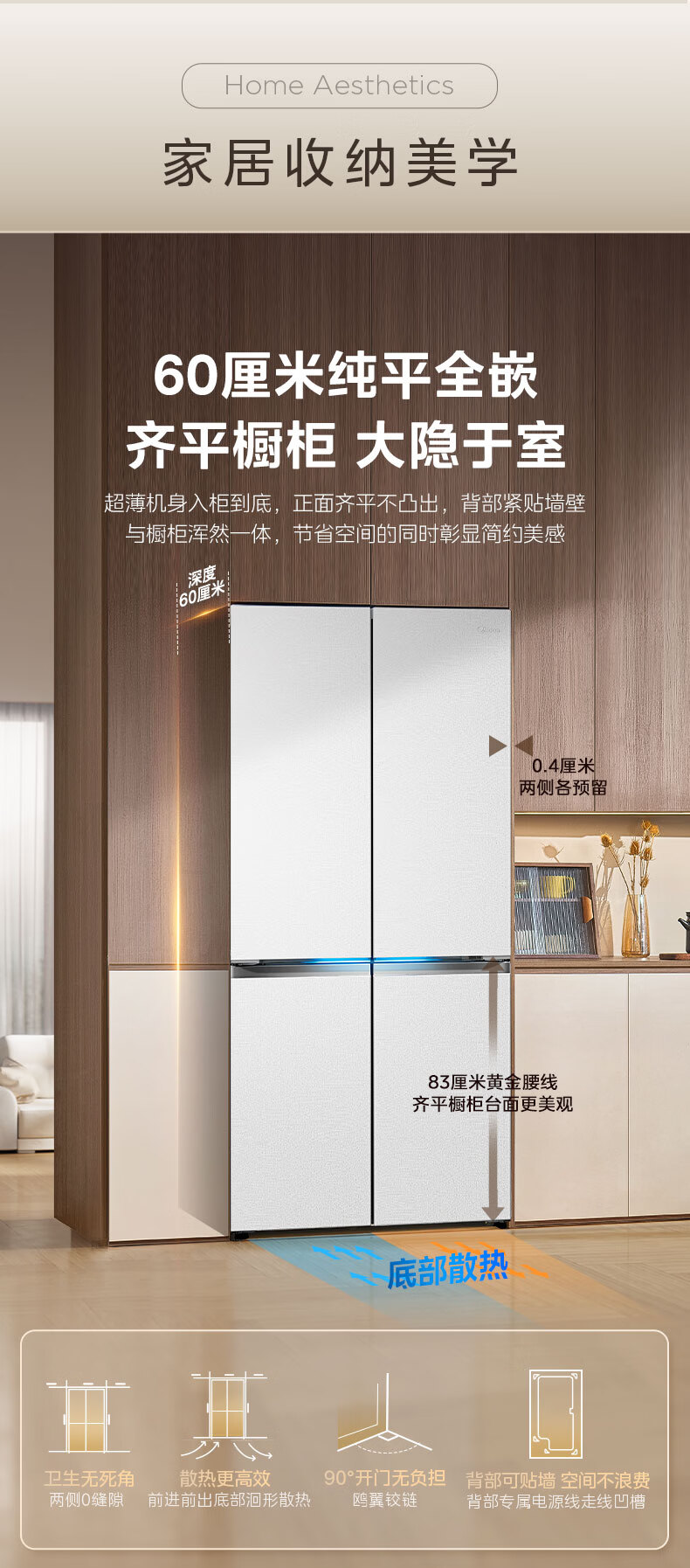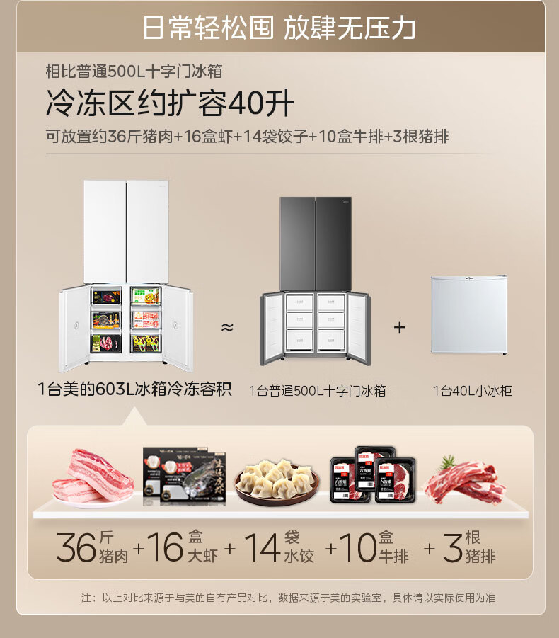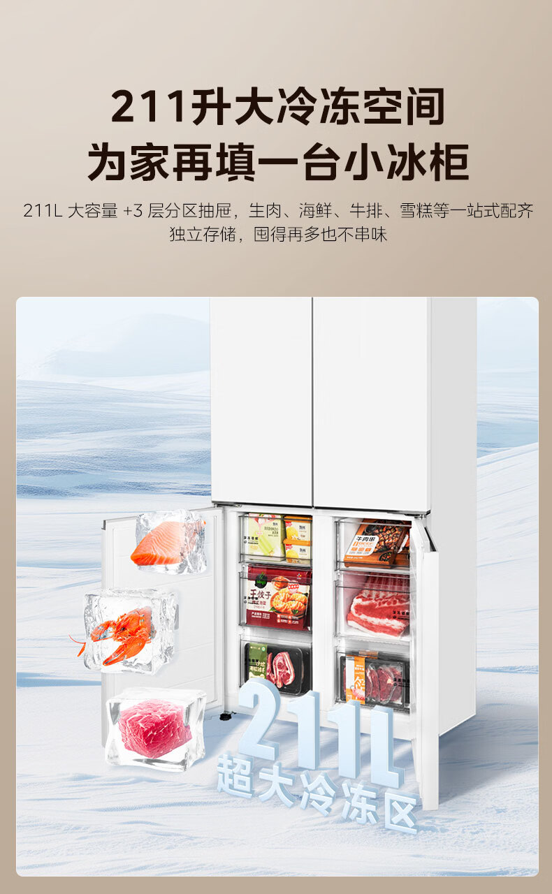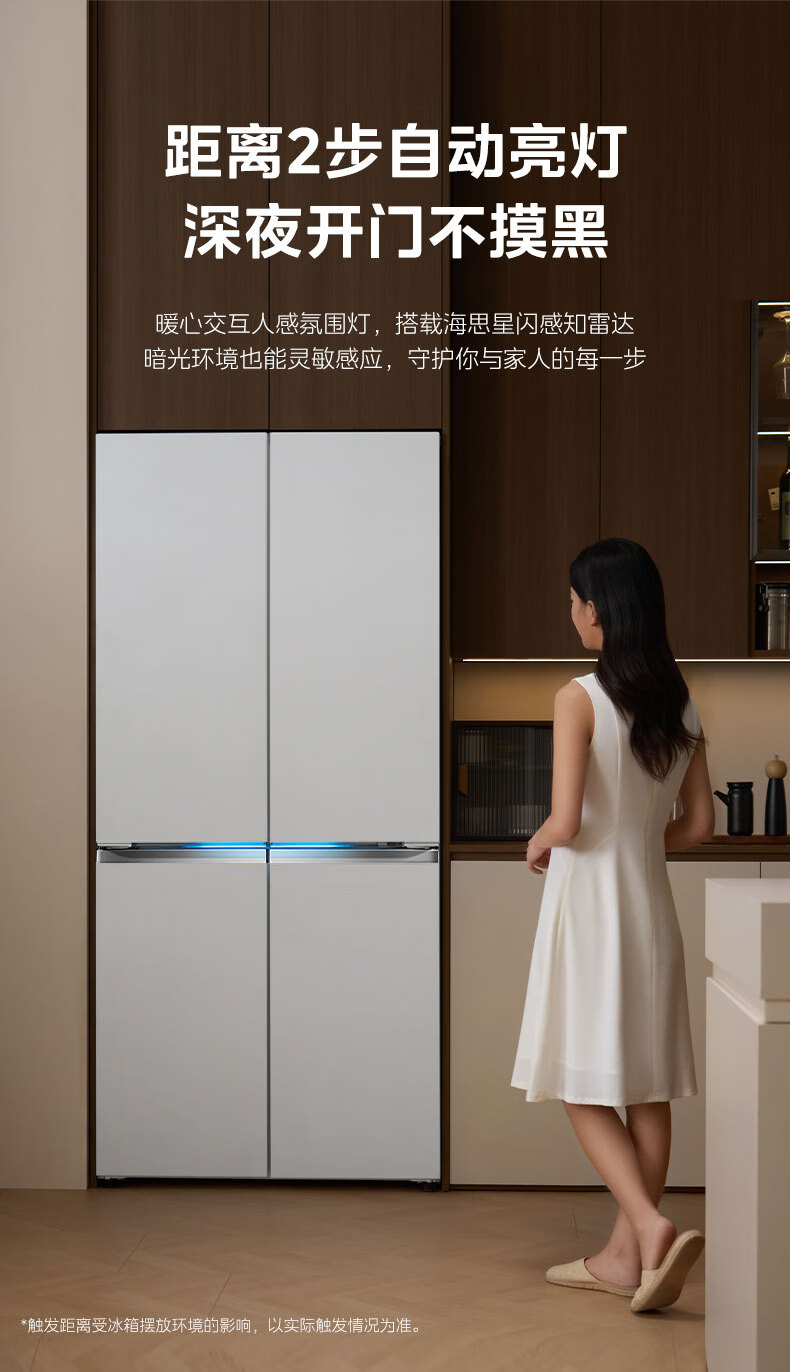 美的(Midea)熊墩墩603L十字门冰箱超薄零嵌入式双系统超大容量一级能效以旧换新白色国家补贴 白色