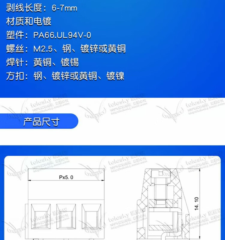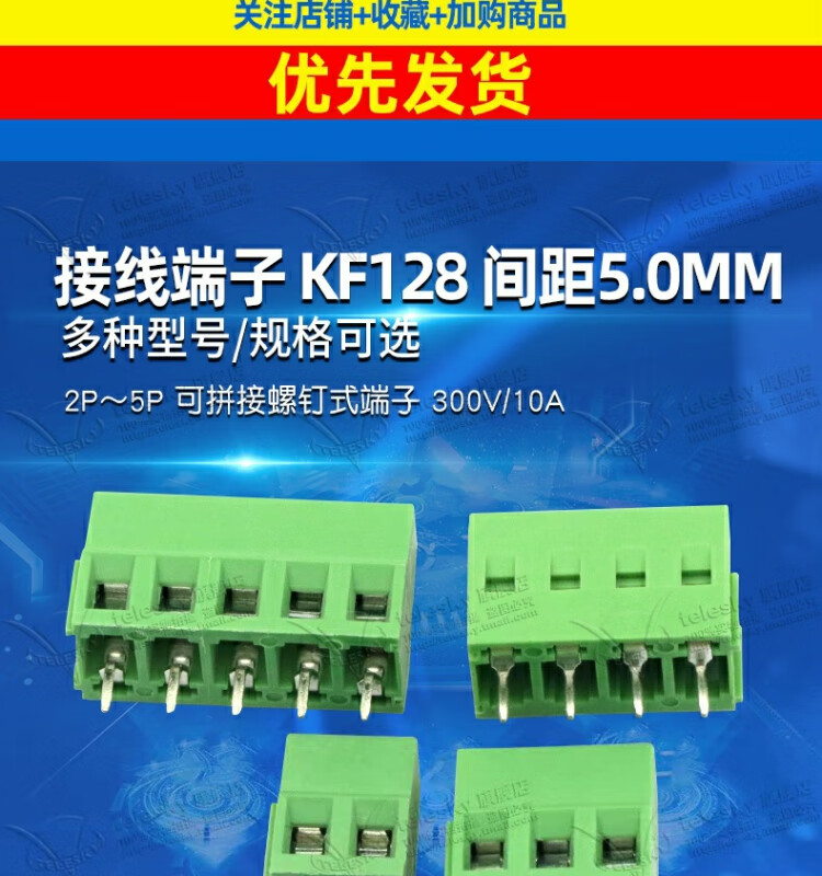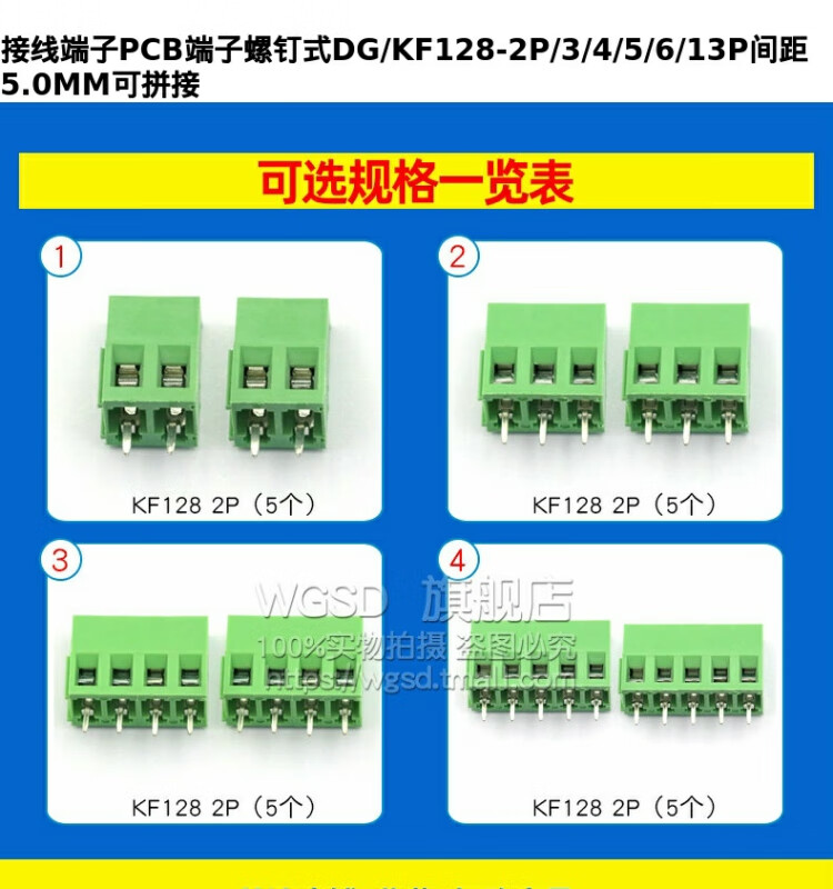 Dafuri terminal block PCB terminal screw type DG/KF128-2P/3/4/5/6/13P pitch 5.0MM splicable copper buckle KF128-4P (2 pieces)