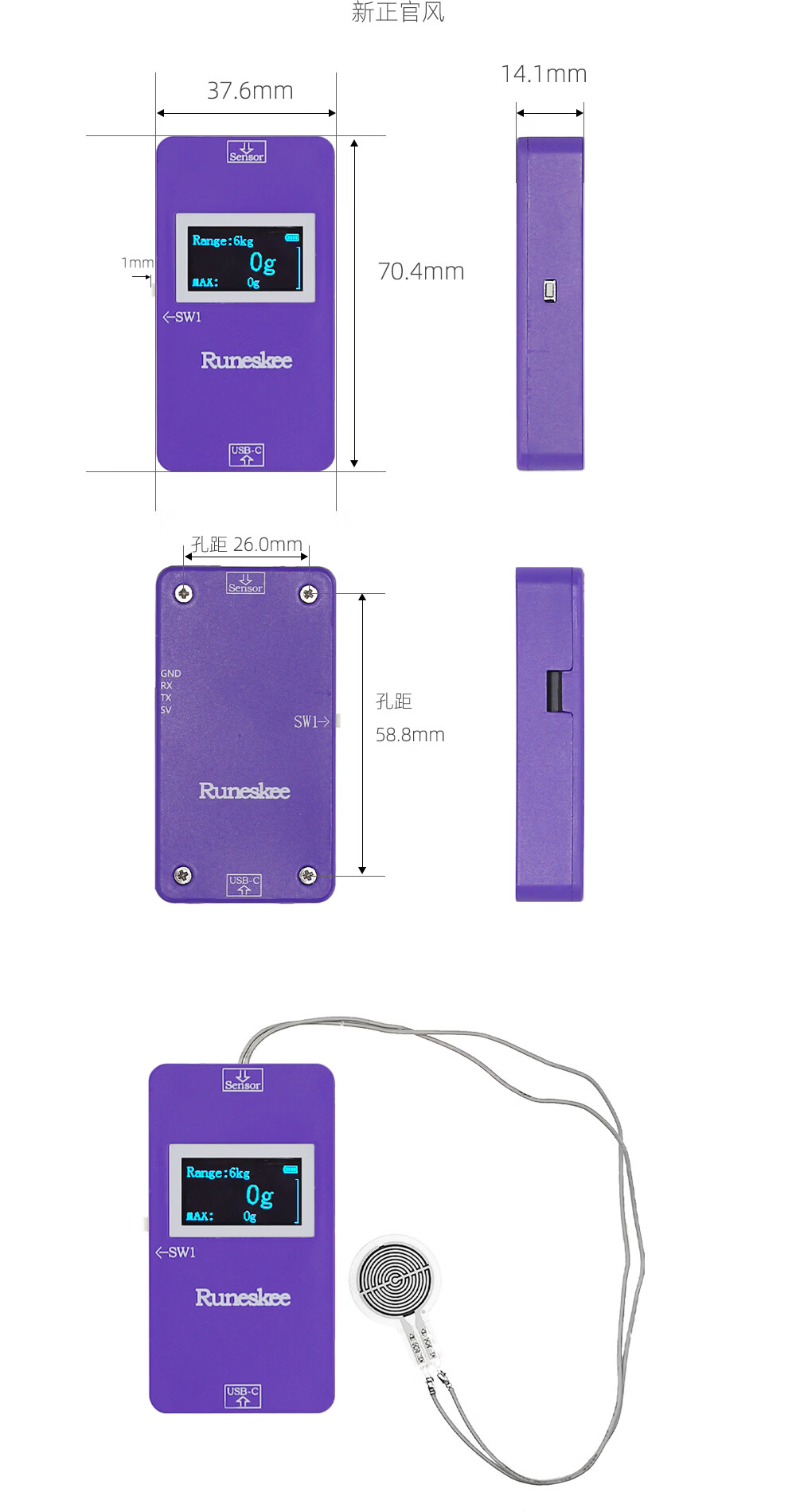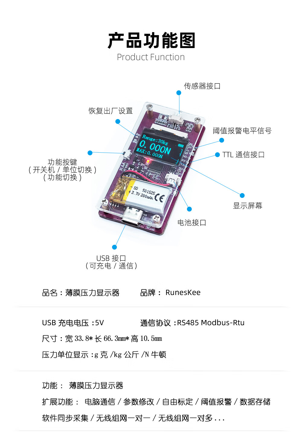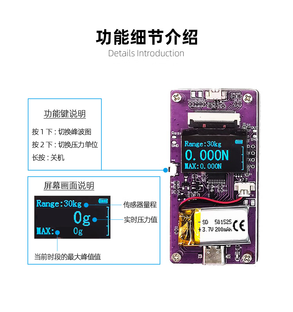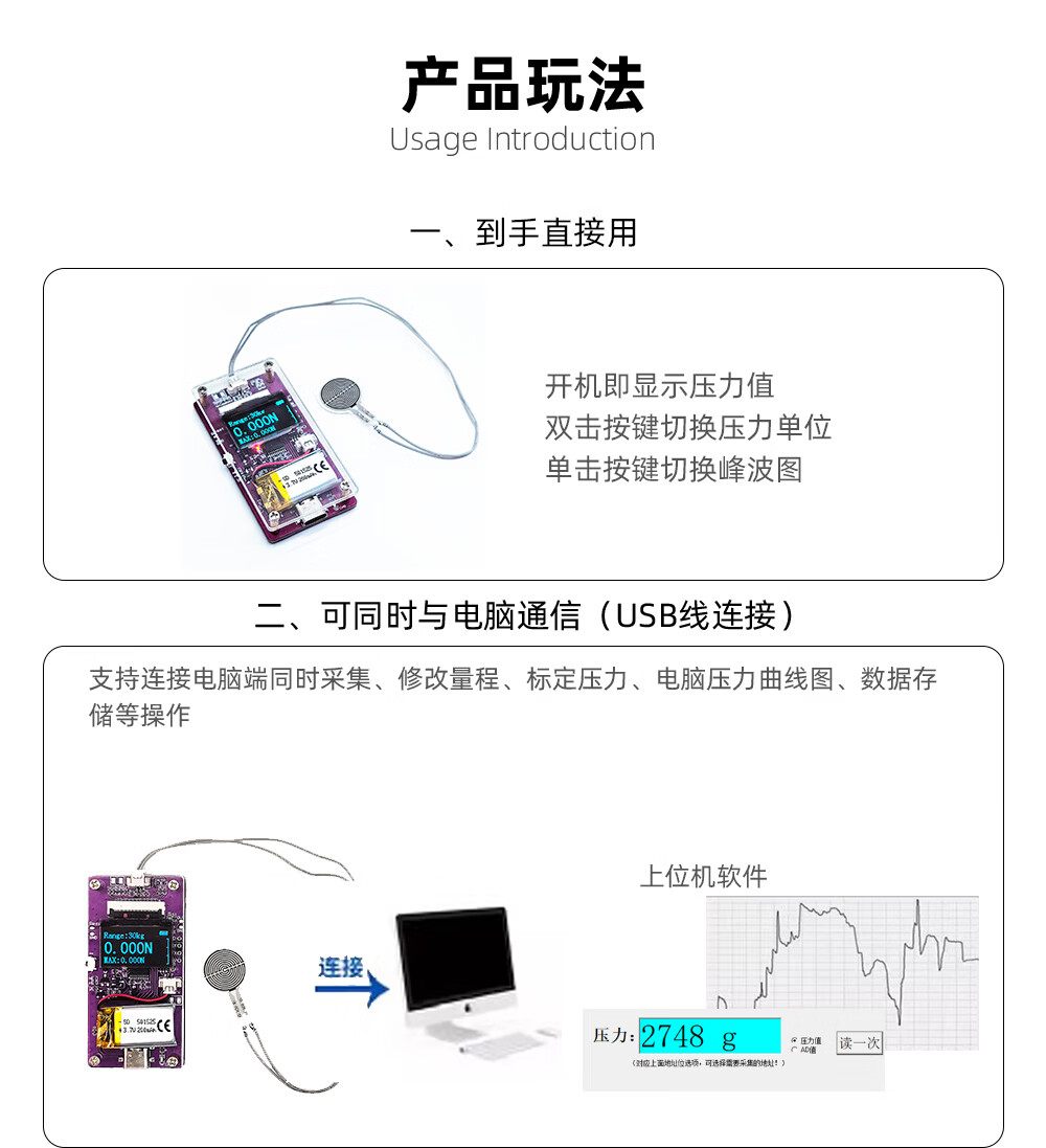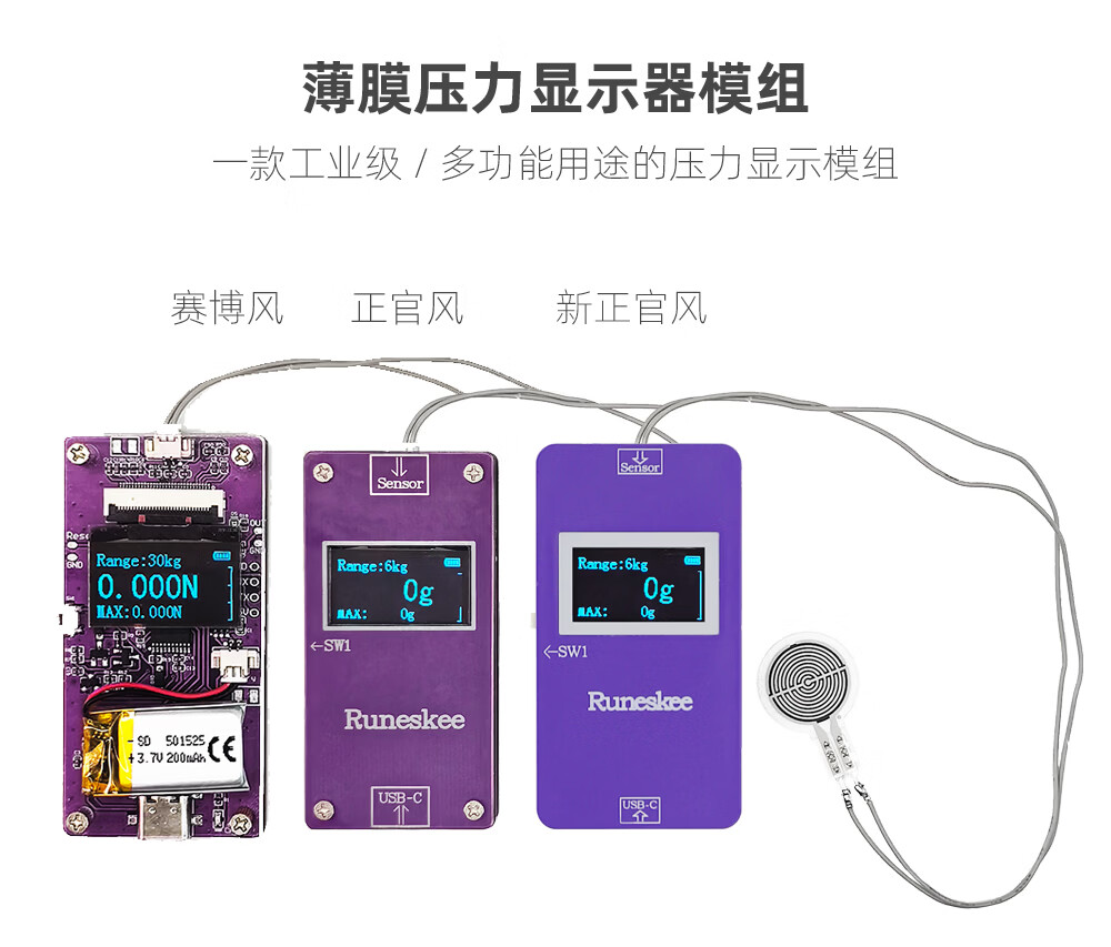 (RunesKee) thin film pressure sensor display with battery USB charging flexible resistive pressure digital display module new product 9-channel thin film pressure display