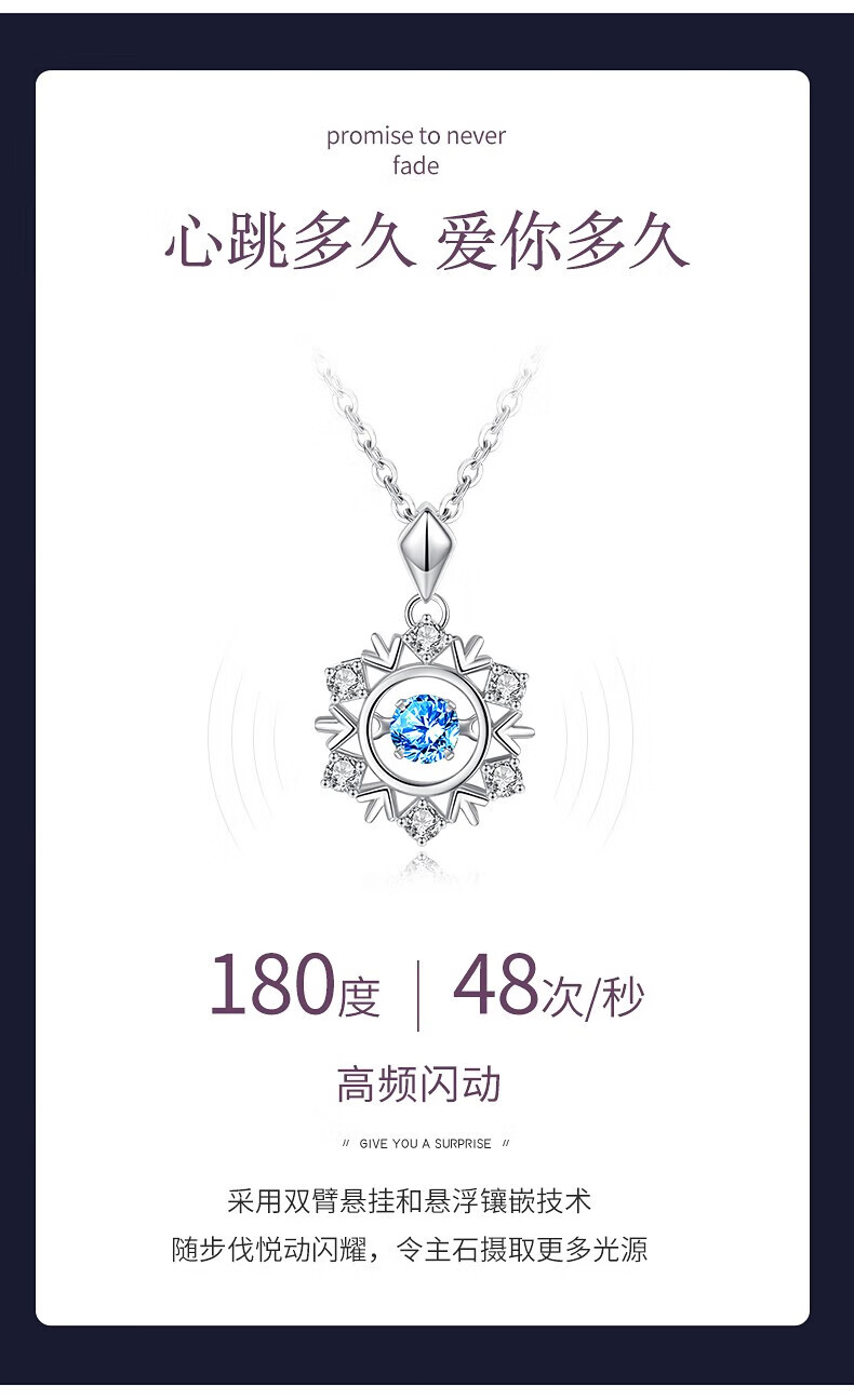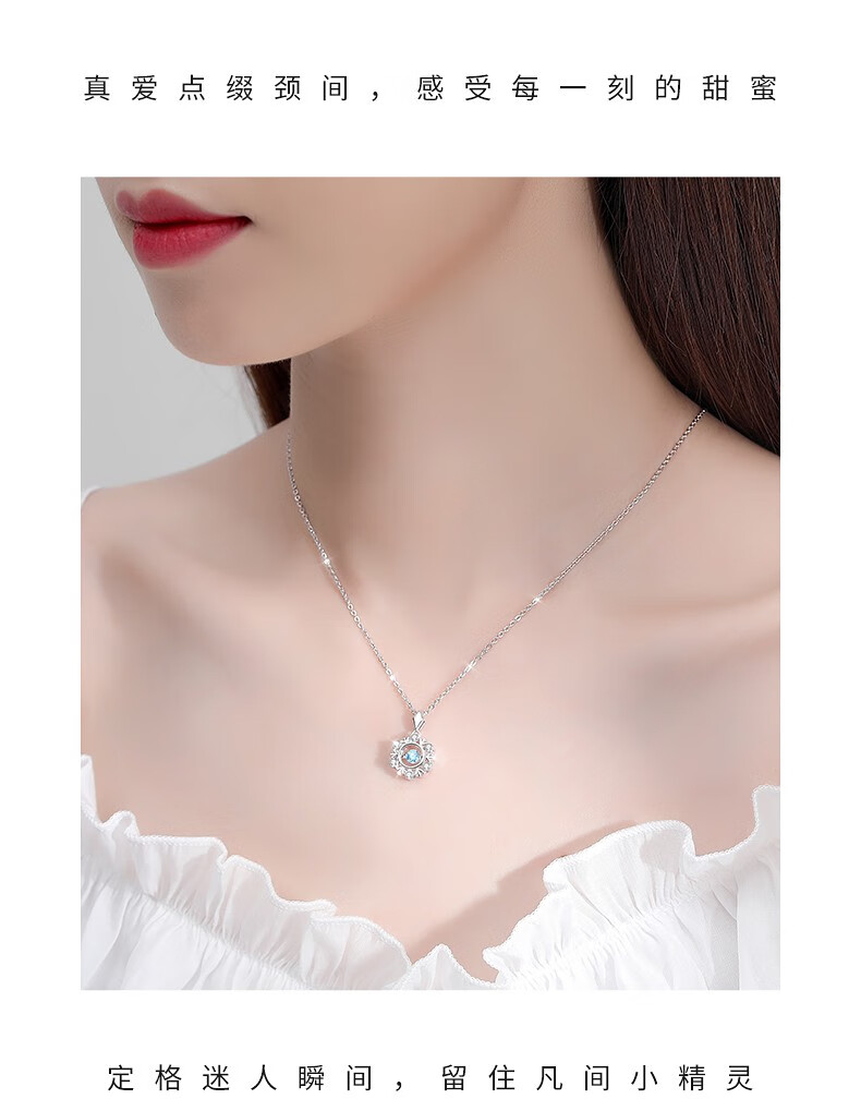 Saturday Fortune Platinum Necklace Women's Heart of the Ocean Pendant Girls Jewelry 520 Valentine's Day Gift for Girls Suitable for Girls