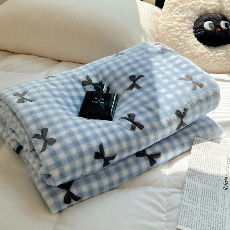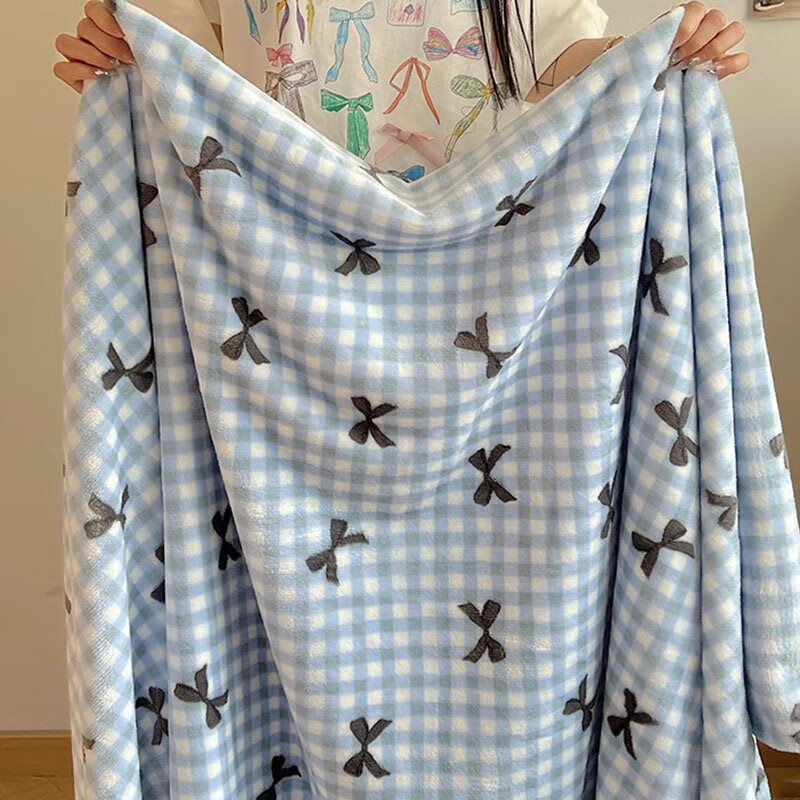Xinnan Korallen-Plüschdecke, Handtuch, Steppdecke, Büro, Nickerchen, Sofa, Decke, Studenten, Mittagspause, Sommer, klimatisiert, Deckenbezug, Decke, Schal, blau kariert, 100 x 150 cm