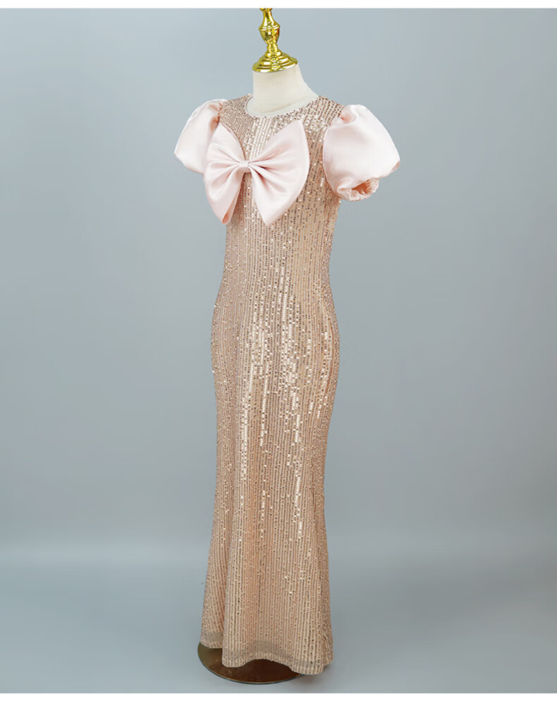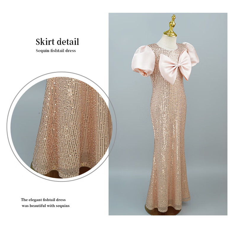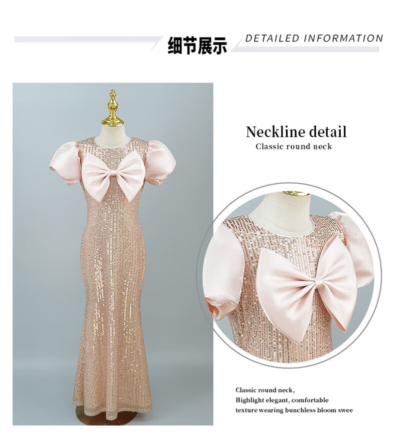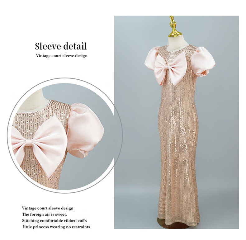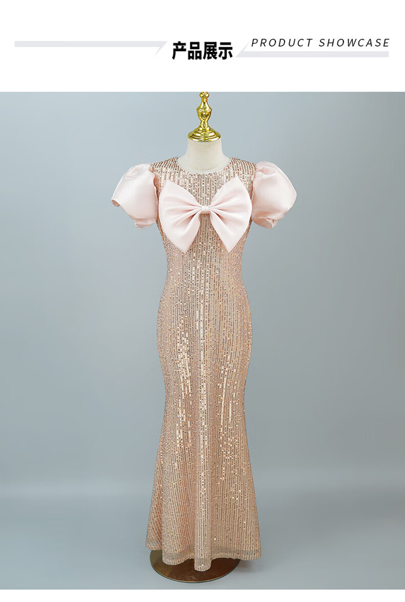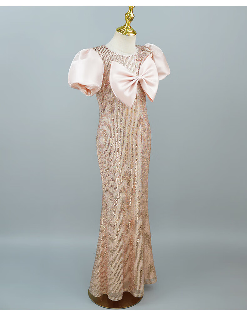 COLORFUL GEMS European and American custom champagne color princess dress with big bow for girls evening dress champagne color one size fits all 11Y