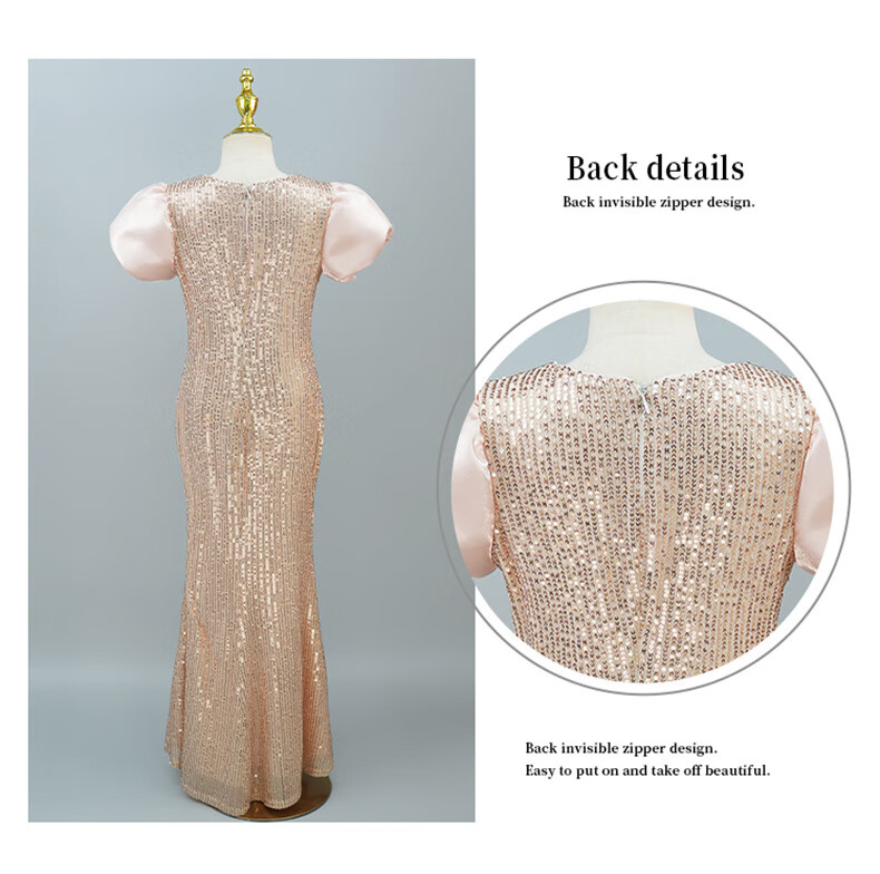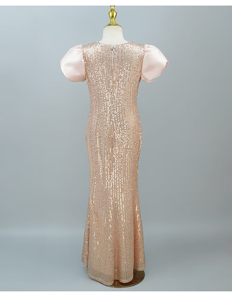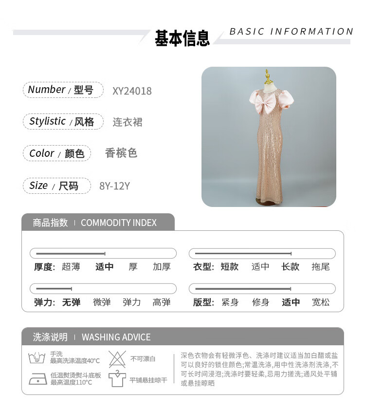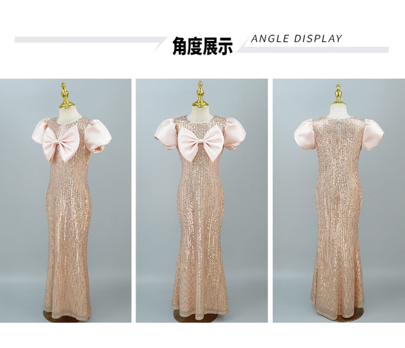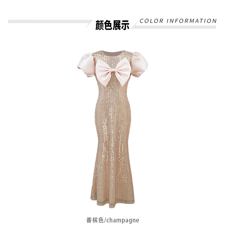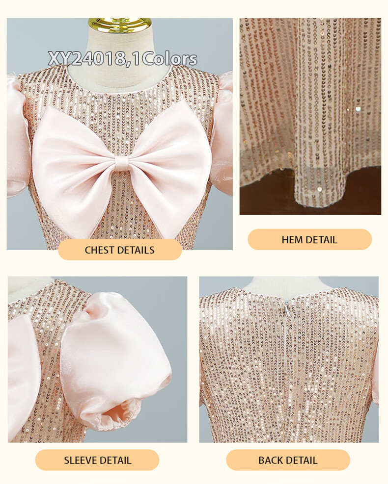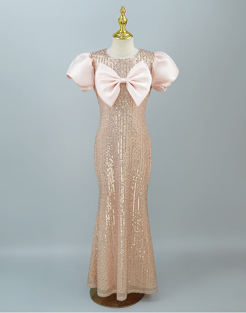 COLORFUL GEMS European and American custom champagne color princess dress with big bow for girls evening dress champagne color one size fits all 11Y